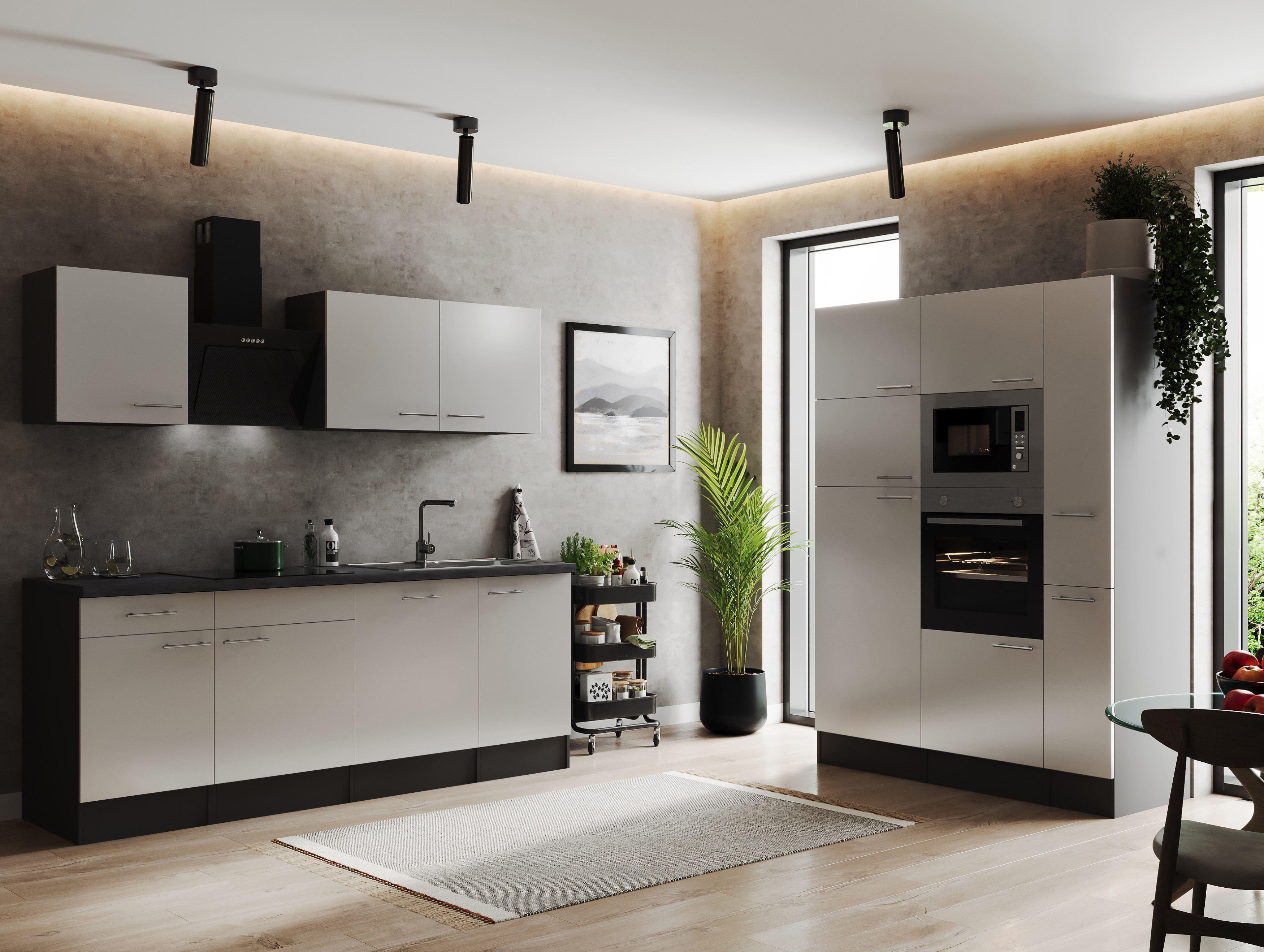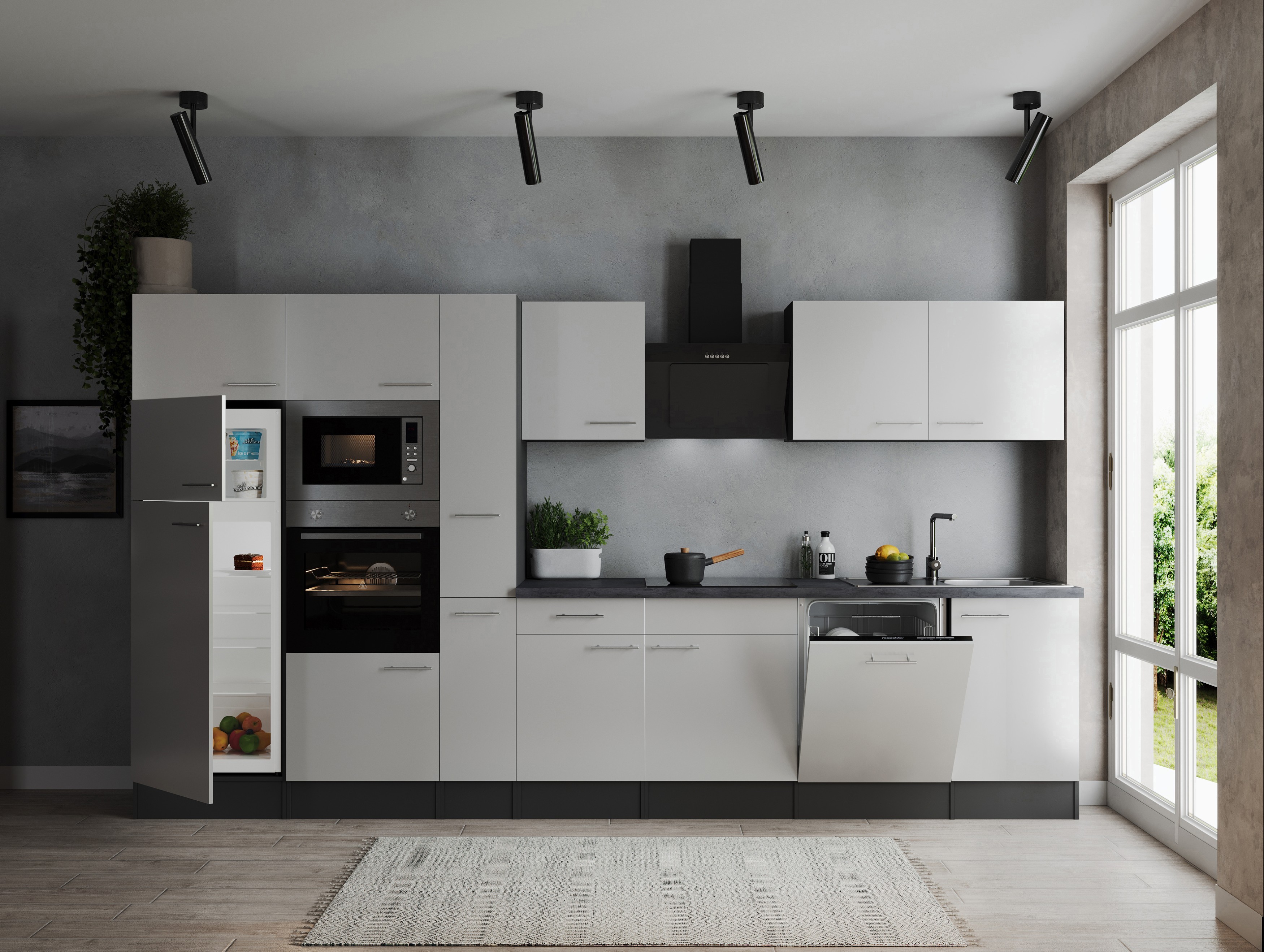 Produktinformationen "Küche Küchenzeile Küchenblock Grau Matt Weiß Oliver 370 cm Respekta"