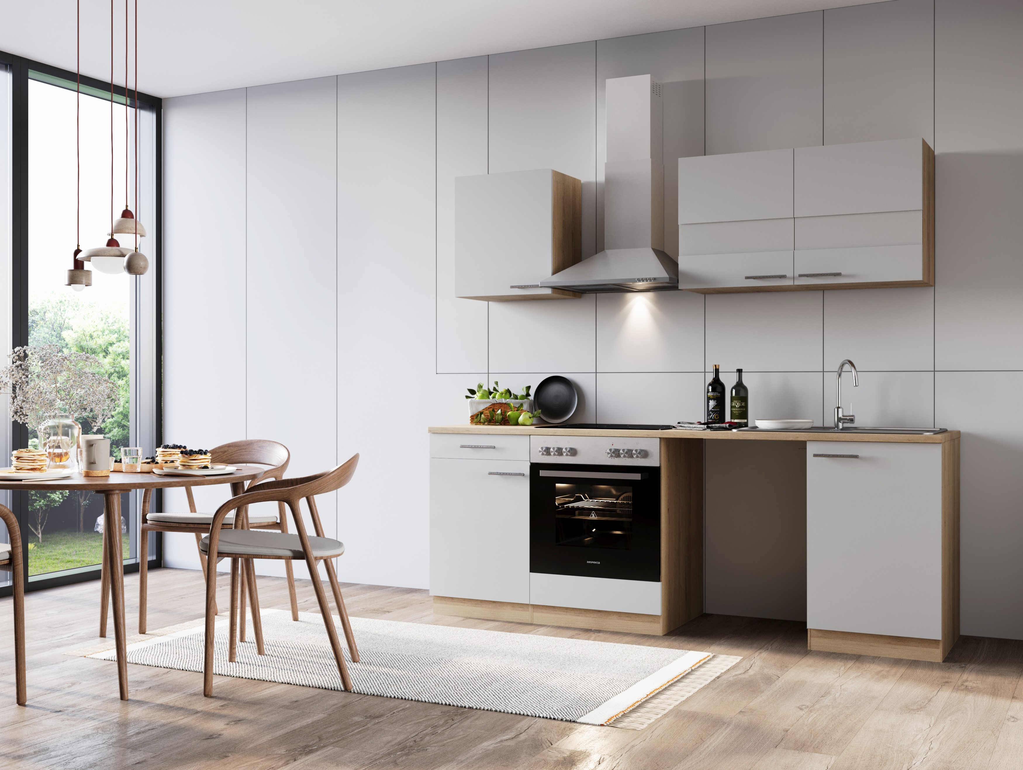 Eigenschaften "Küche Küchenzeile Leerblock Einbau Waschmaschine Eiche Weiß Merle 220 Respekta"