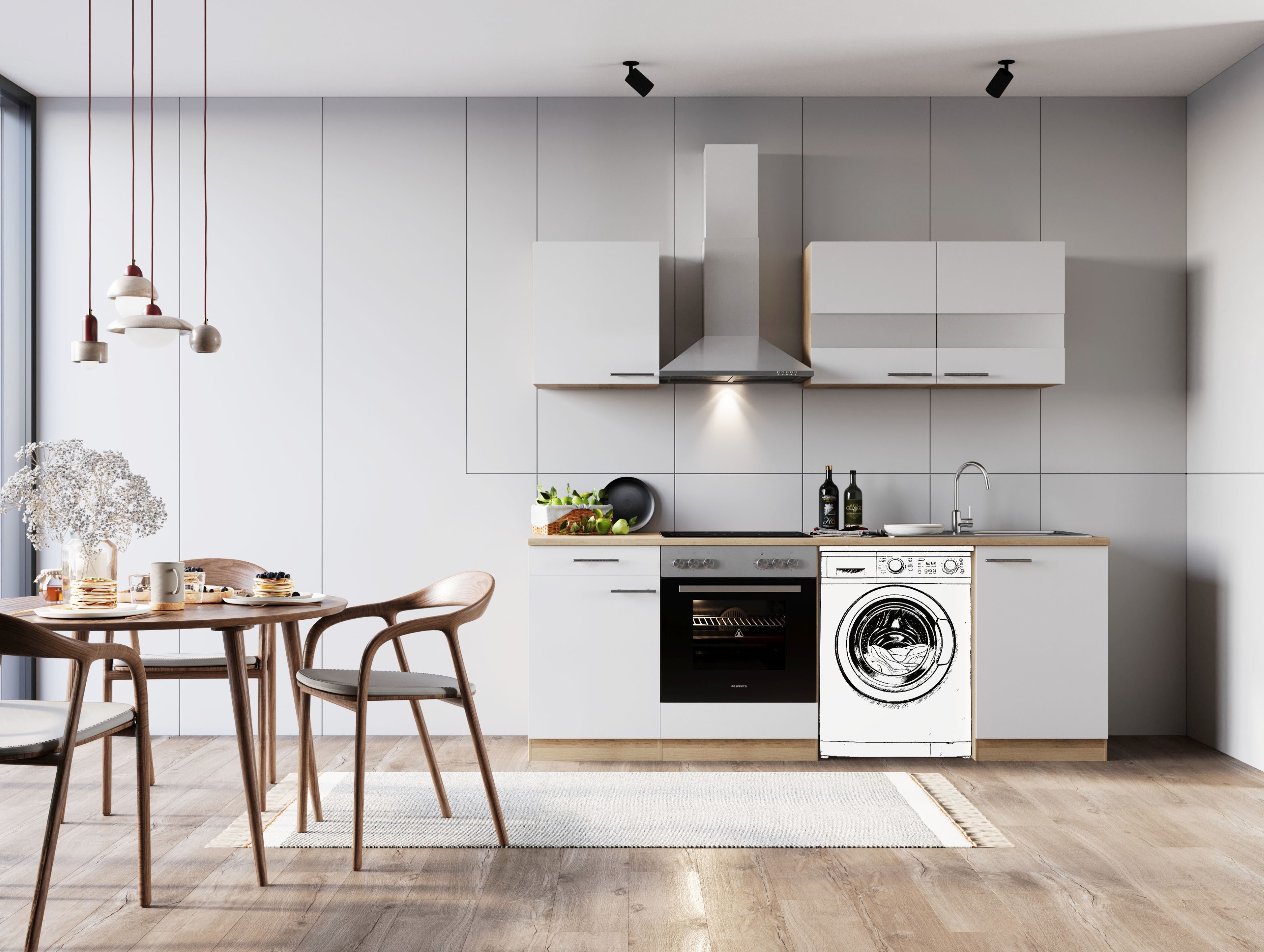 Produktinformationen "Küche Küchenzeile Leerblock Einbau Waschmaschine Eiche Weiß Merle 220 Respekta"