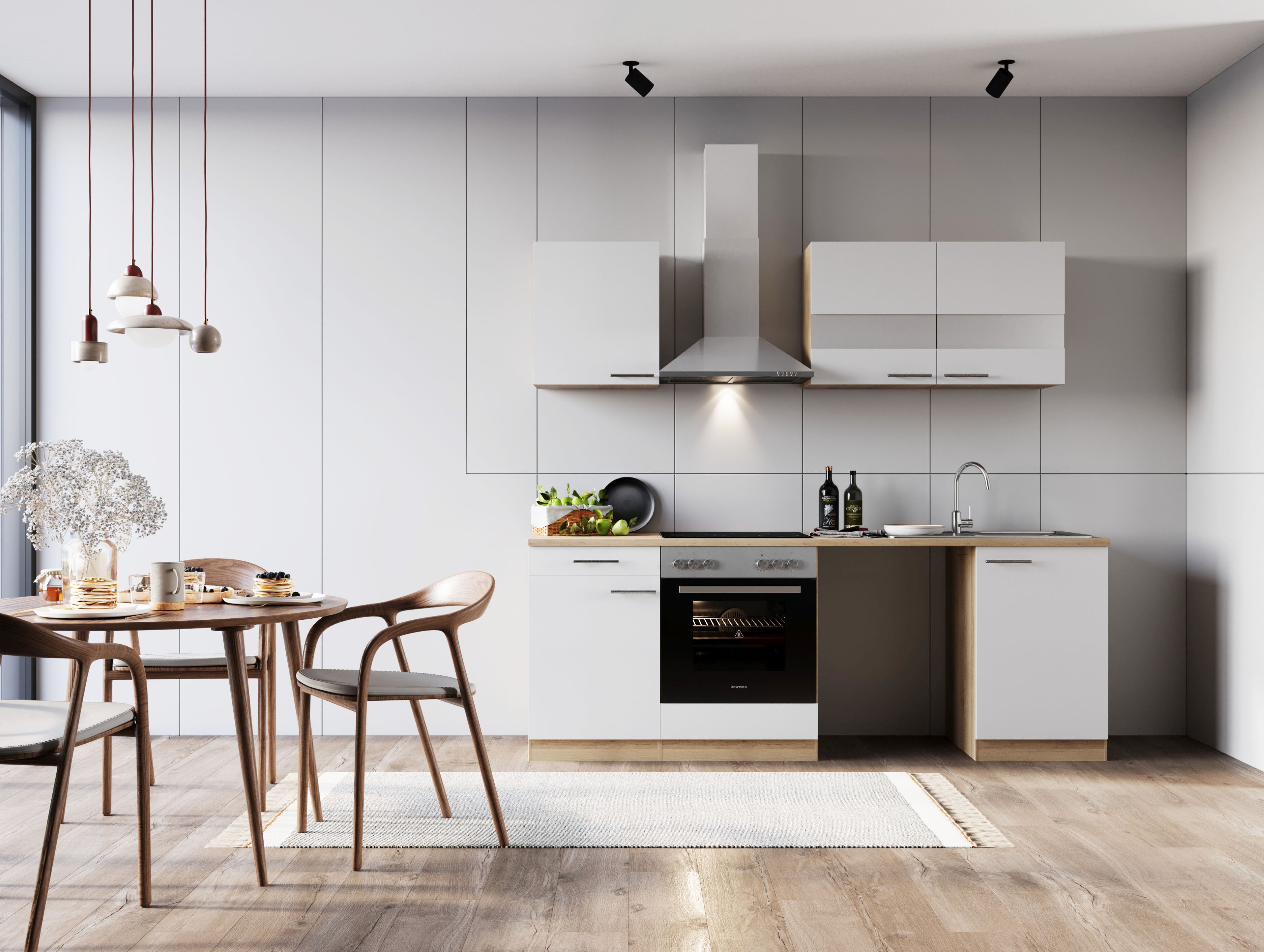 Erleben Sie die perfekte Kombination aus Funktionalität und modernem Design mit dem Merle Küchenblock. Dieser Küchenblock bietet Ihnen alles, was Sie für eine gut ausgestattete Küche benötigen, und ist in den Farben Weiß, Grau und Schwarz erhältlich und wird ohne Geräte geliefert!