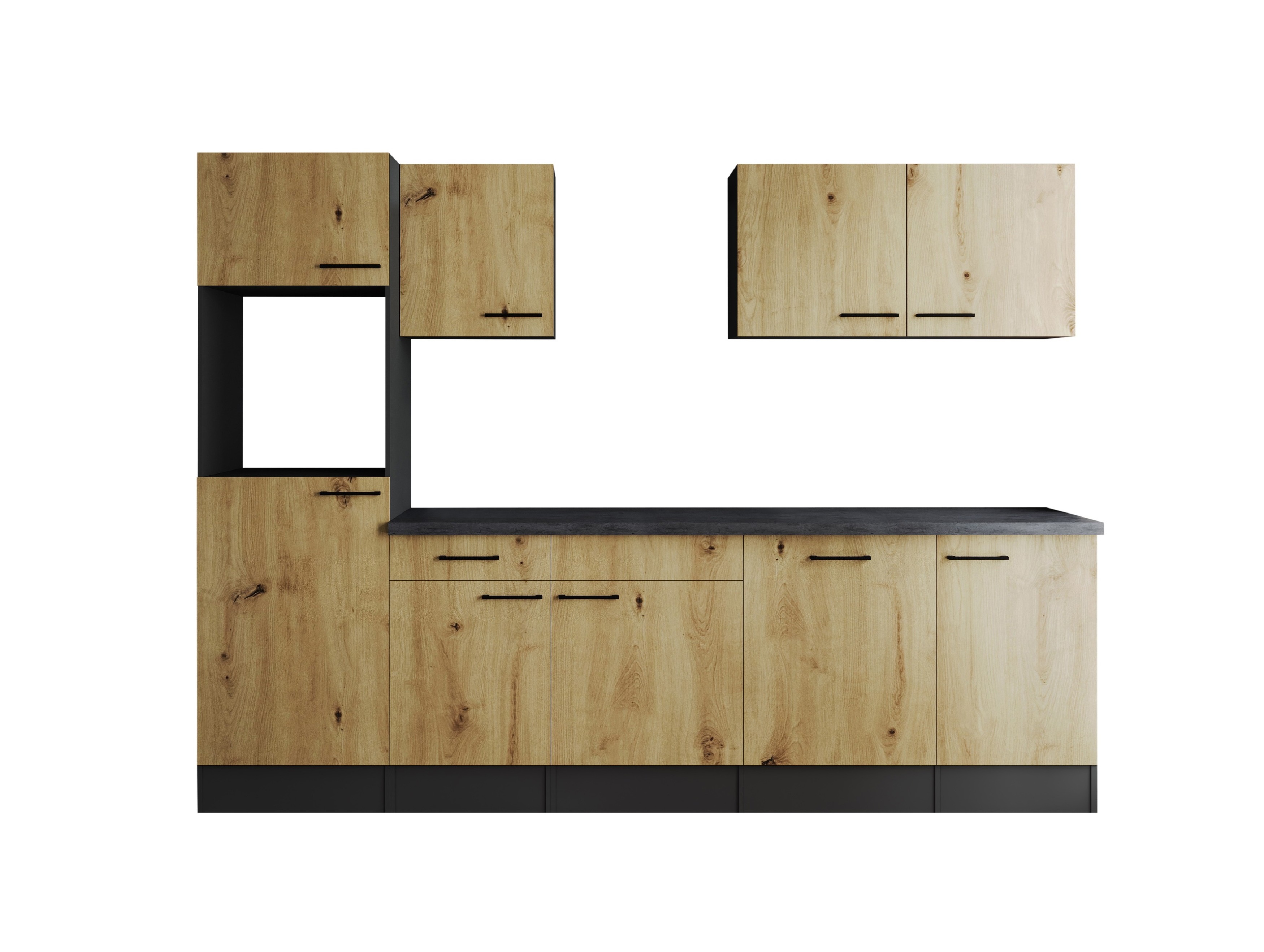 Küche Leerblock Oliver – 280 cm in Artisan Eiche Nachbildung und Granit Optik