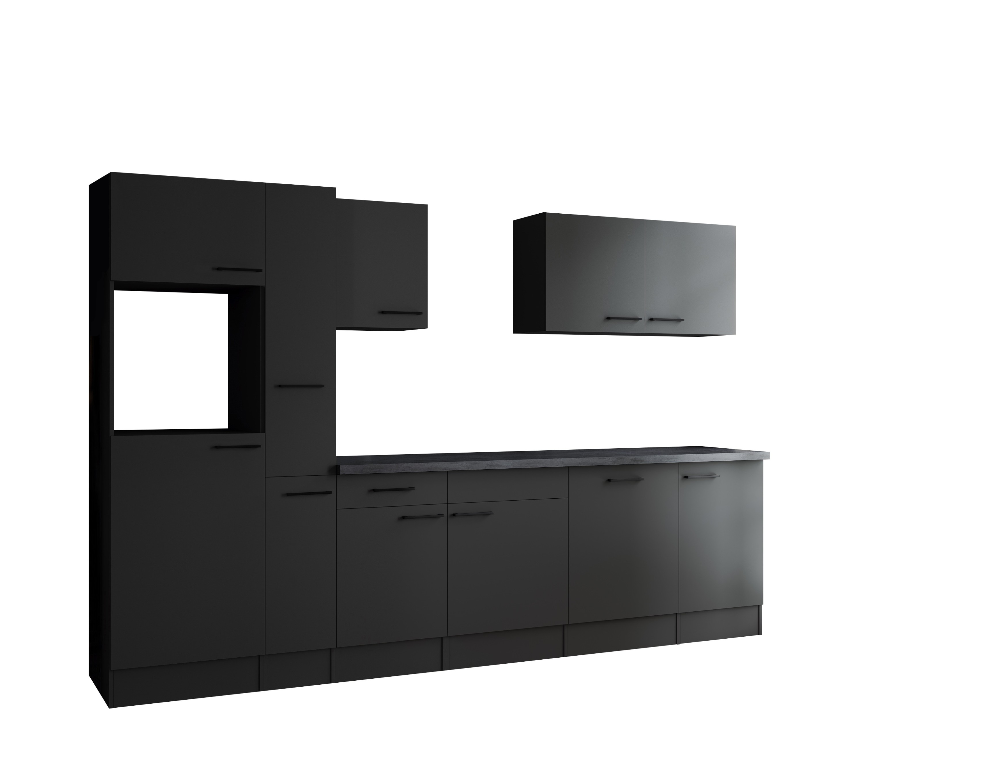 Küche Leerblock Oliver – 310 cm in Grau Matt und Granit Optik