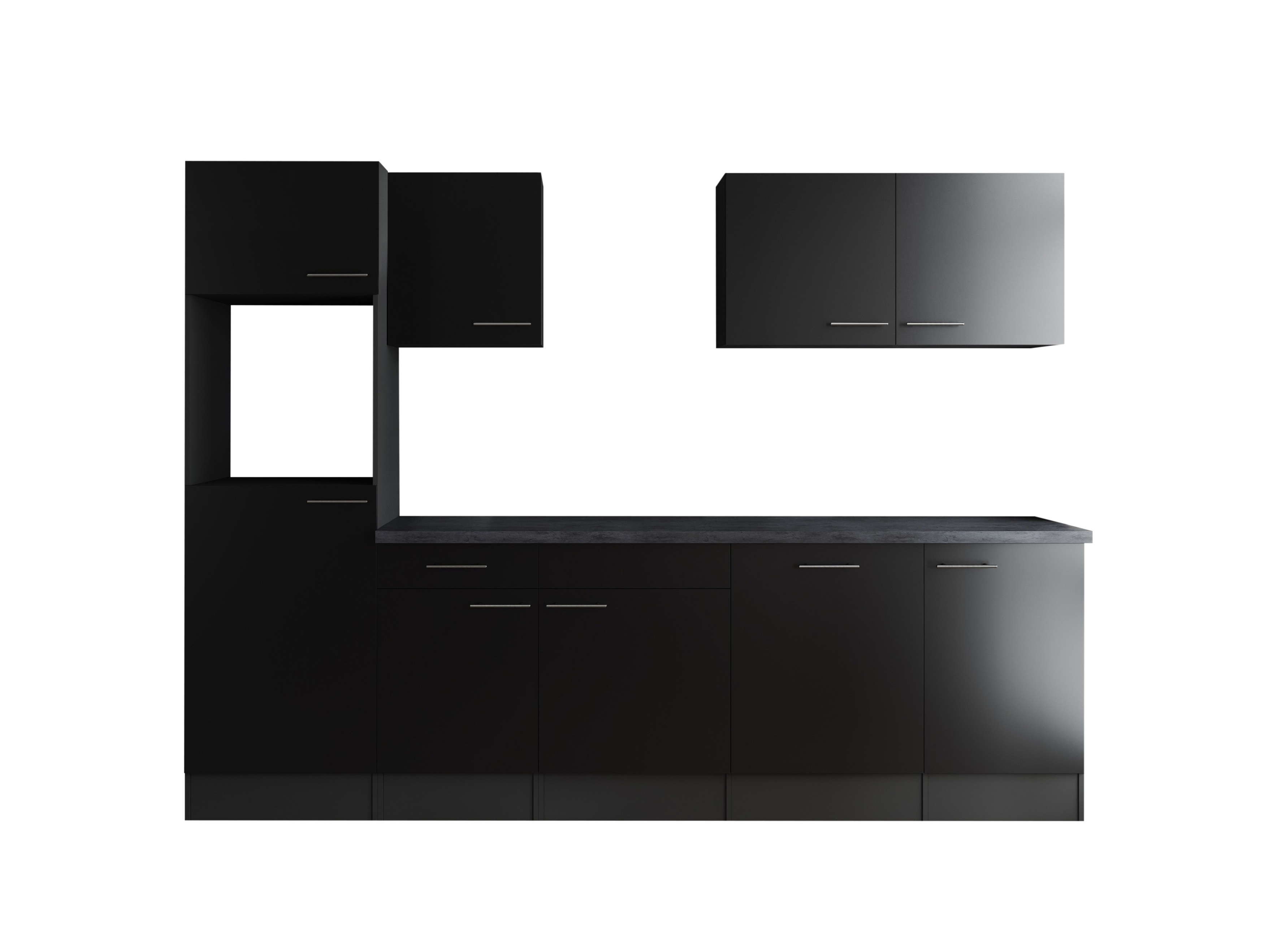 Küche Leerblock Oliver – 280 cm in Schwarz und Granit Optik