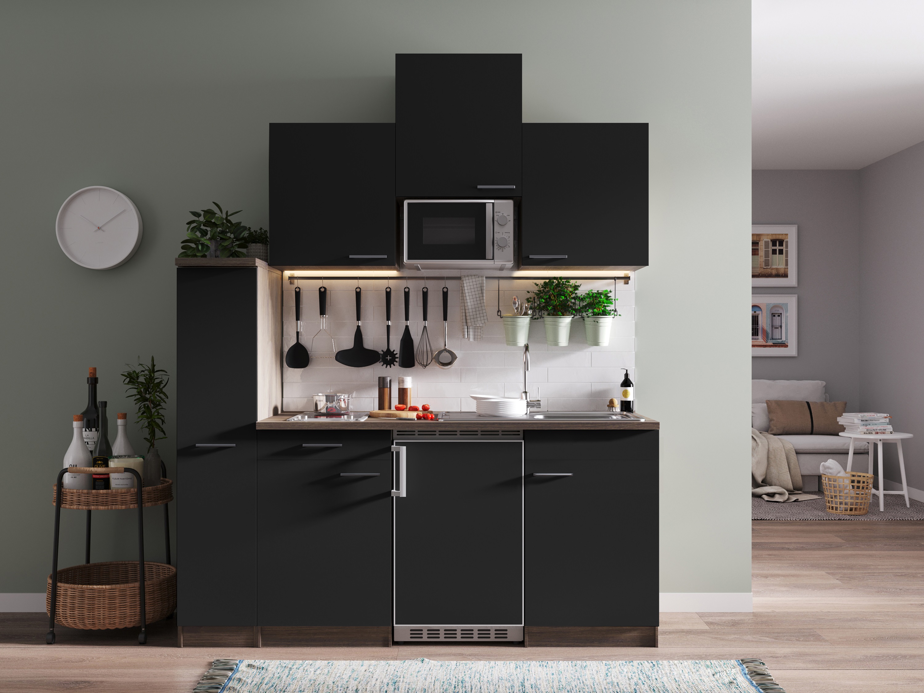Produktinformationen "Küche Küchenzeile Singleküche Eiche York Schwarz Oliver 180 cm Respekta"