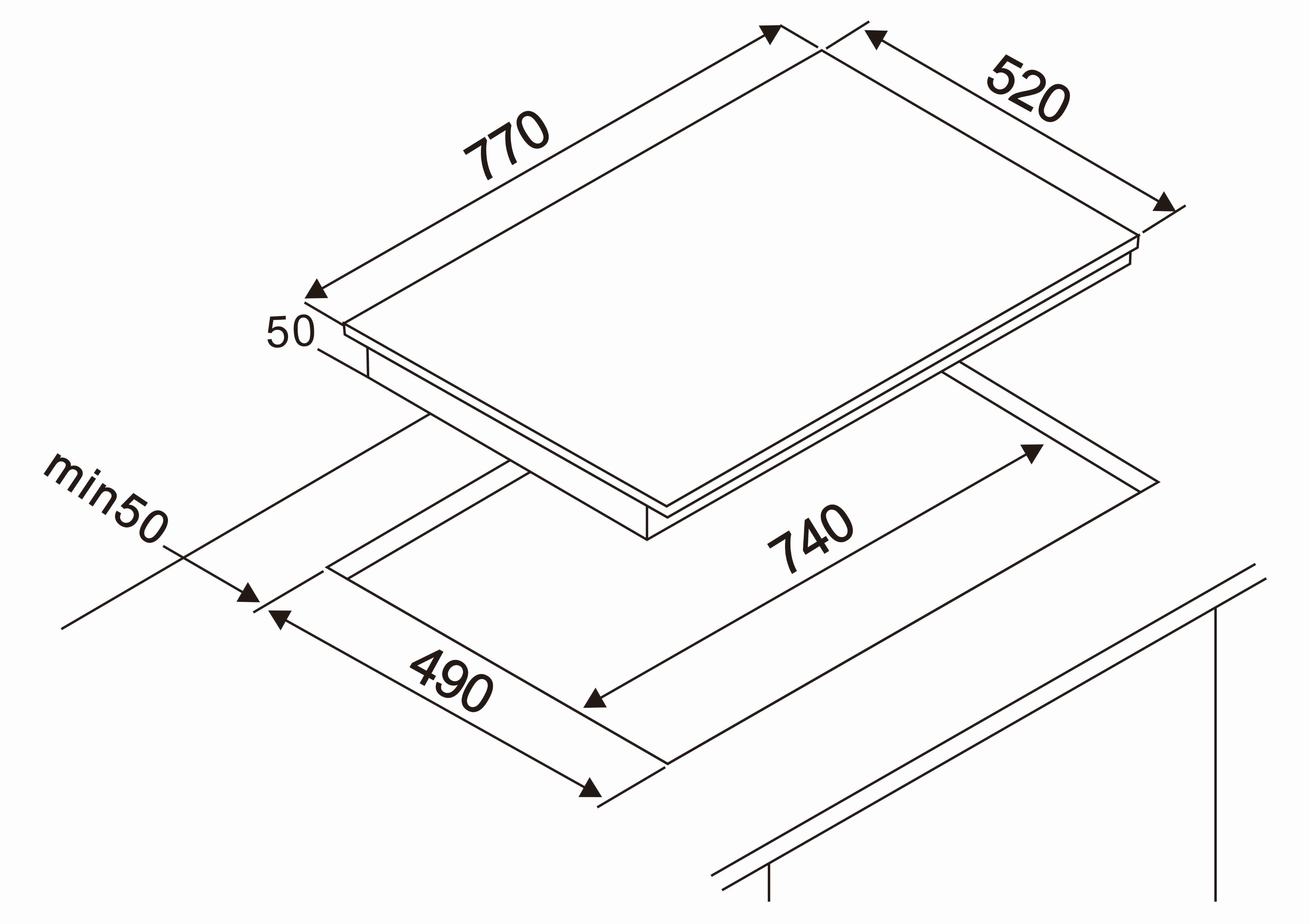 - Ausschnittmaße (B x T): 74,2 x 49,2 cm