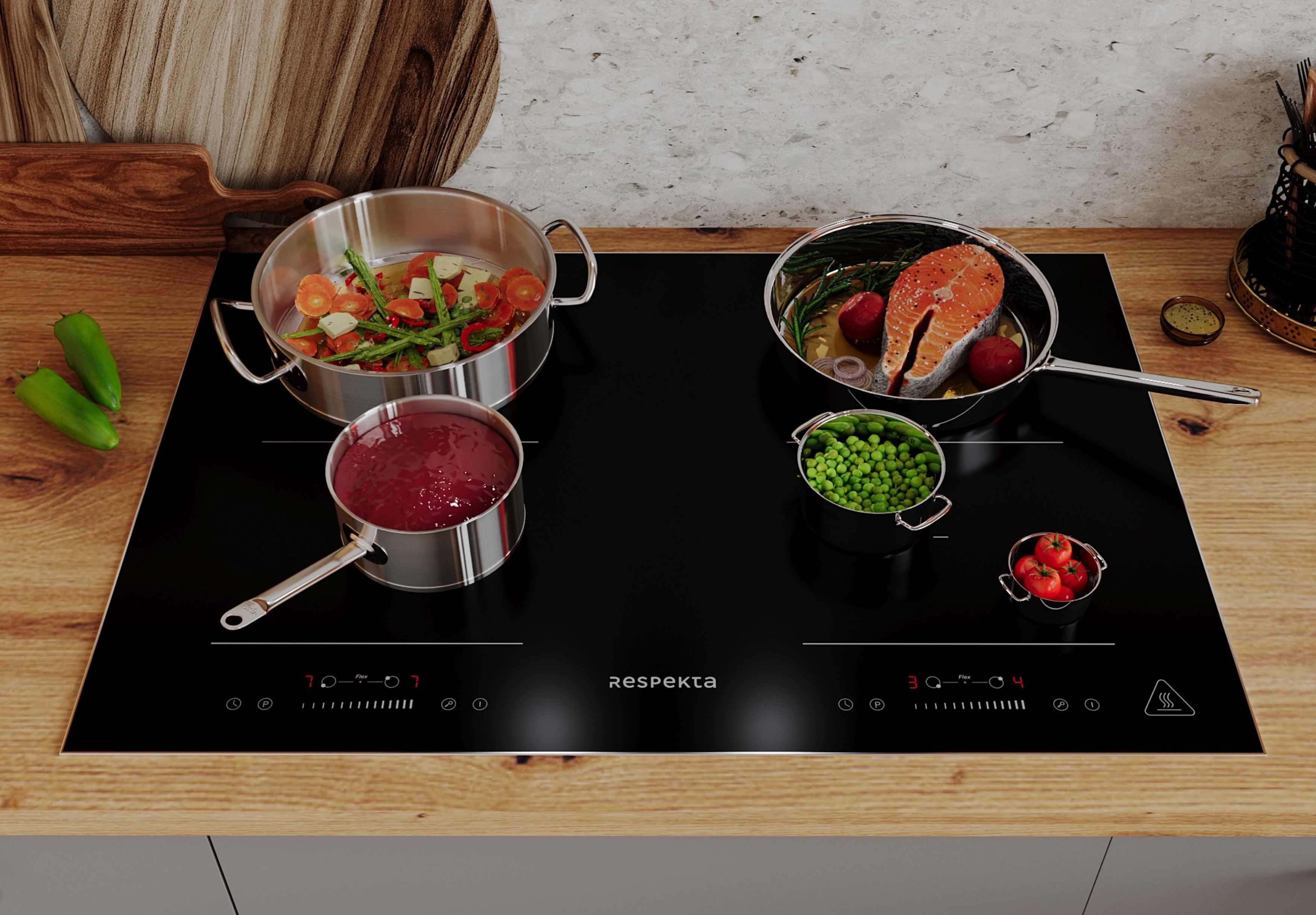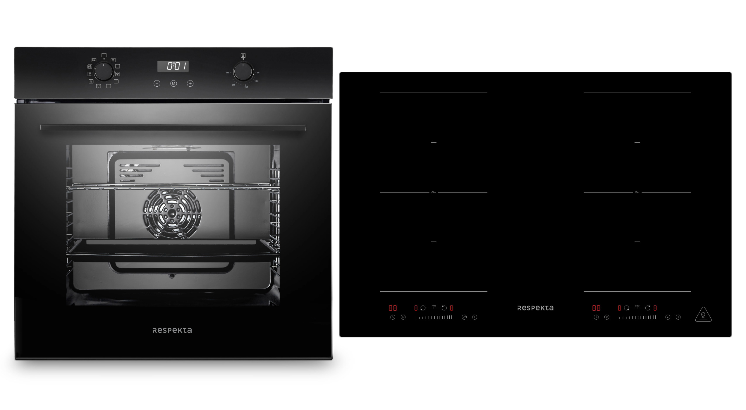 Produktinformationen "Backofen Herd Kochfeld Schwarz Induktion 77cm Timer 2 Flexzonen Slider Respekta"