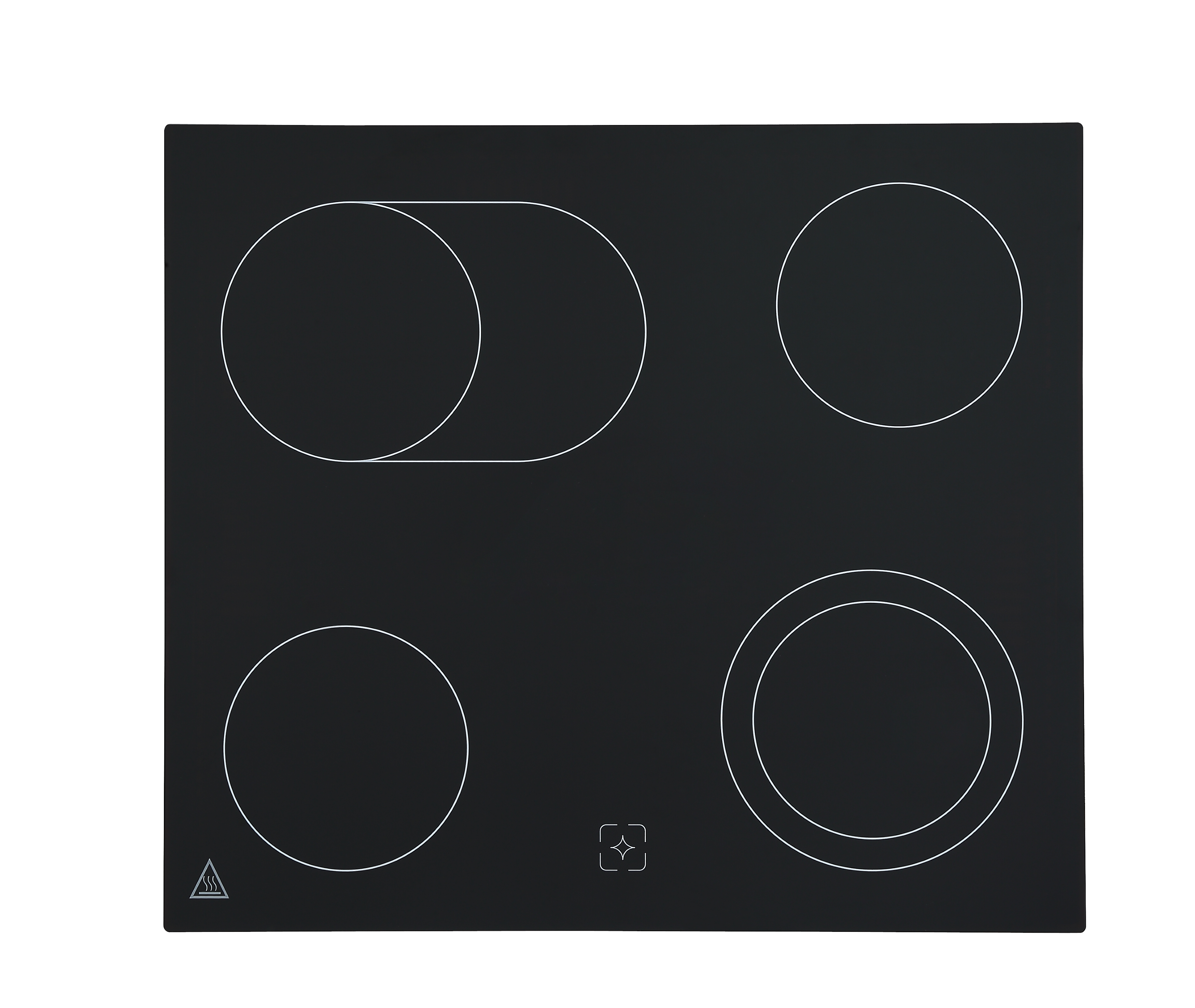 - Kochfeld mit Zweikreis- und Bräterzone – Flexibilität für verschiedene Topf- und Pfannengrößen.