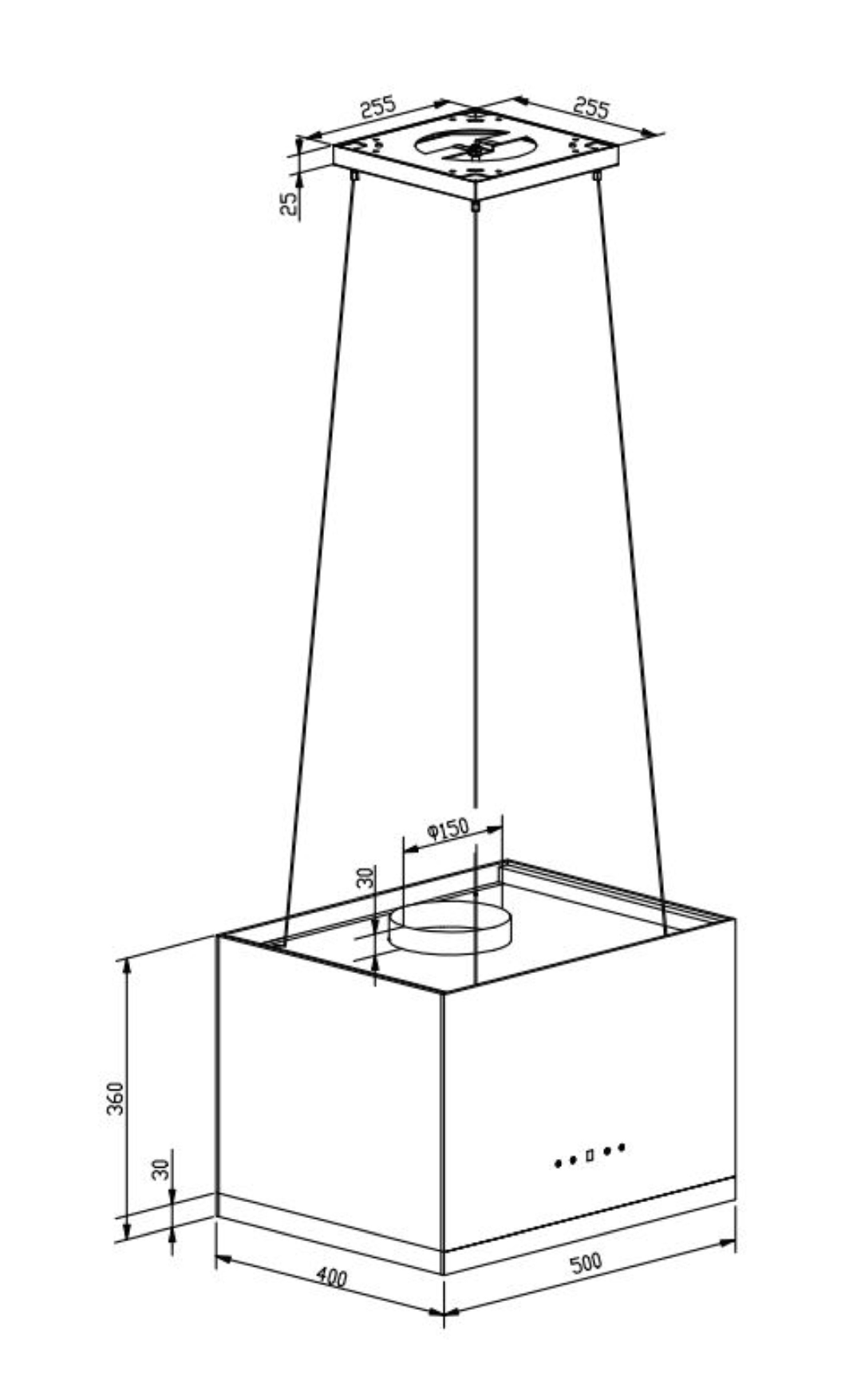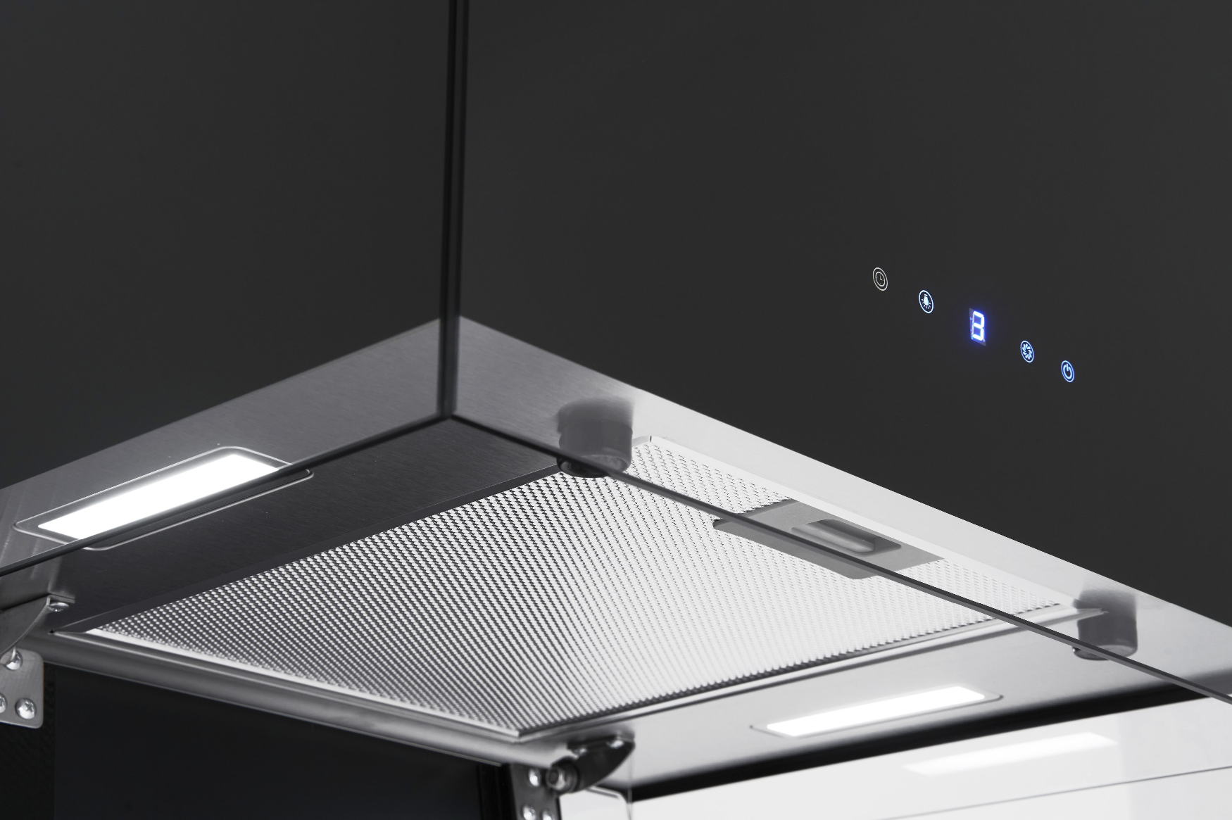 Eigenschaften "Dunstabzugshaube Inselhaube 50 cm freihängend Designhaube Schwarz Touch Respekta"
