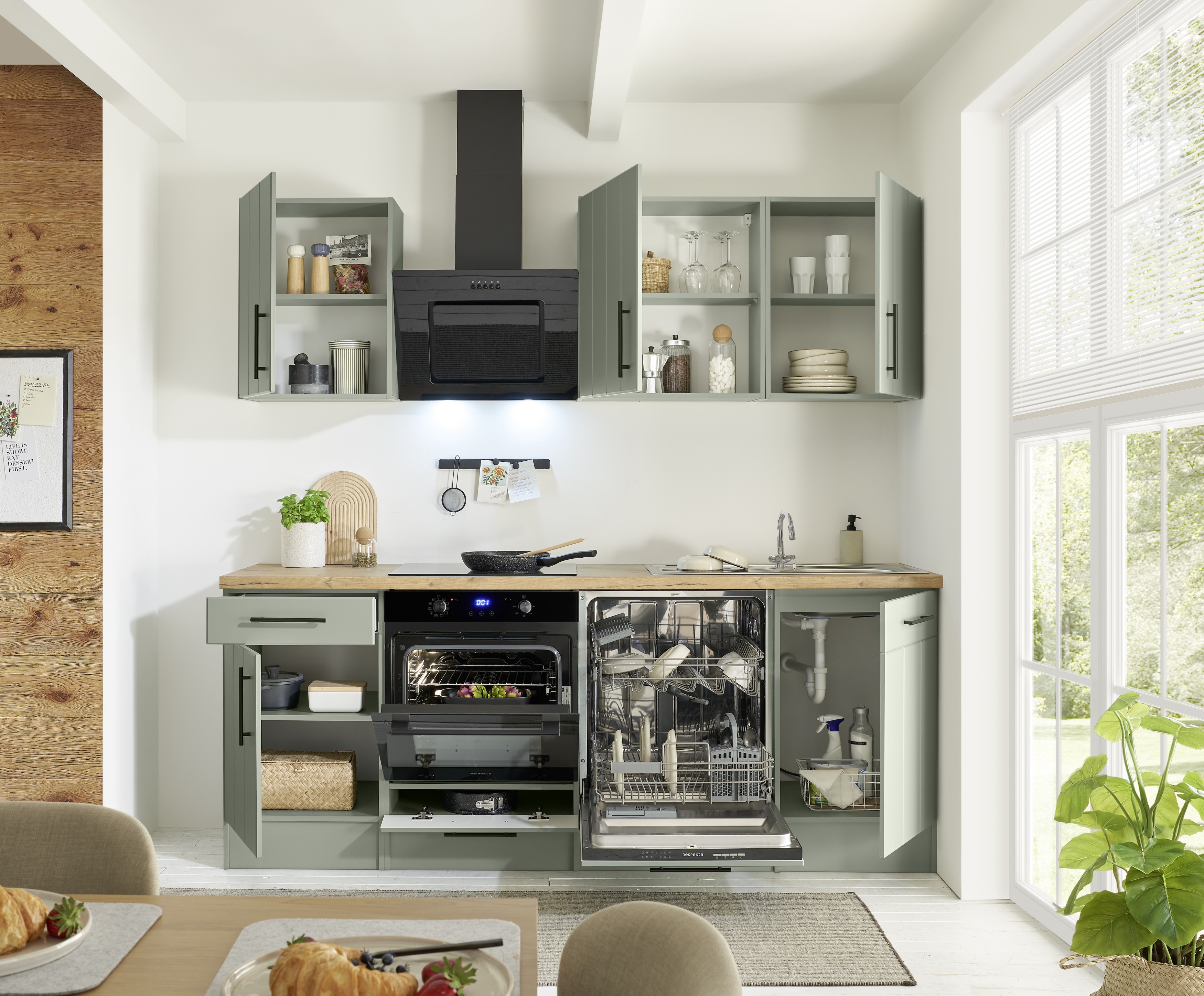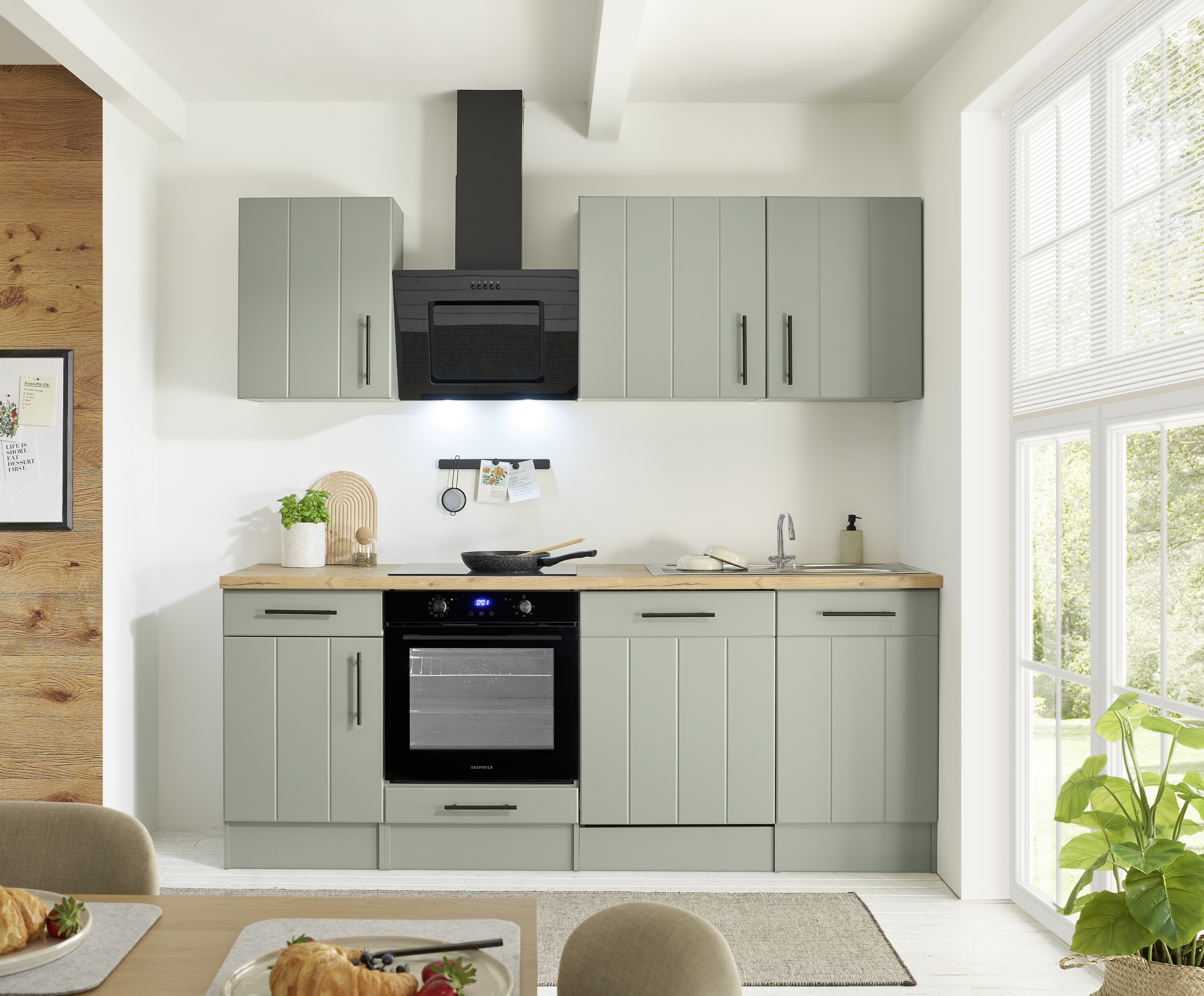 Respekta Premium Küche Anton – Schilfgrün trifft auf zeitgemäßen Landhausstil für eine frische, moderne Küche.