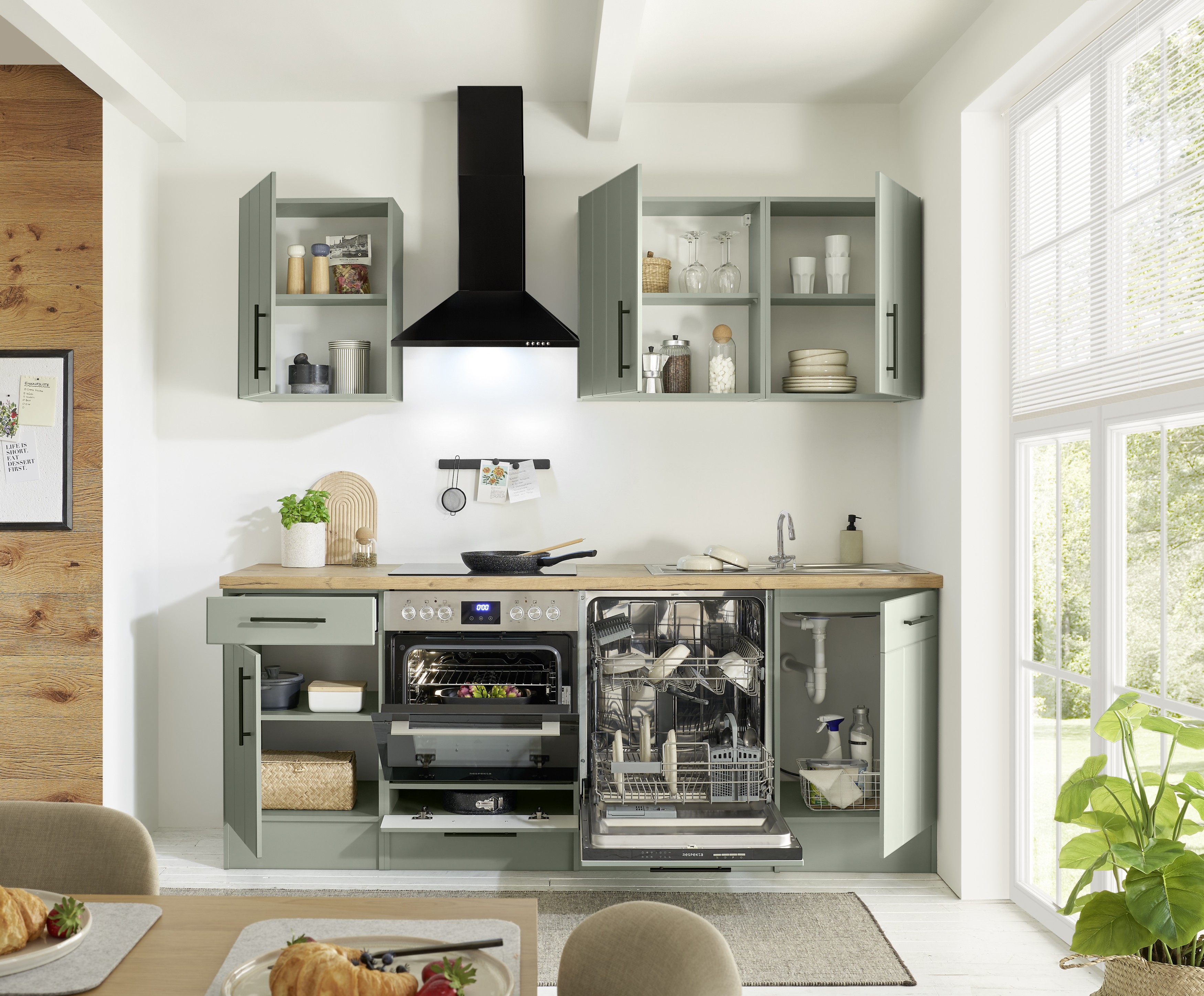 Respekta Premium Küche Anton – Schilfgrün trifft auf zeitgemäßen Landhausstil für eine frische, moderne Küche.