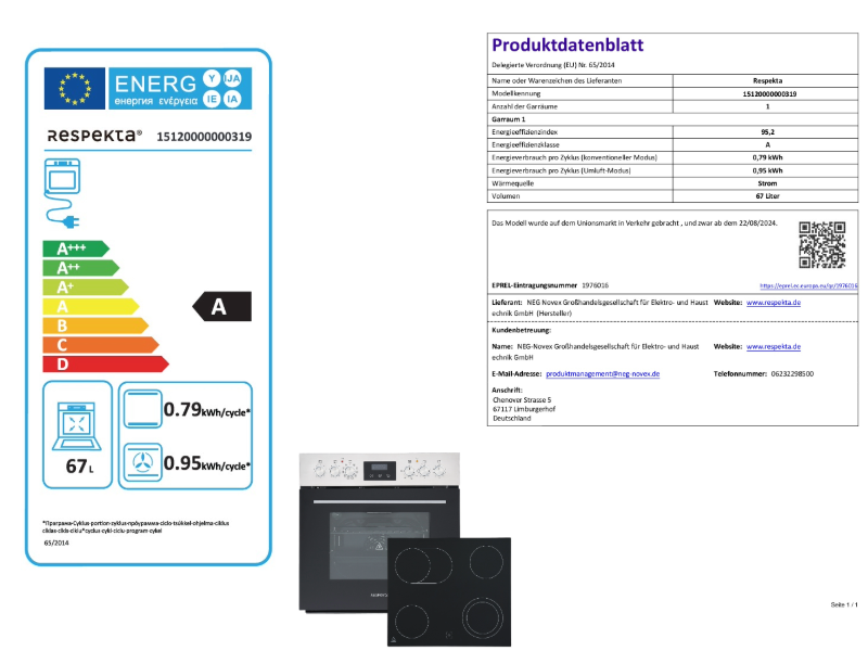 - Heißluft / Umluft 0,95 kWh