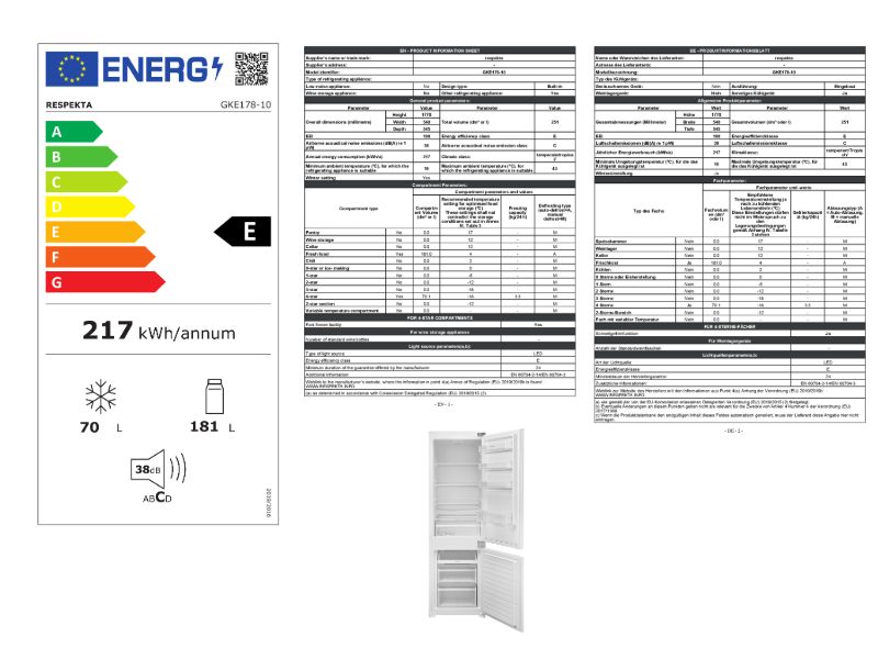 - Nutzinhalt Kühlfach 181 l
