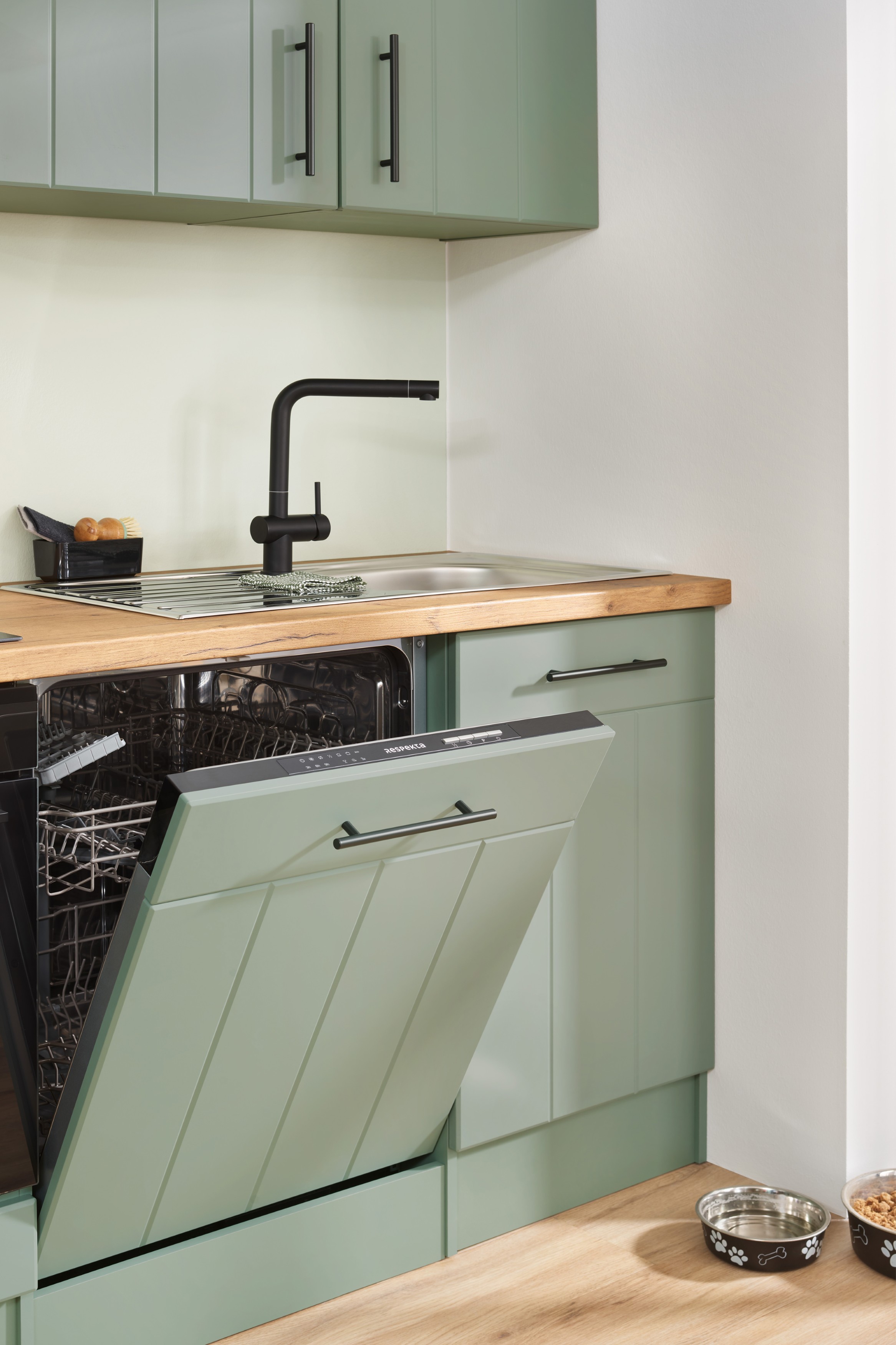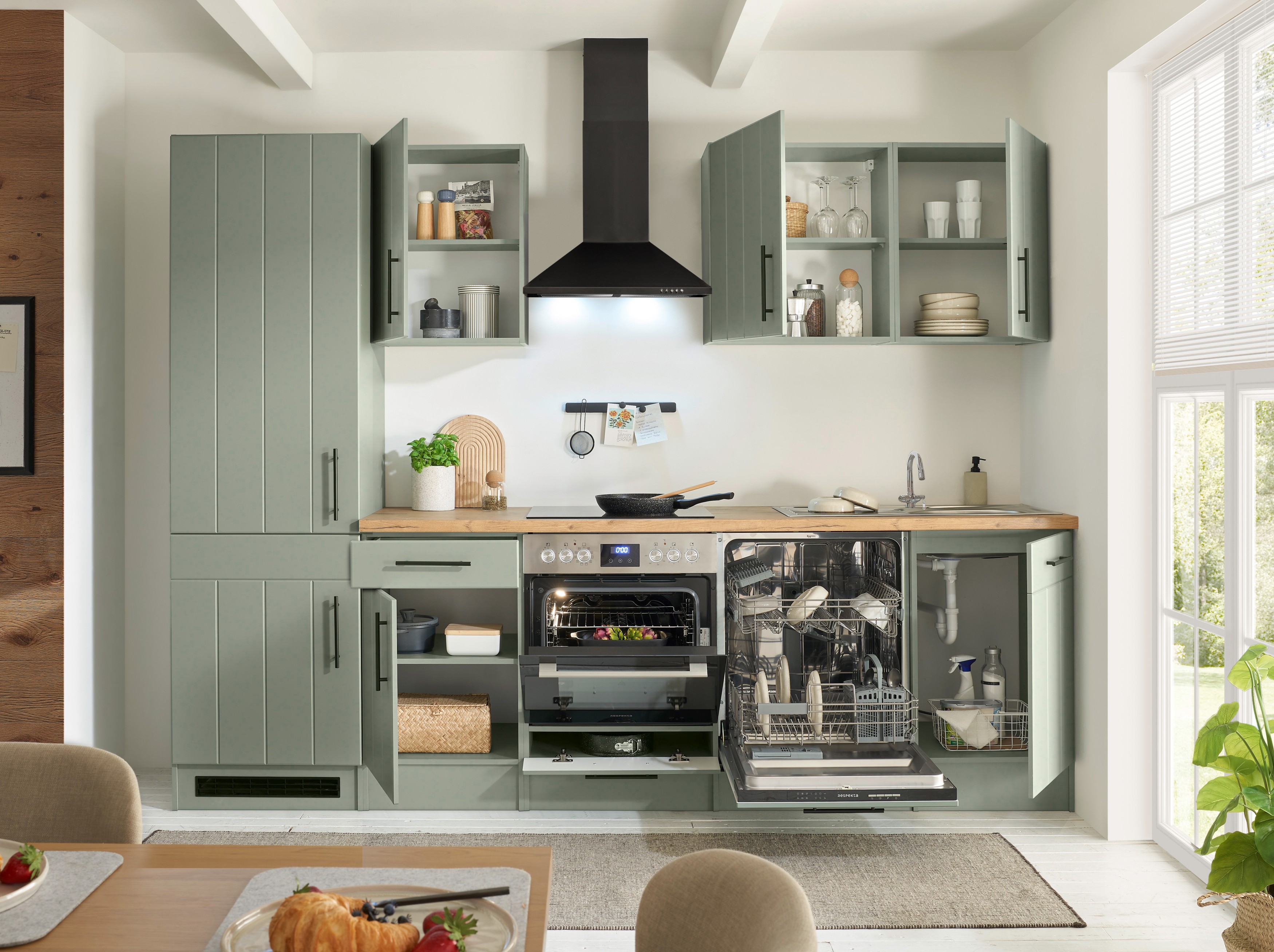 Respekta Premium Küche Anton – Schilfgrün trifft auf zeitgemäßen Landhausstil für eine frische, moderne Küche.