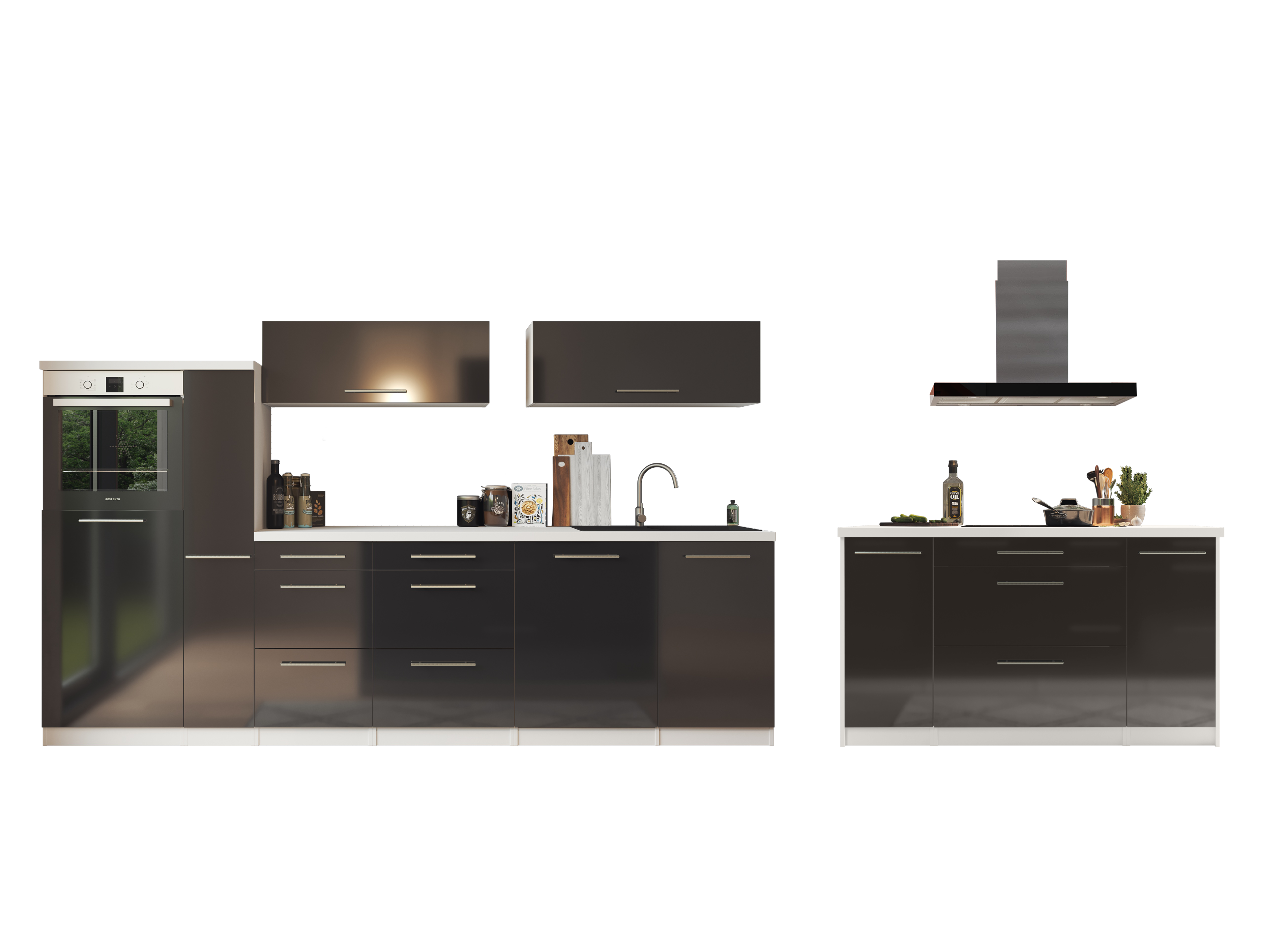 Produktinformationen "Küche Küchenzeile Inselküche Weiß Schwarz Amanda 310 cm Respekta Premium"