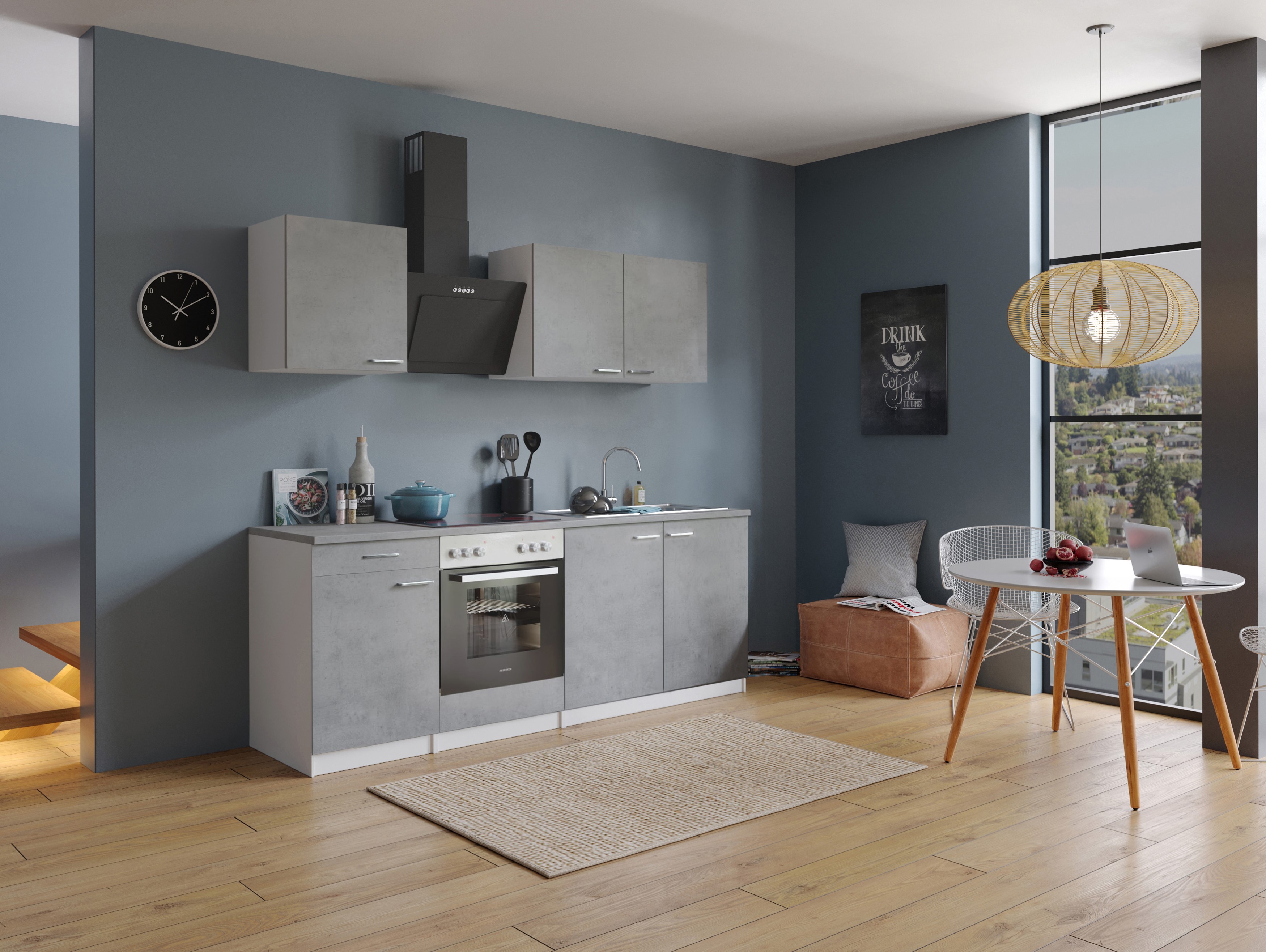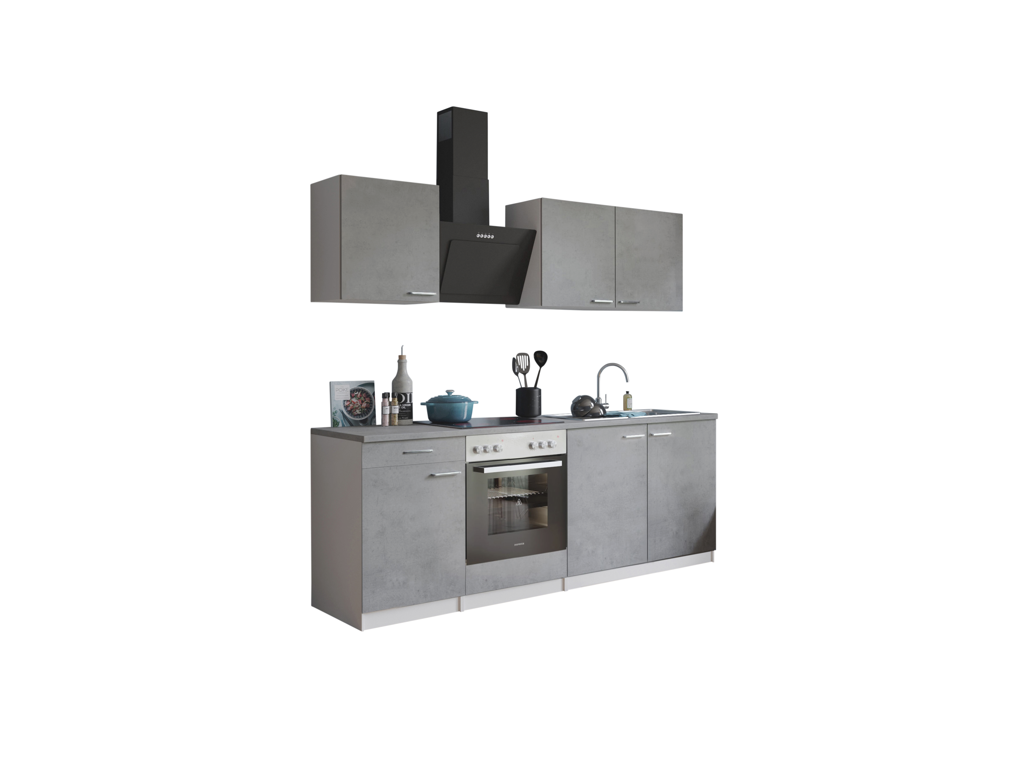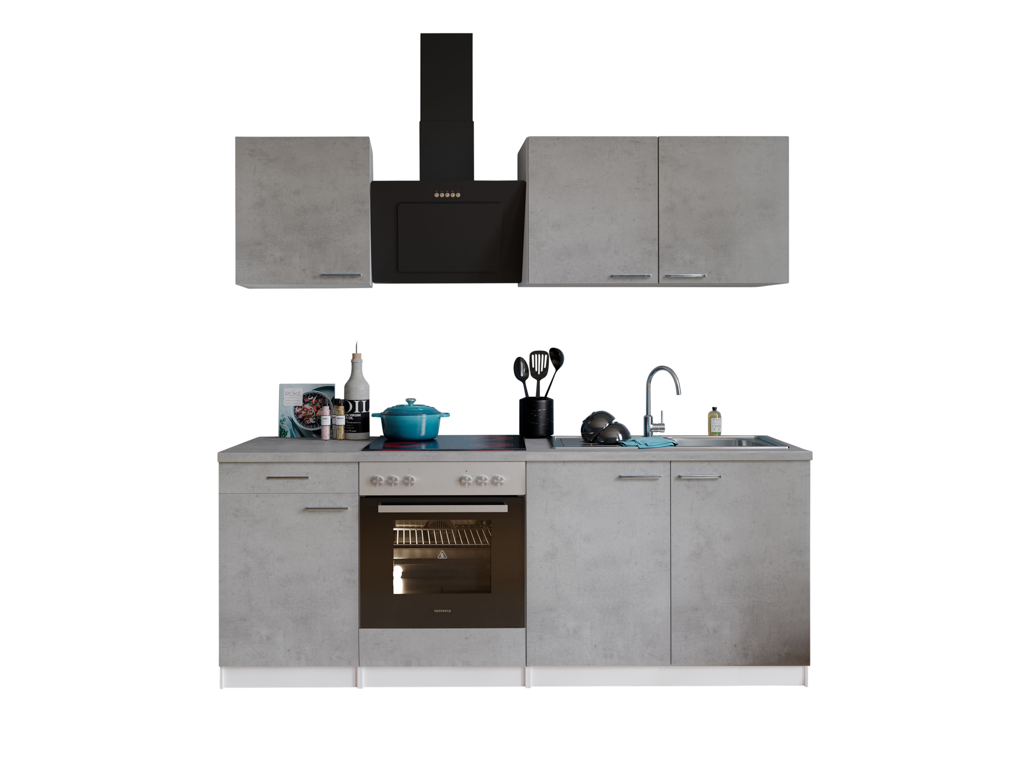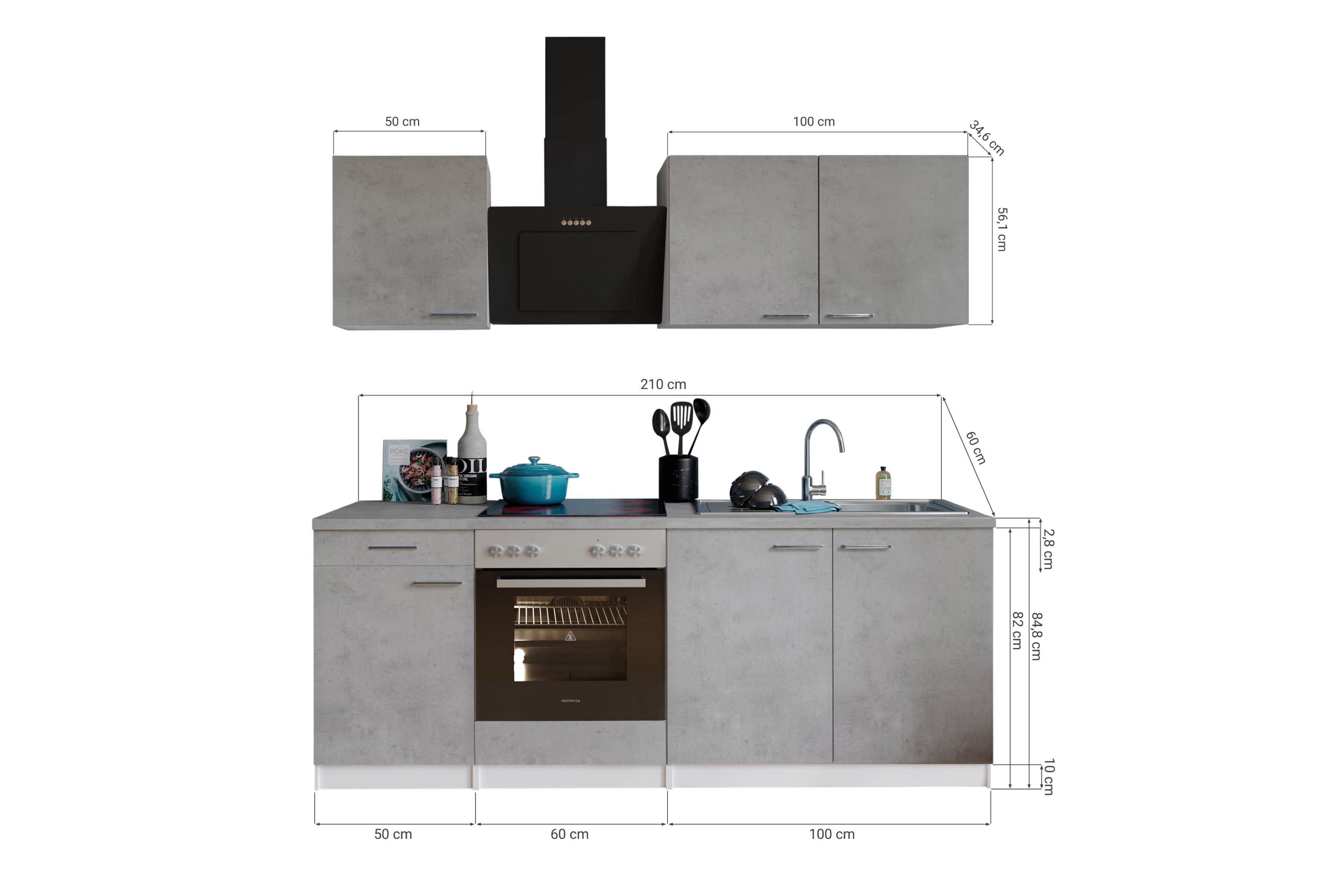 Eigenschaften "Küche Küchenzeile Küchenblock Einbauküche Weiß Beton Malia 210 cm Respekta"