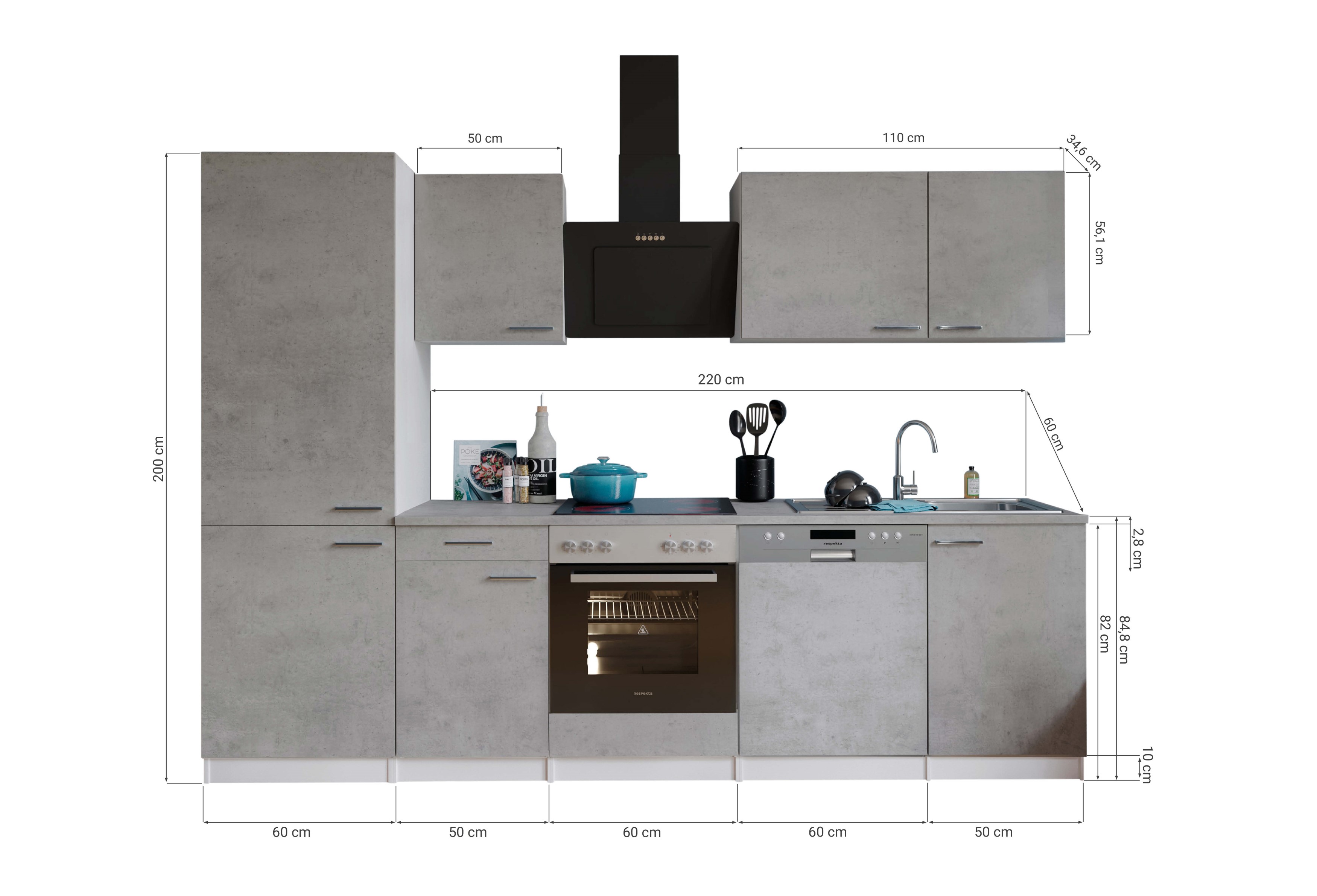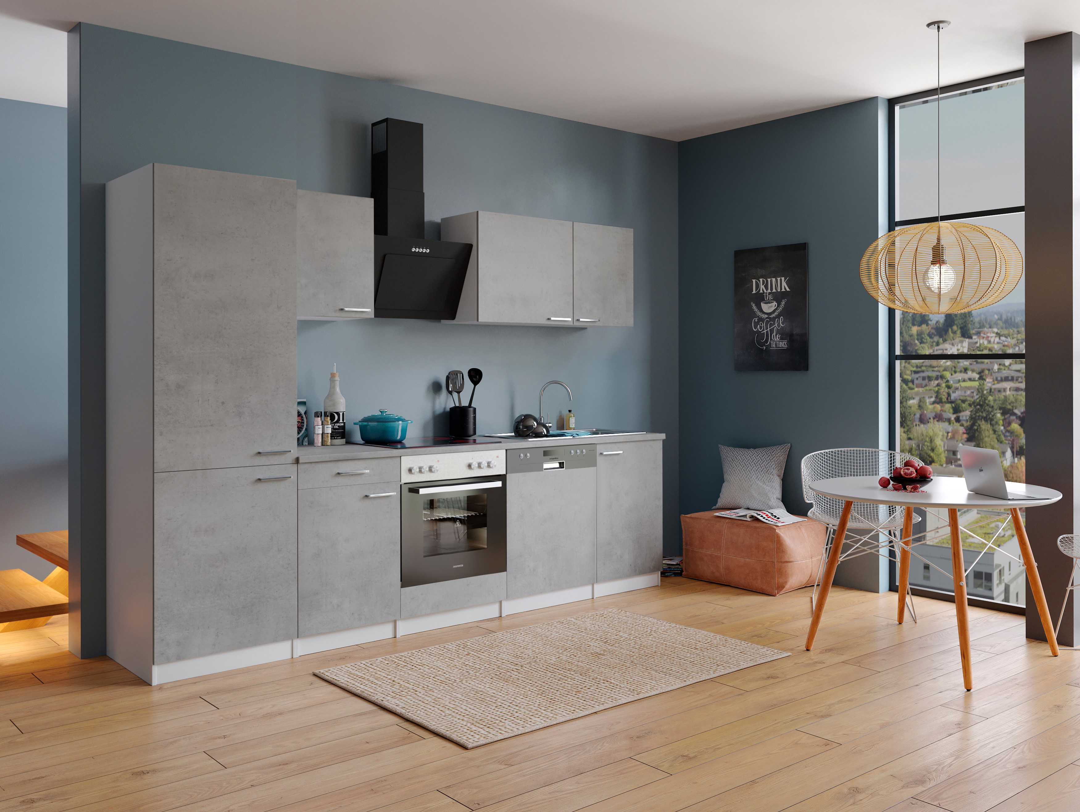 Eigenschaften "Küche Küchenzeile Küchenblock Einbauküche Weiß Beton Malia 280 cm Respekta"