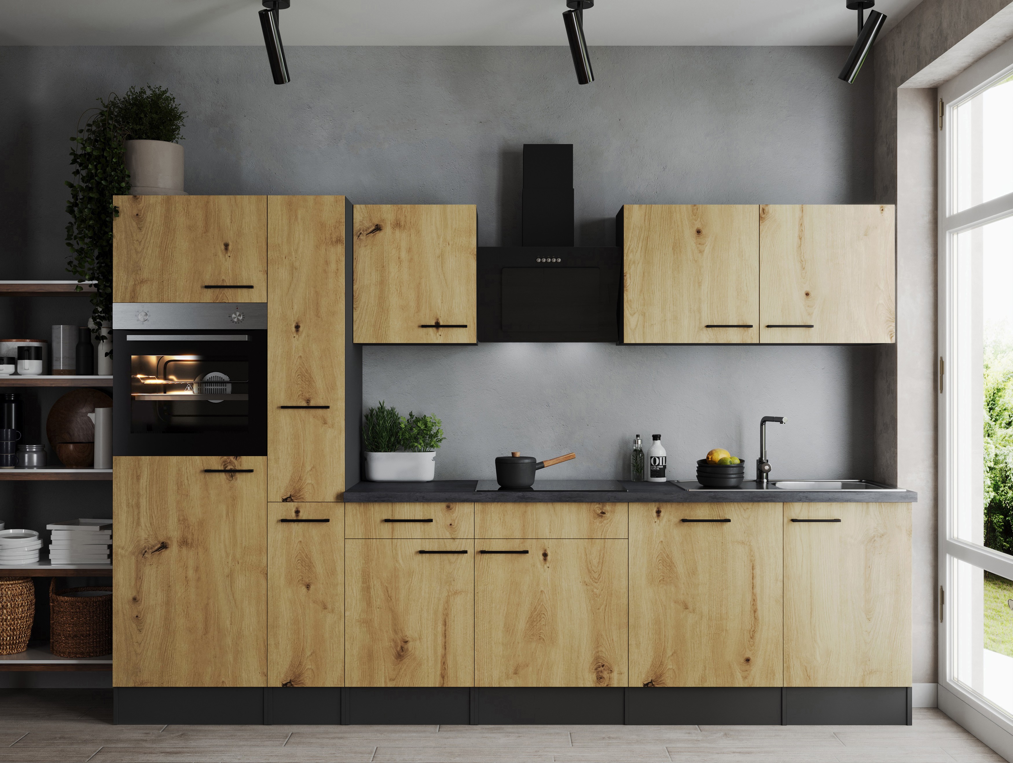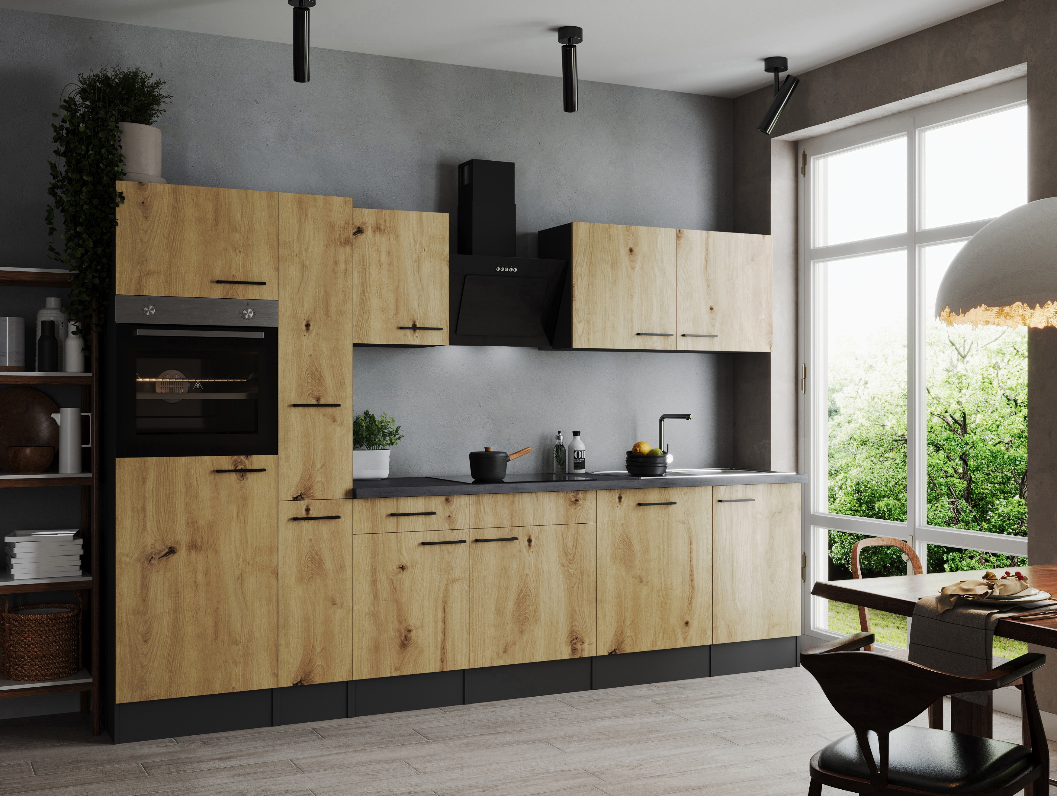 Küchenblock Oliver – 310 cm in Artisan Eiche Nachbildung und Granit Optik