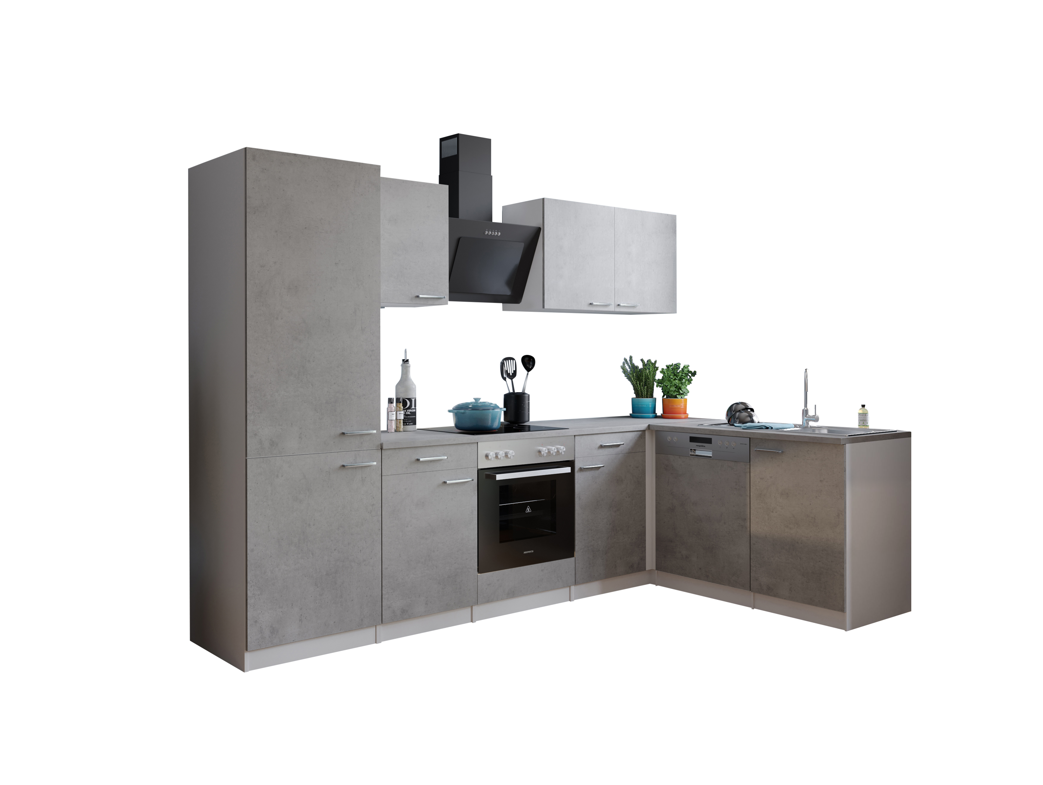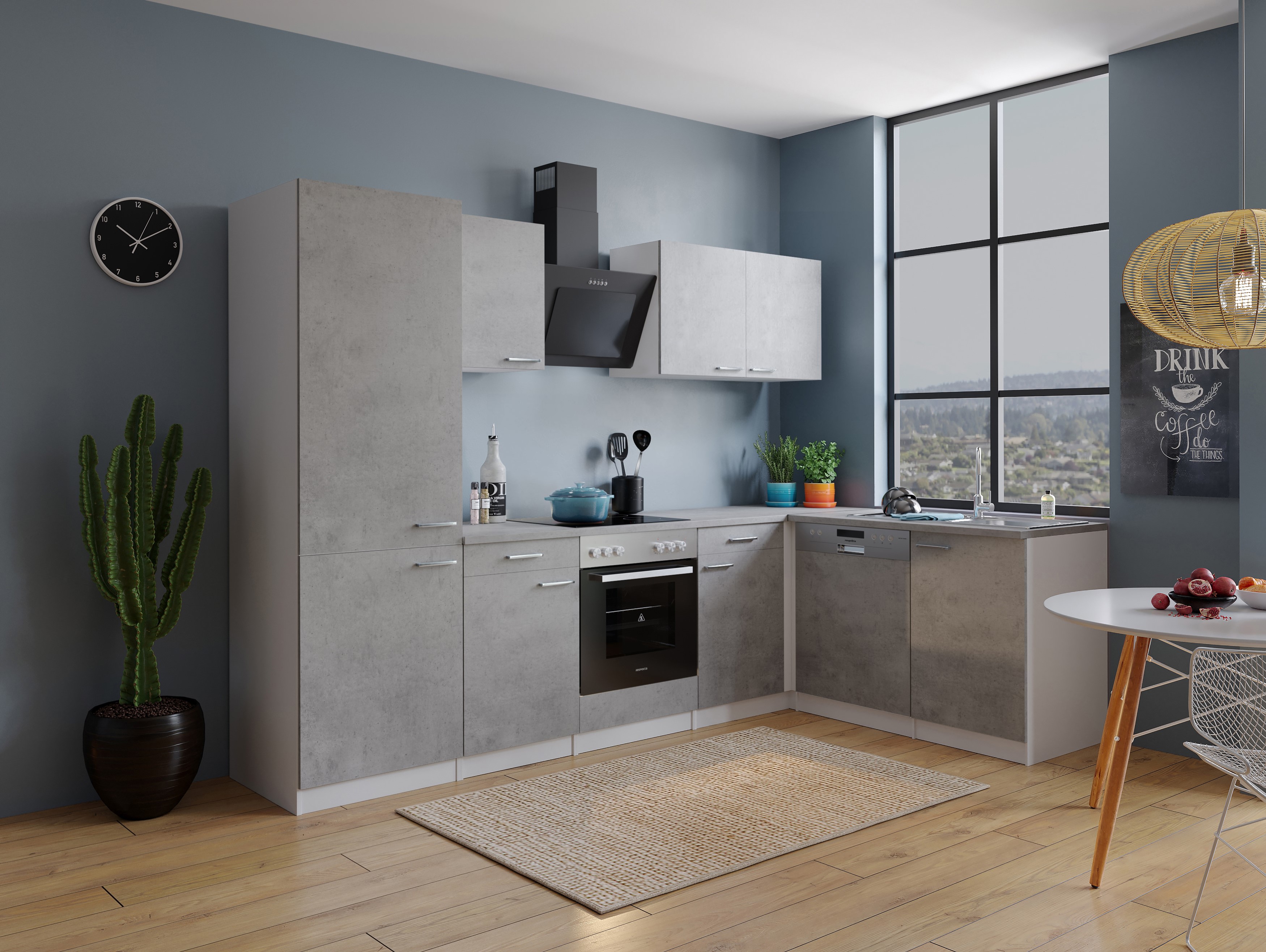 Eigenschaften "Küche Küchenzeile Küchenblock Winkelküche Weiß Beton Malia 280x172 cm Respekta"