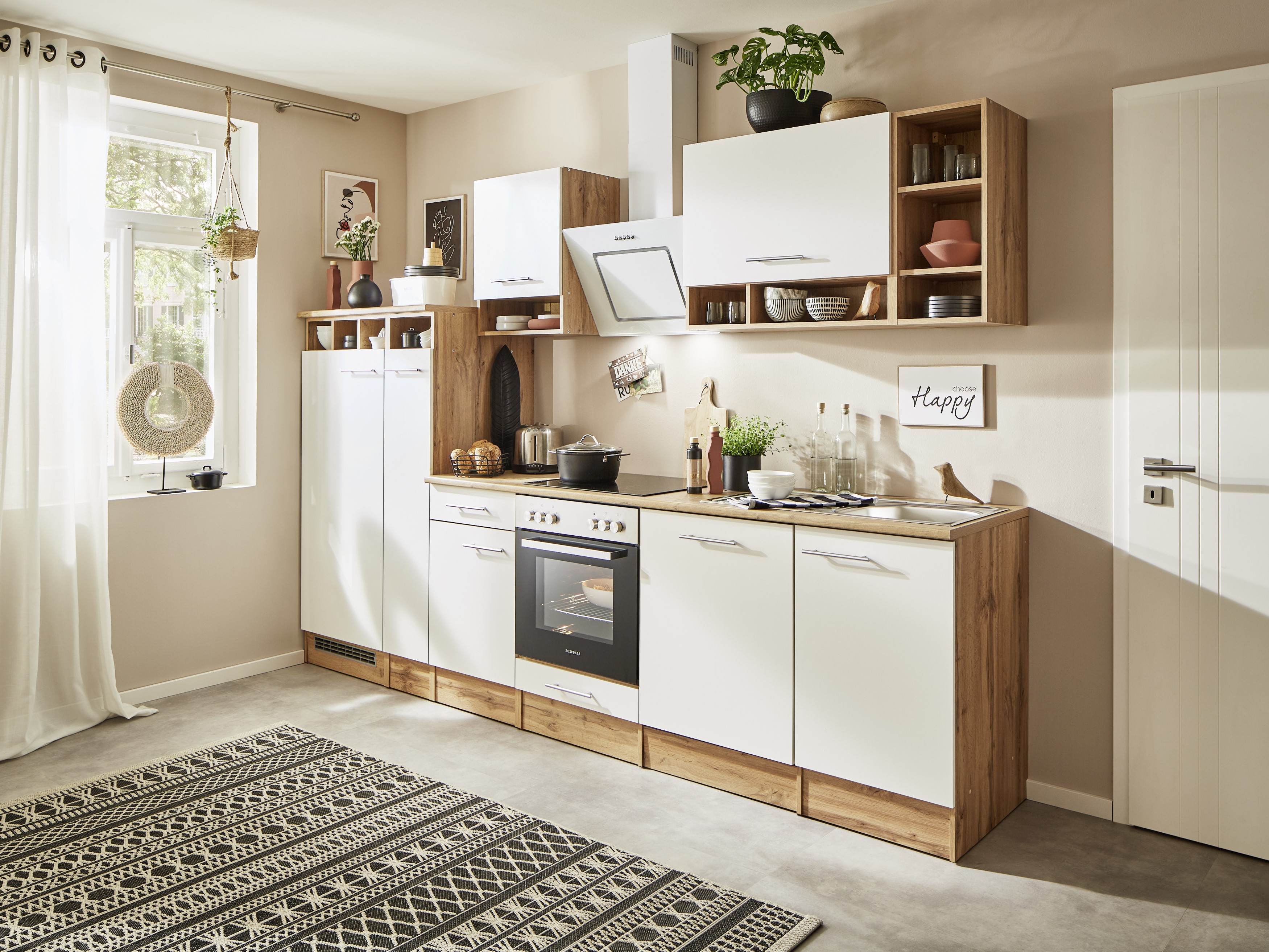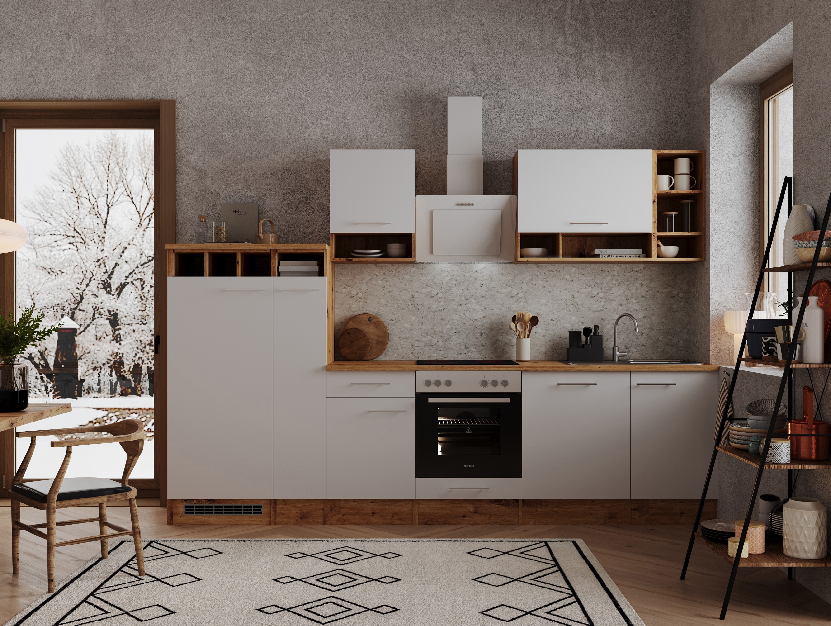 Produktinformationen "Küche Küchenzeile Leerblock Einbauküche Eiche Weiß Hilde 310 cm Respekta"
