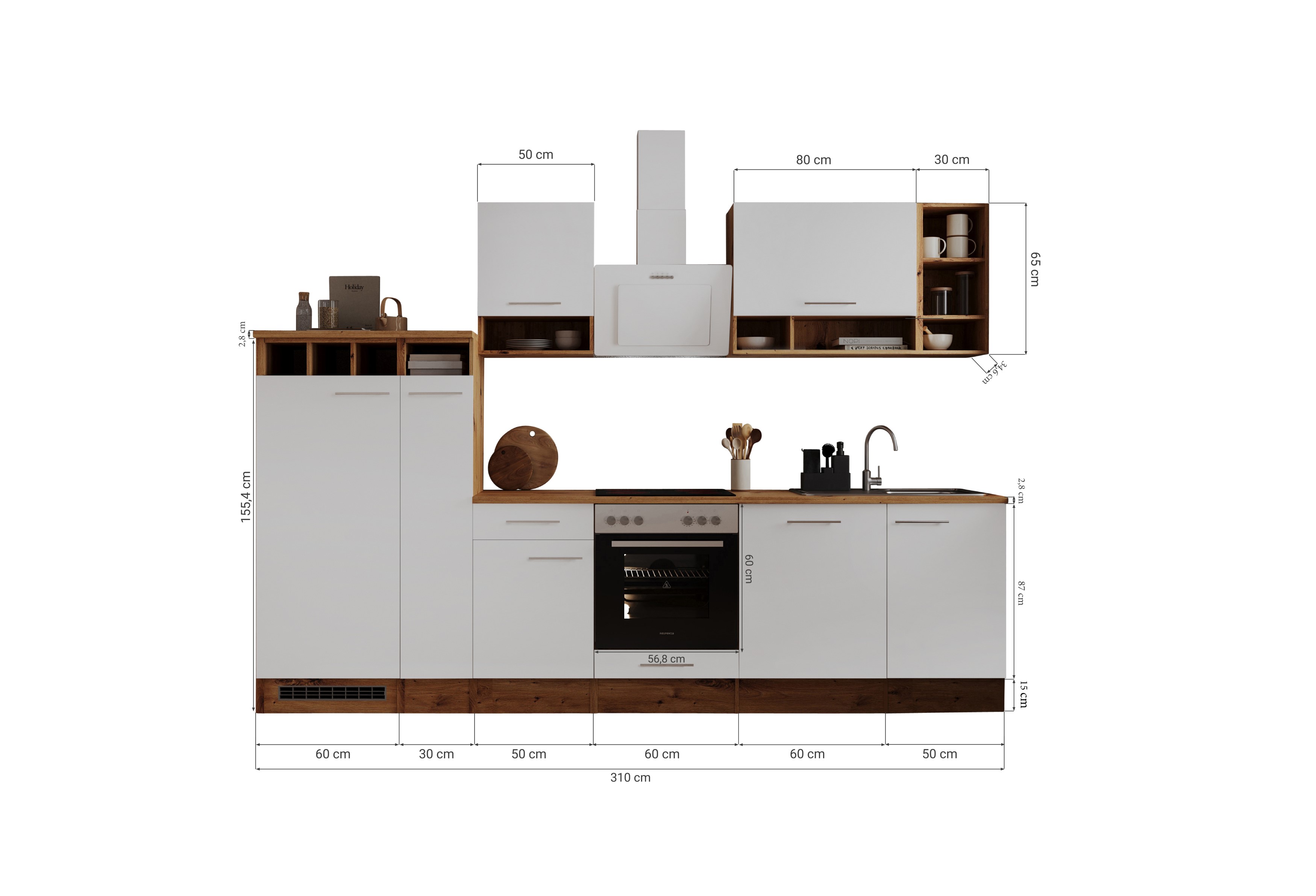 Eigenschaften "Küche Küchenzeile Leerblock Einbauküche Eiche Weiß Hilde 310 cm Respekta"