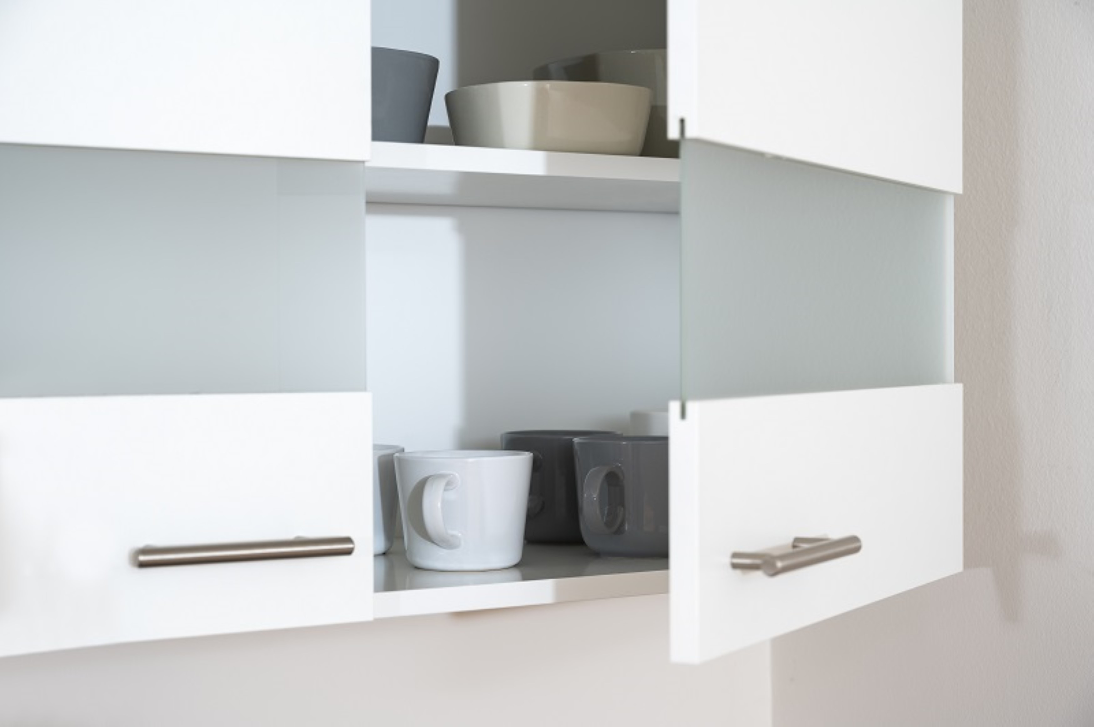 - 1 Oberschrank mit Glaseinlagen in den Türen, 100 cm breit