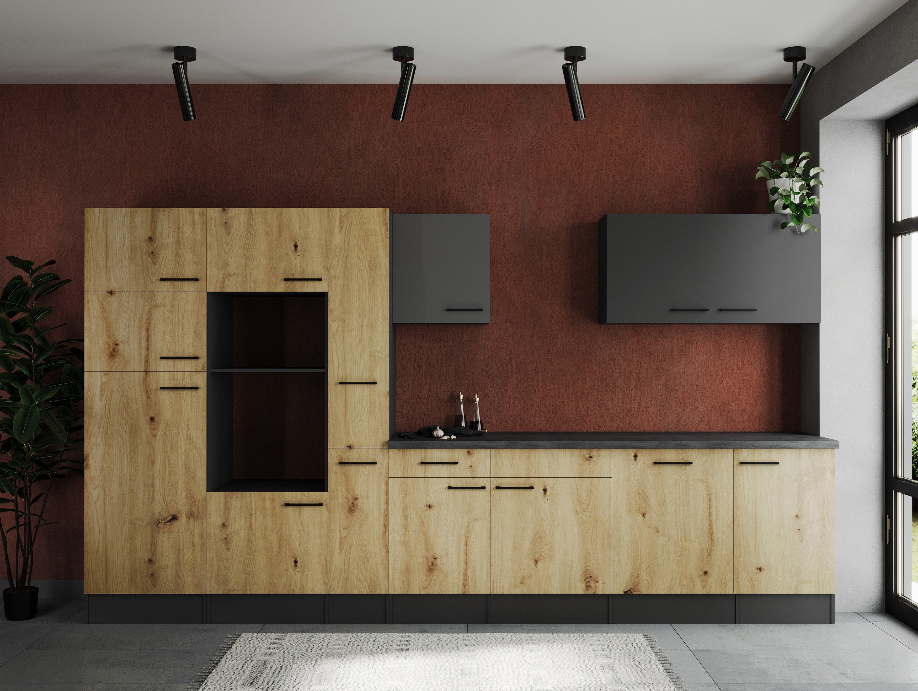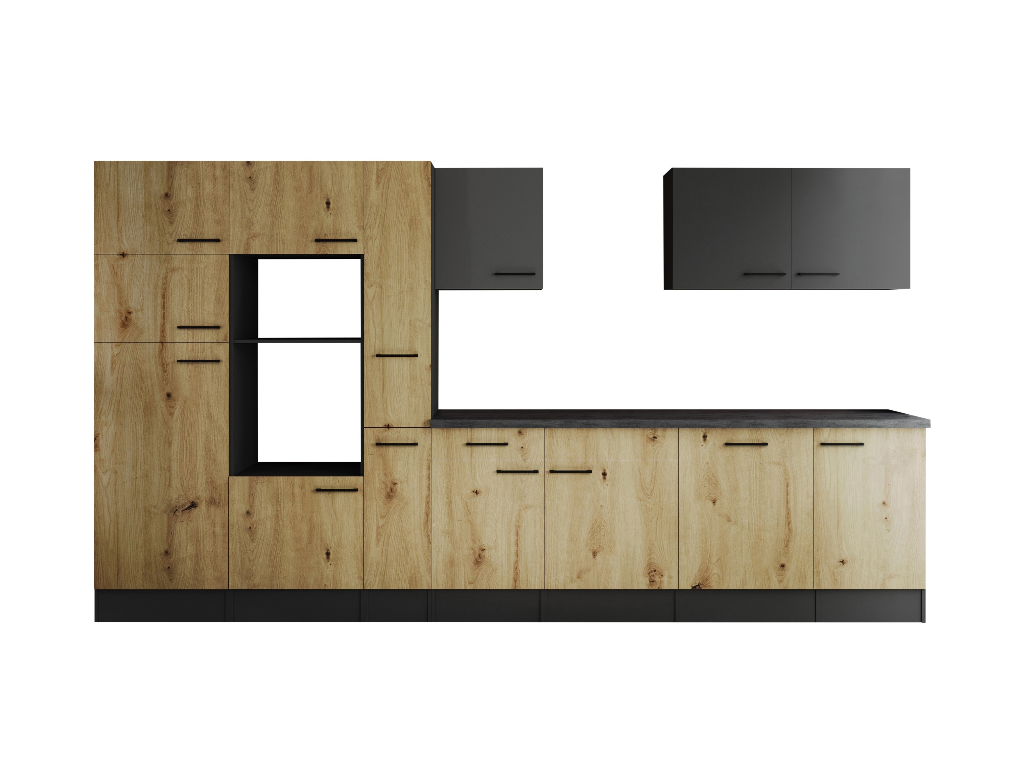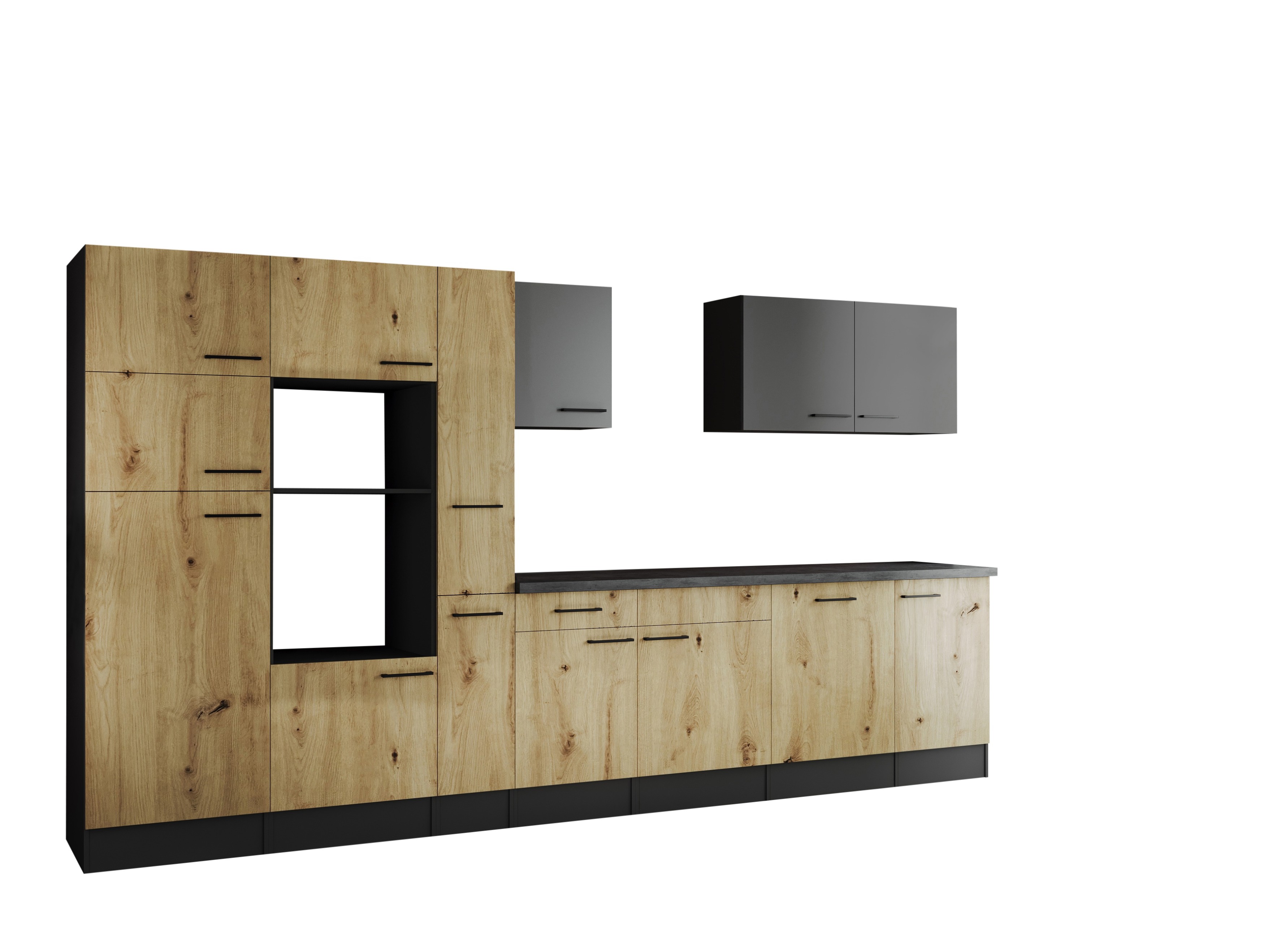 Küche Leerblock Oliver – 370 cm in Artisan Eiche Nachbildung und Granit Optik