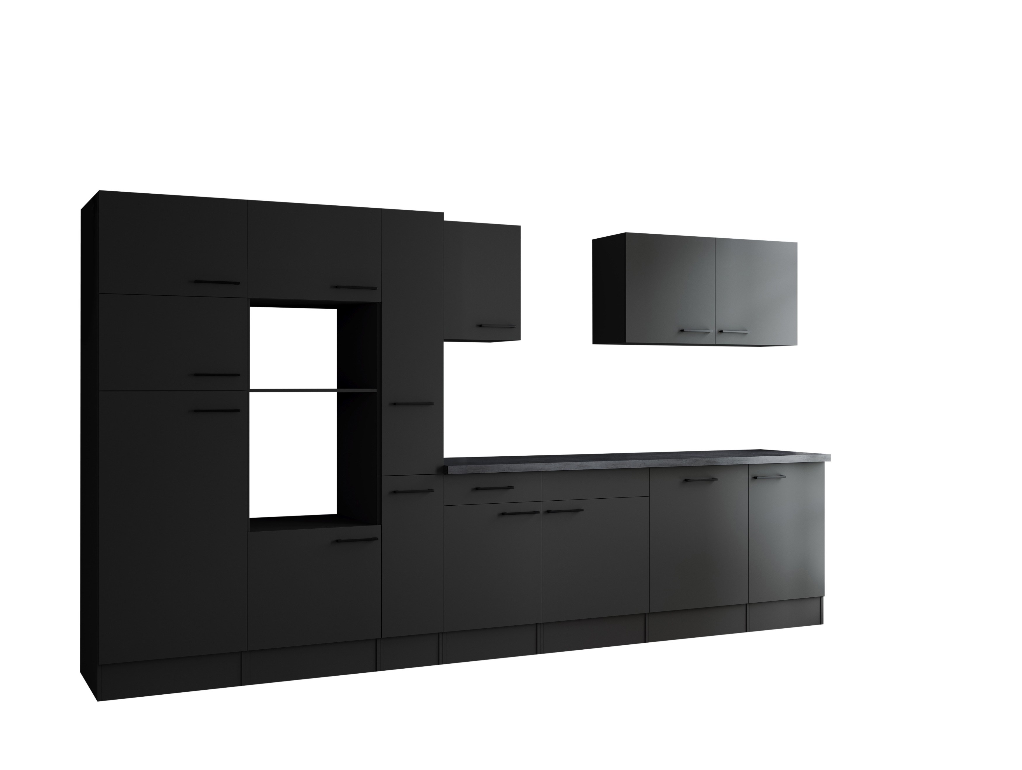 Küche Leerblock Oliver – 370 cm in Grau Matt und Granit Optik