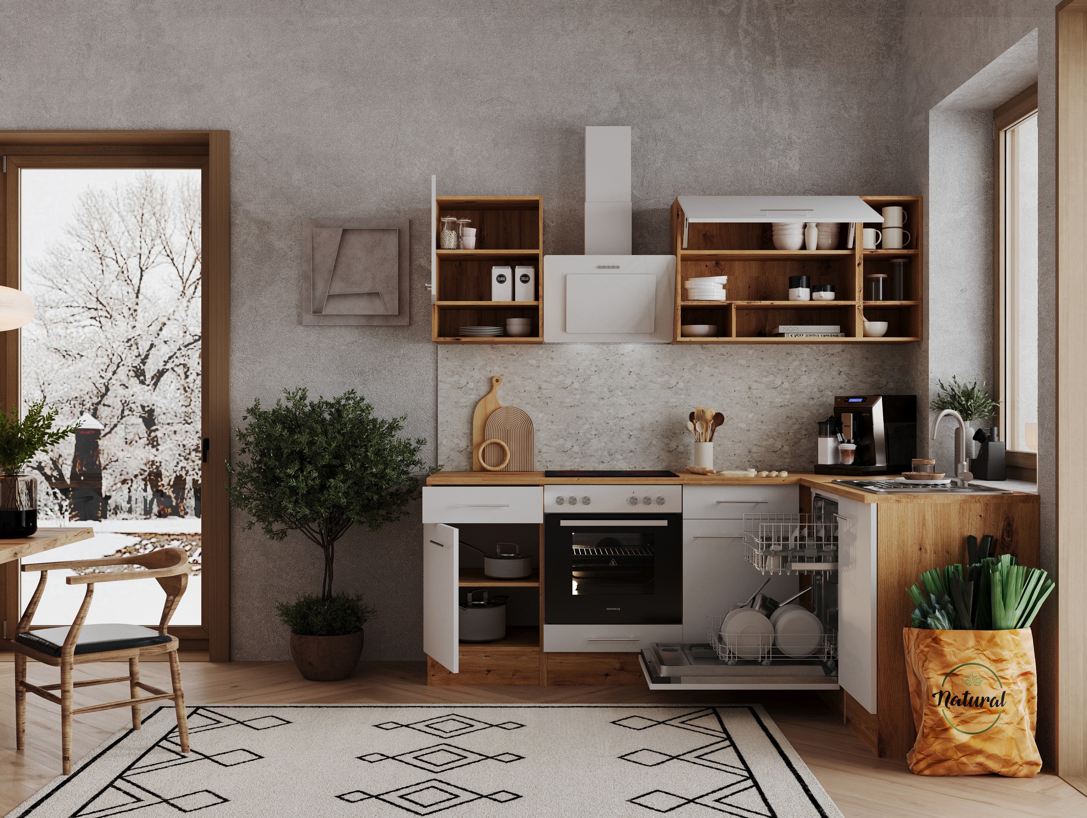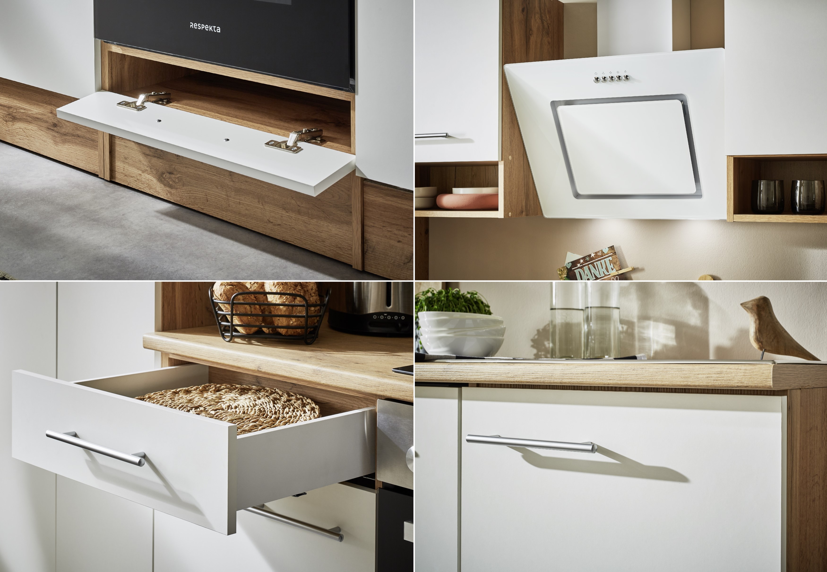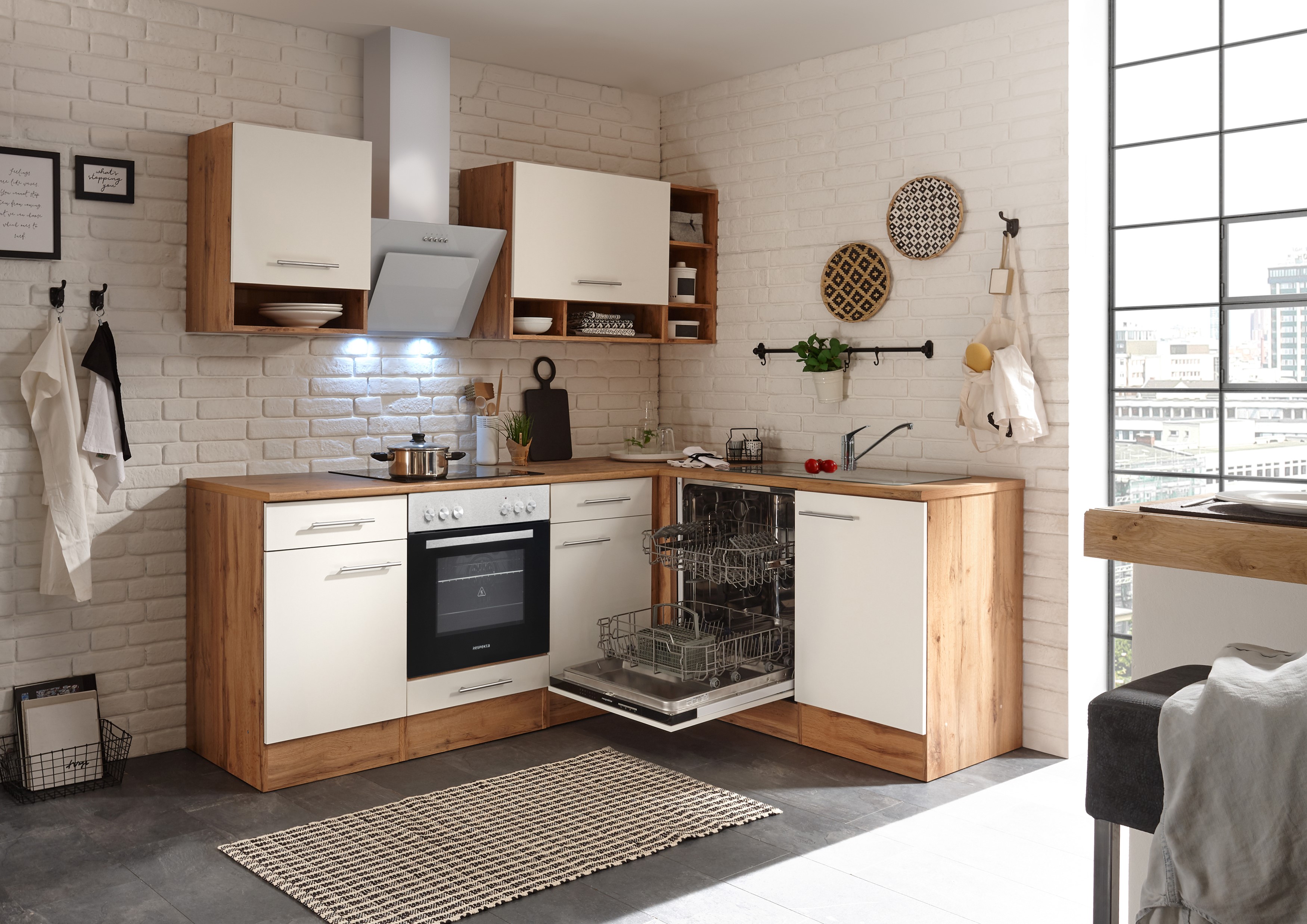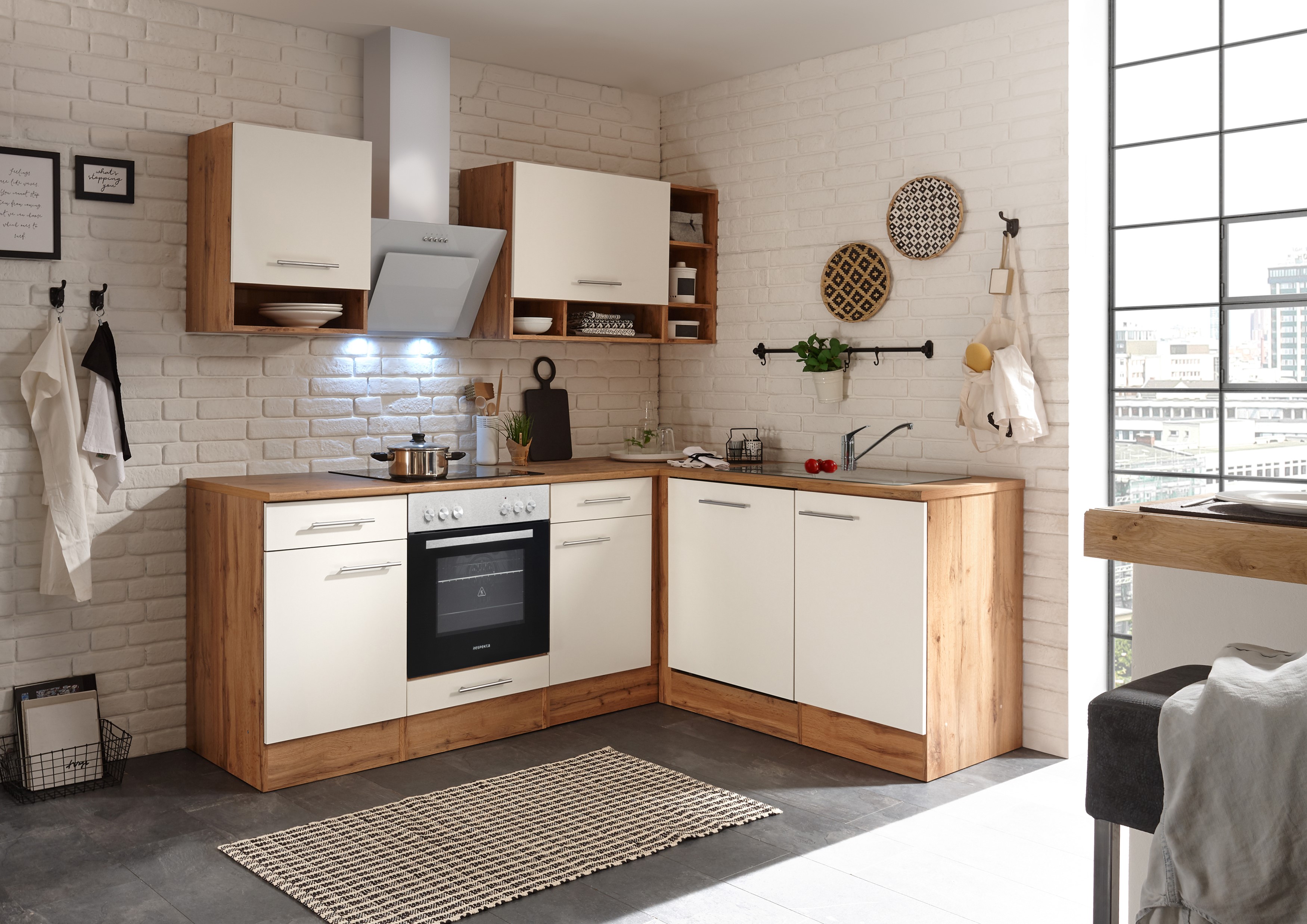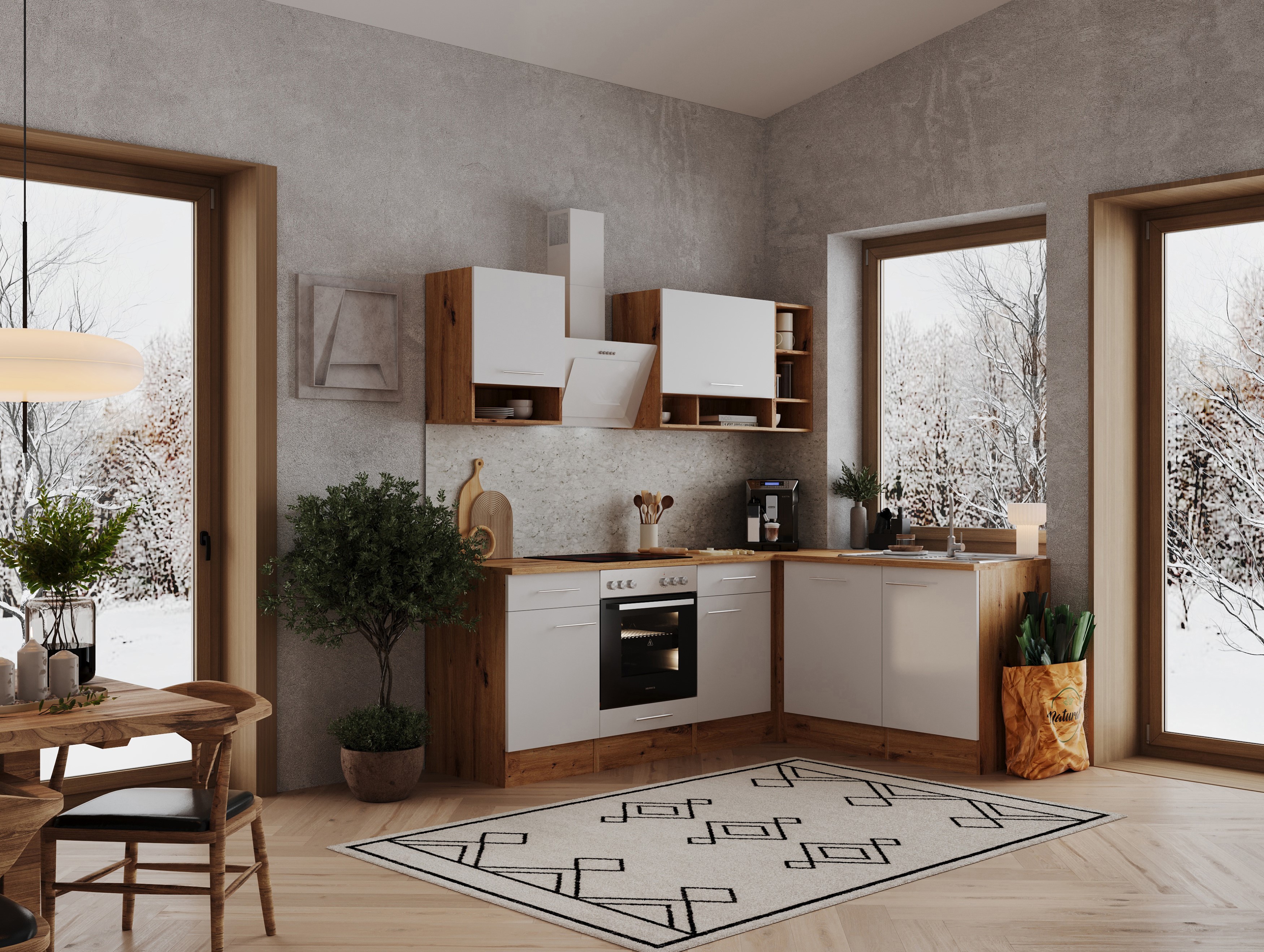 Eigenschaften "Küche Küchenzeile Leerblock Winkelküche Eiche Weiß Hilde 220x172 cm Respekta"