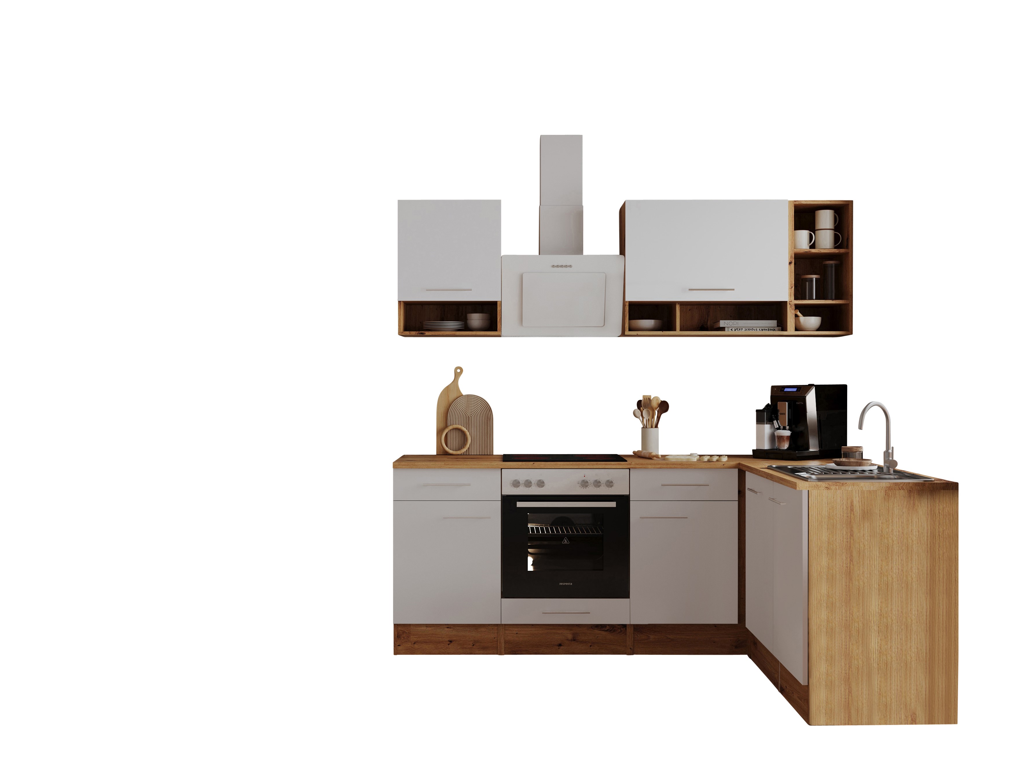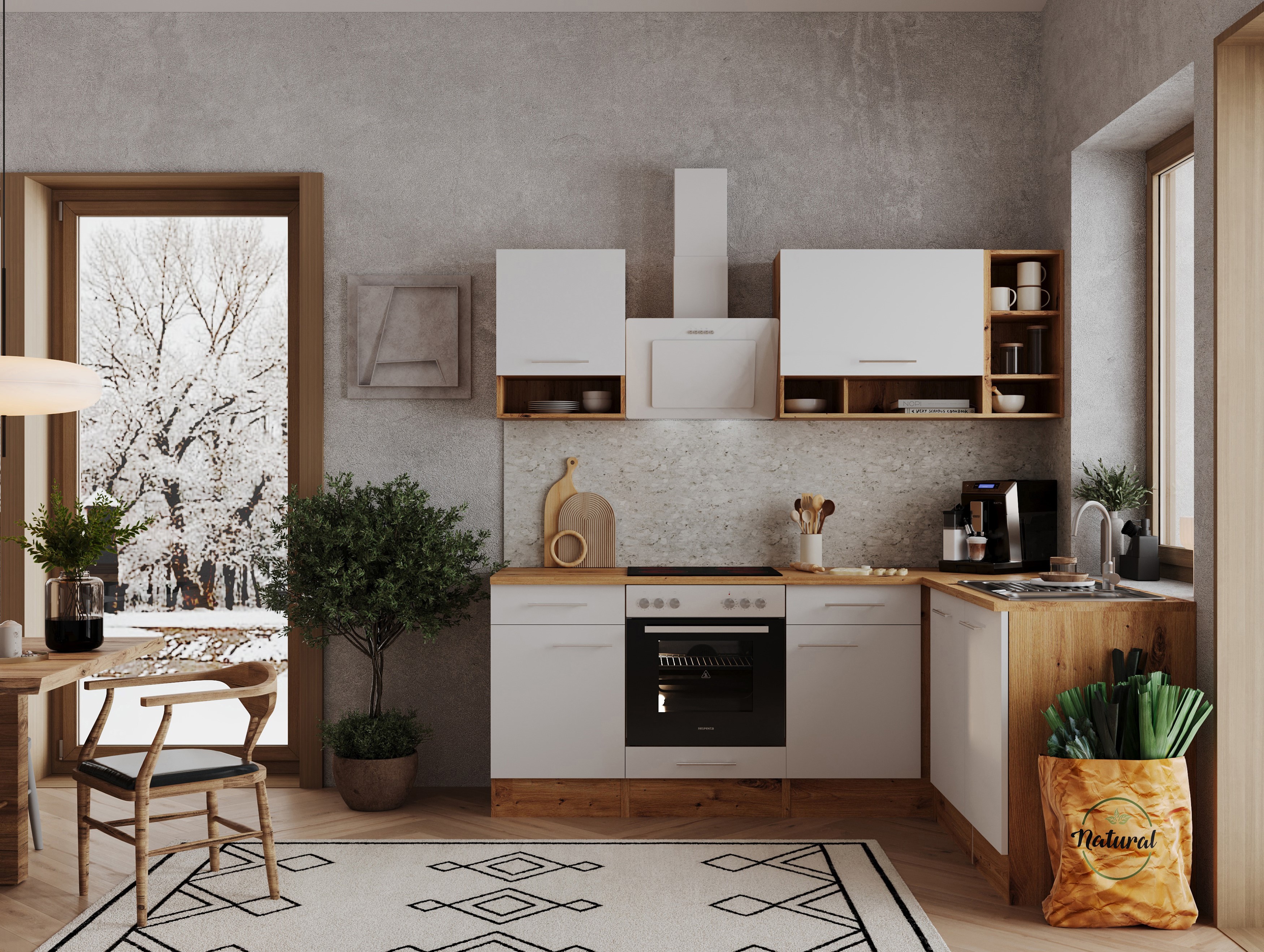 Produktinformationen "Küche Küchenzeile Leerblock Winkelküche Eiche Weiß Hilde 220x172 cm Respekta"