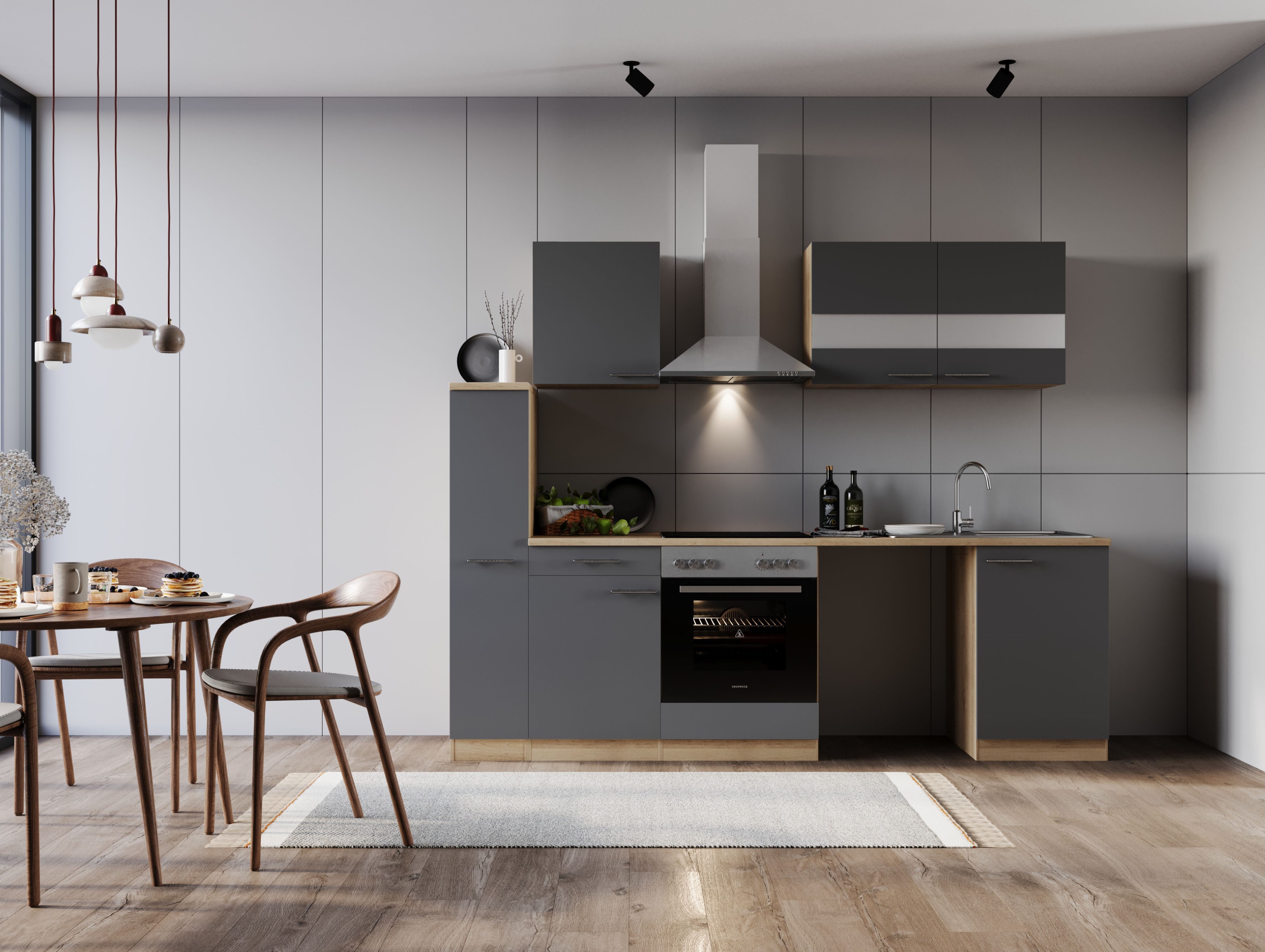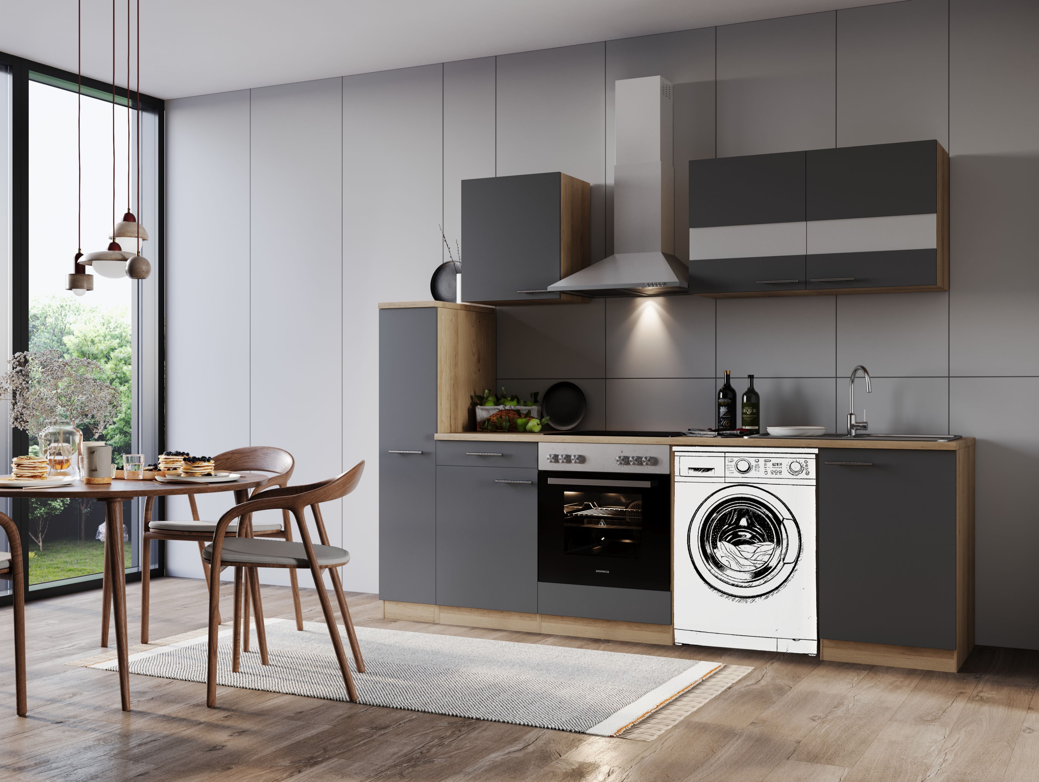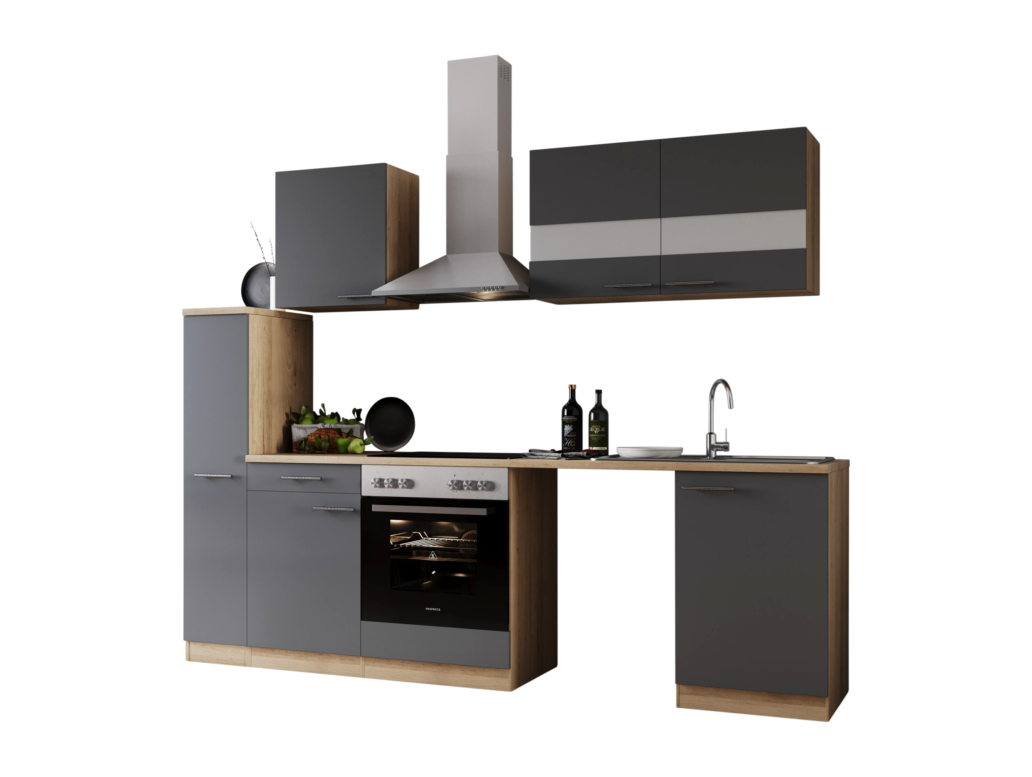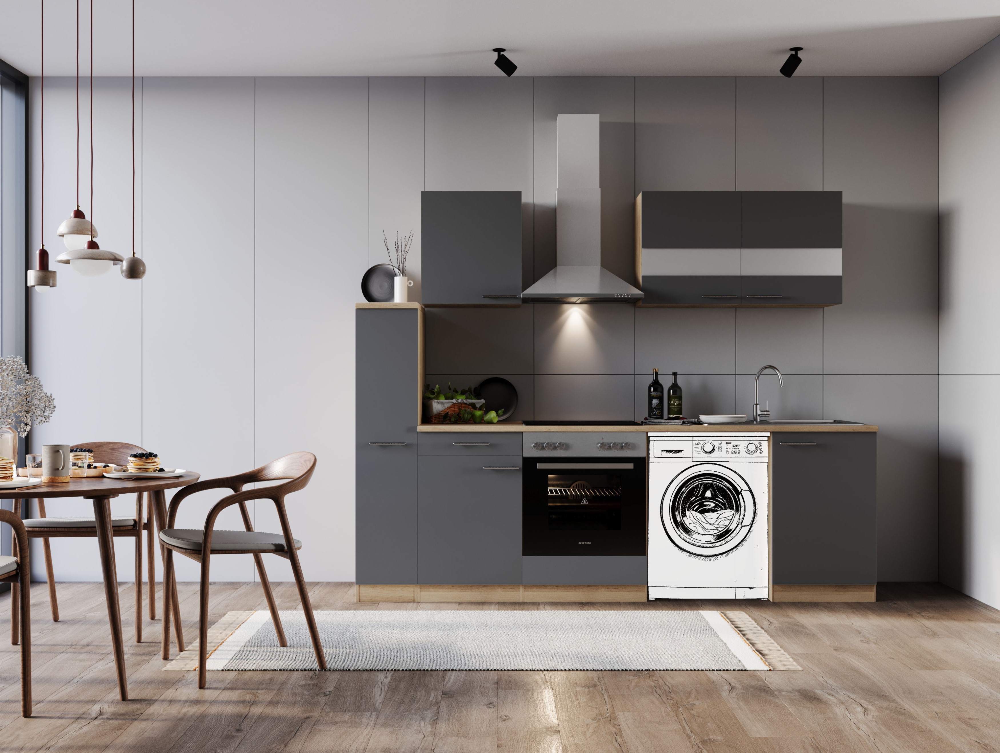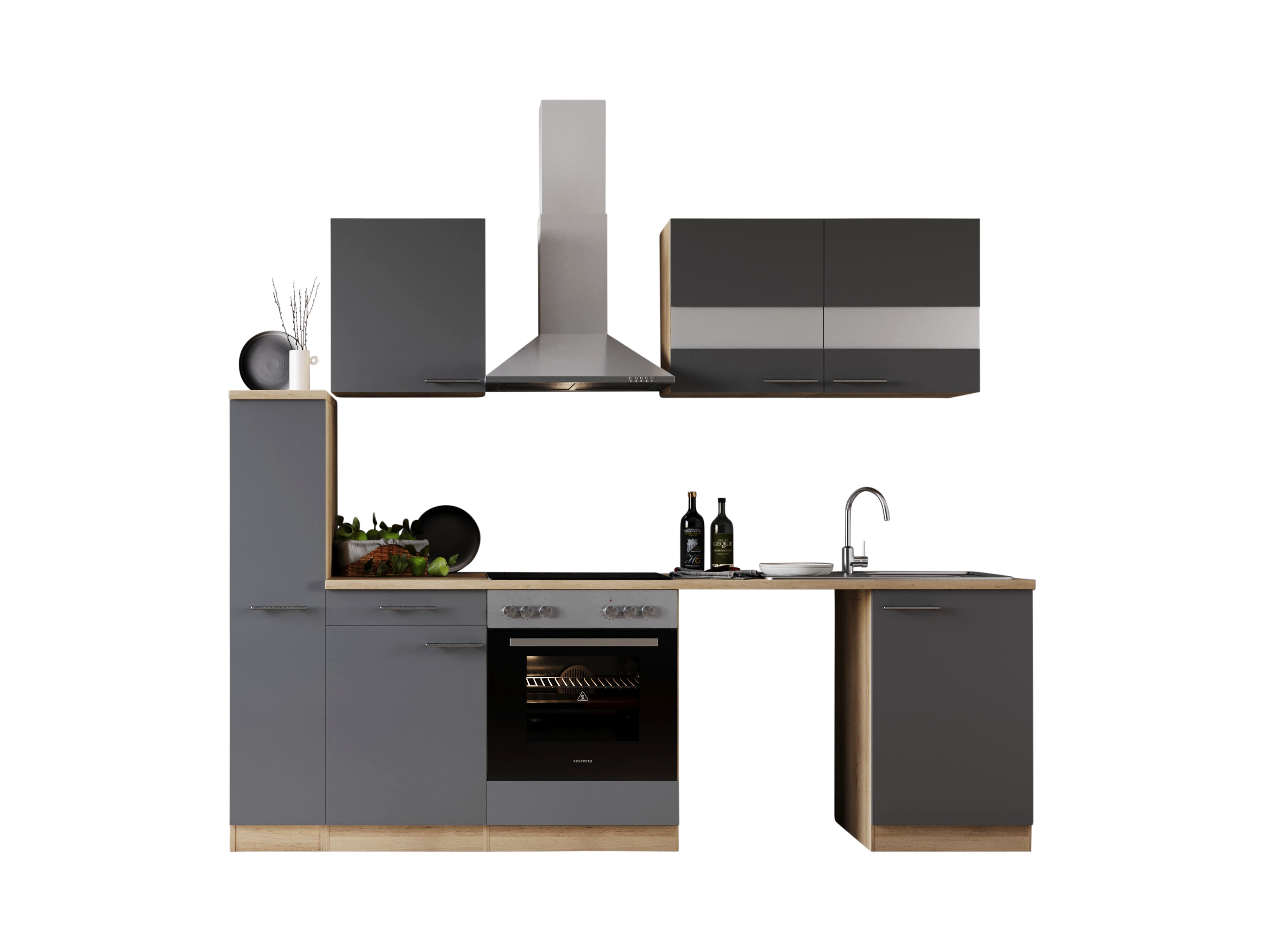 Produktinformationen "Küche Küchenzeile für Unterbau Waschmaschine Eiche Grau Merle 250 cm Respekta"