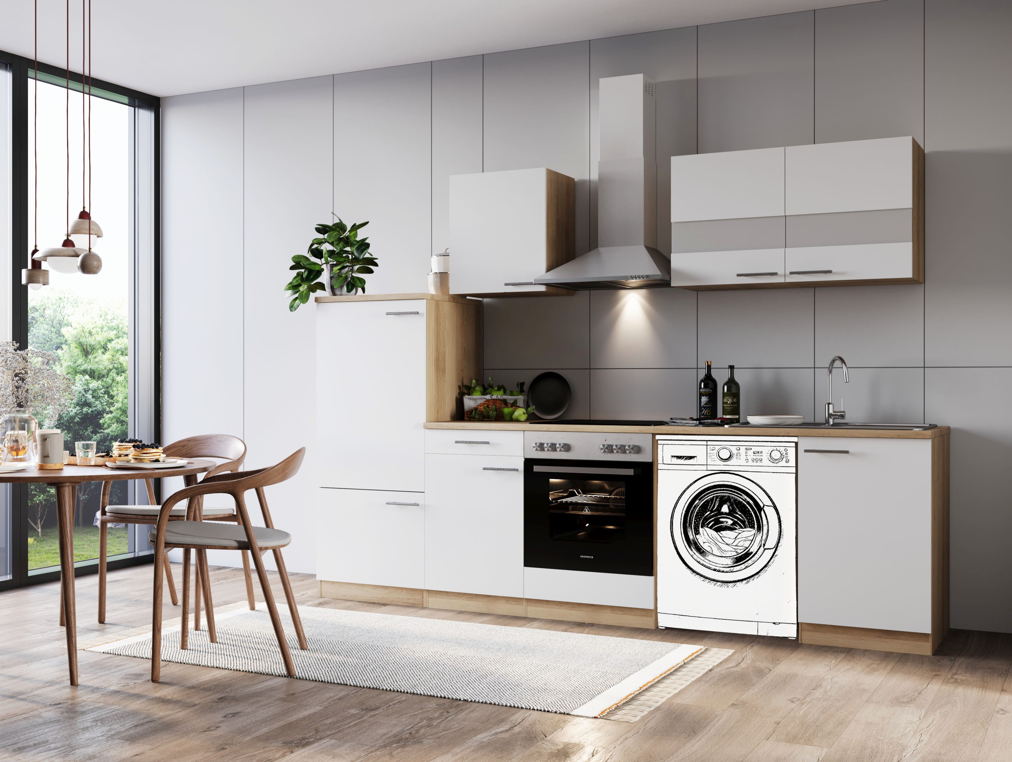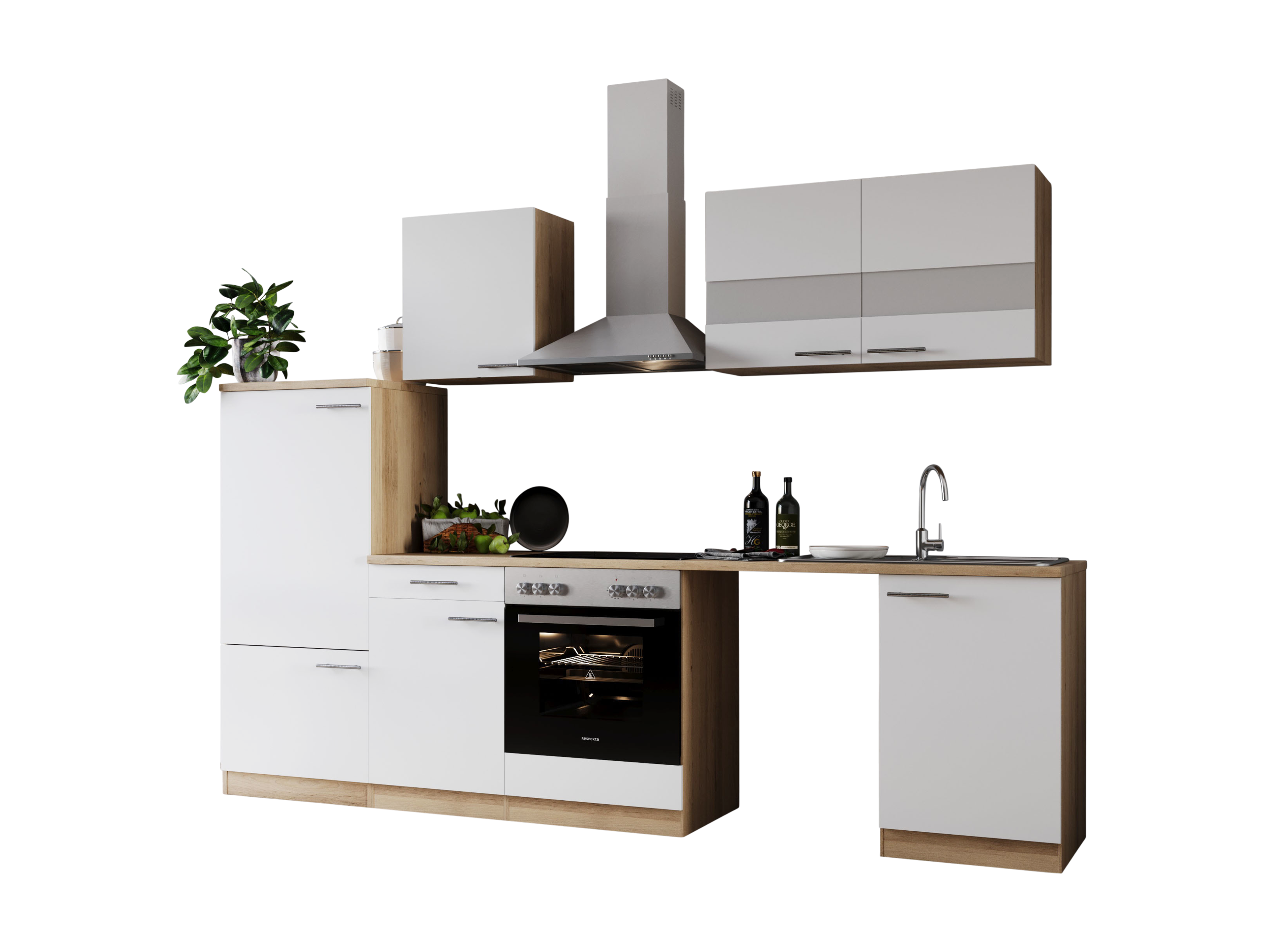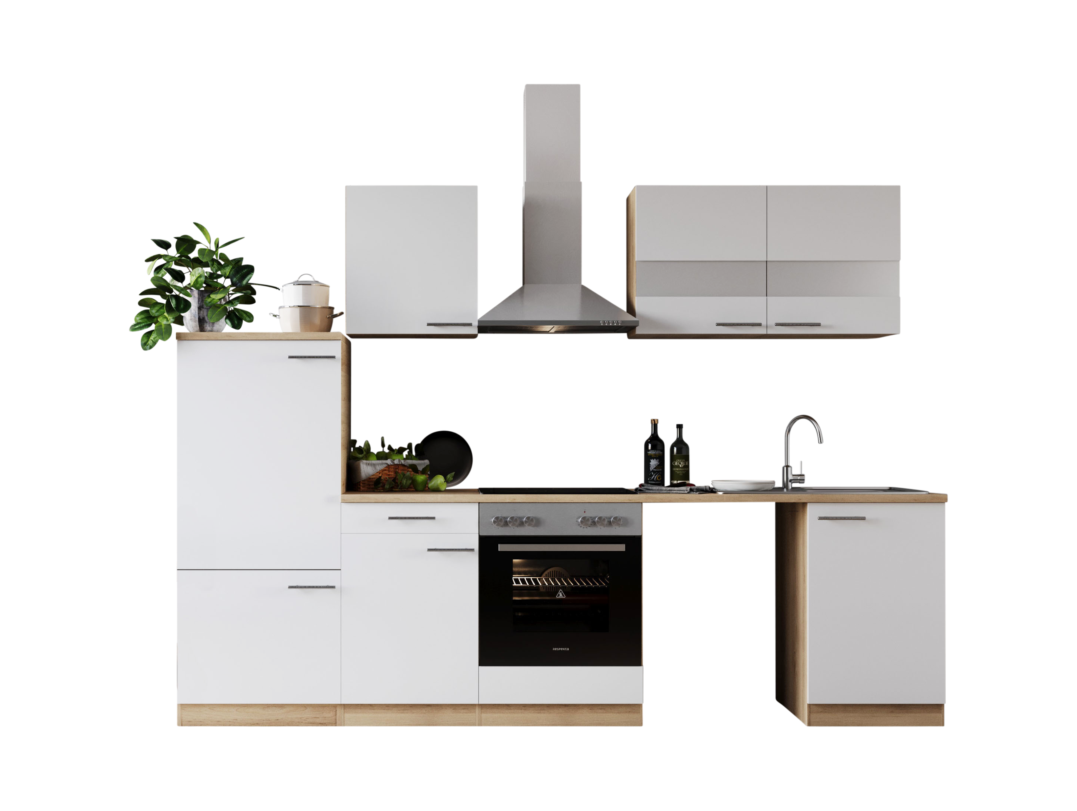 Produktinformationen "Küche Küchenzeile für Unterbau Waschmaschine Eiche Weiß Merle 280 cm Respekta"