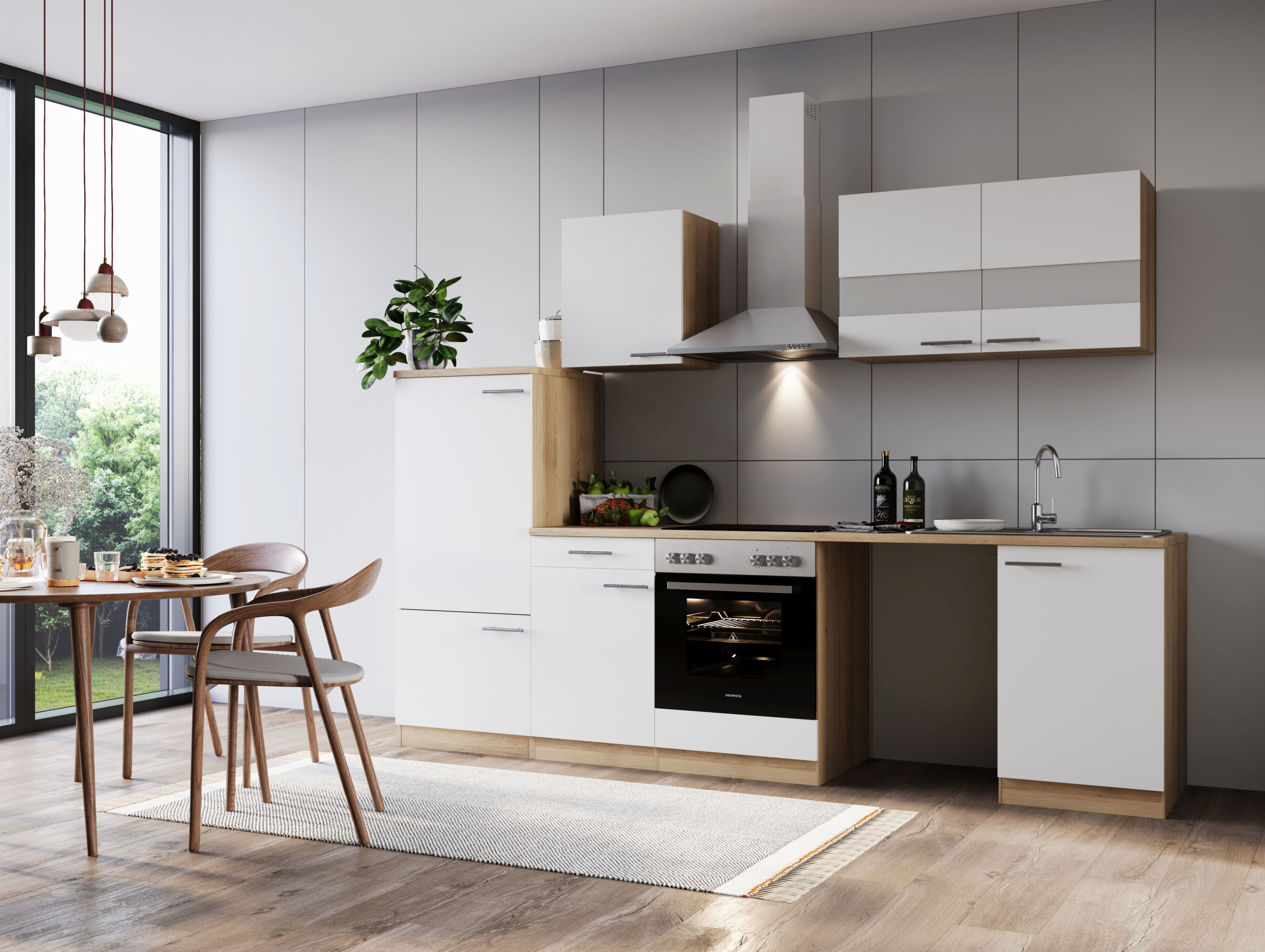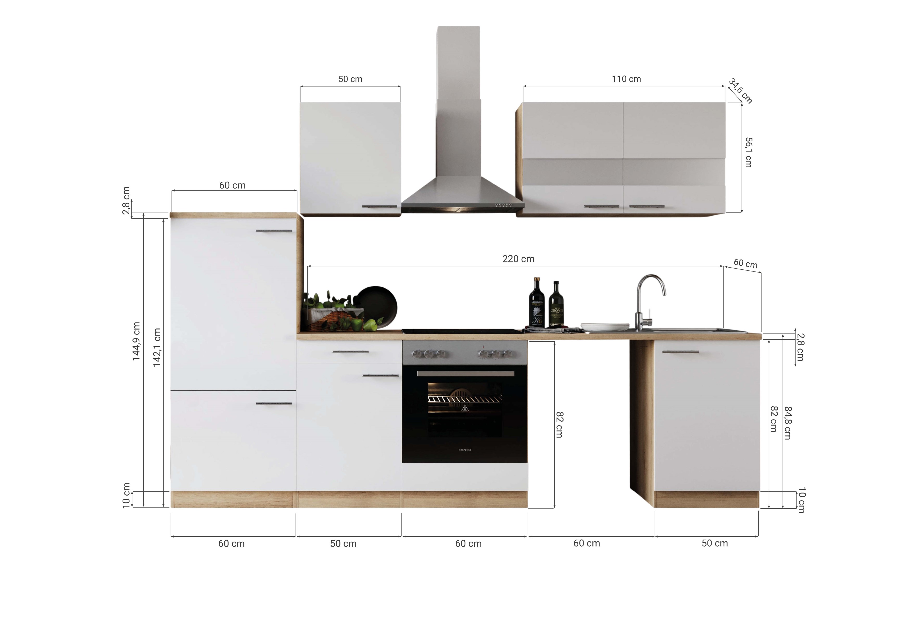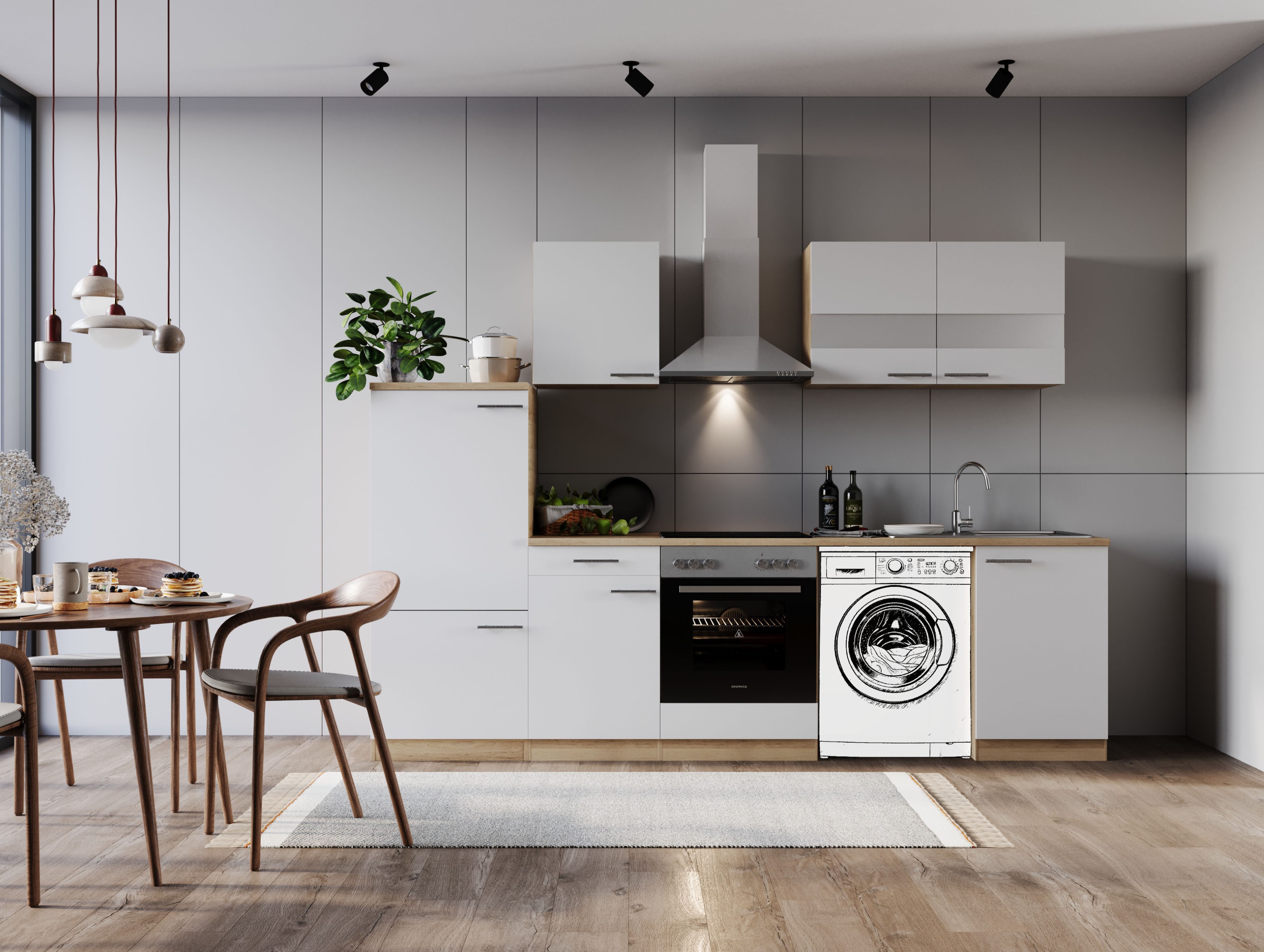 Produktinformationen "Küche Küchenzeile für Unterbau Waschmaschine Eiche Weiß Merle 280 cm Respekta"