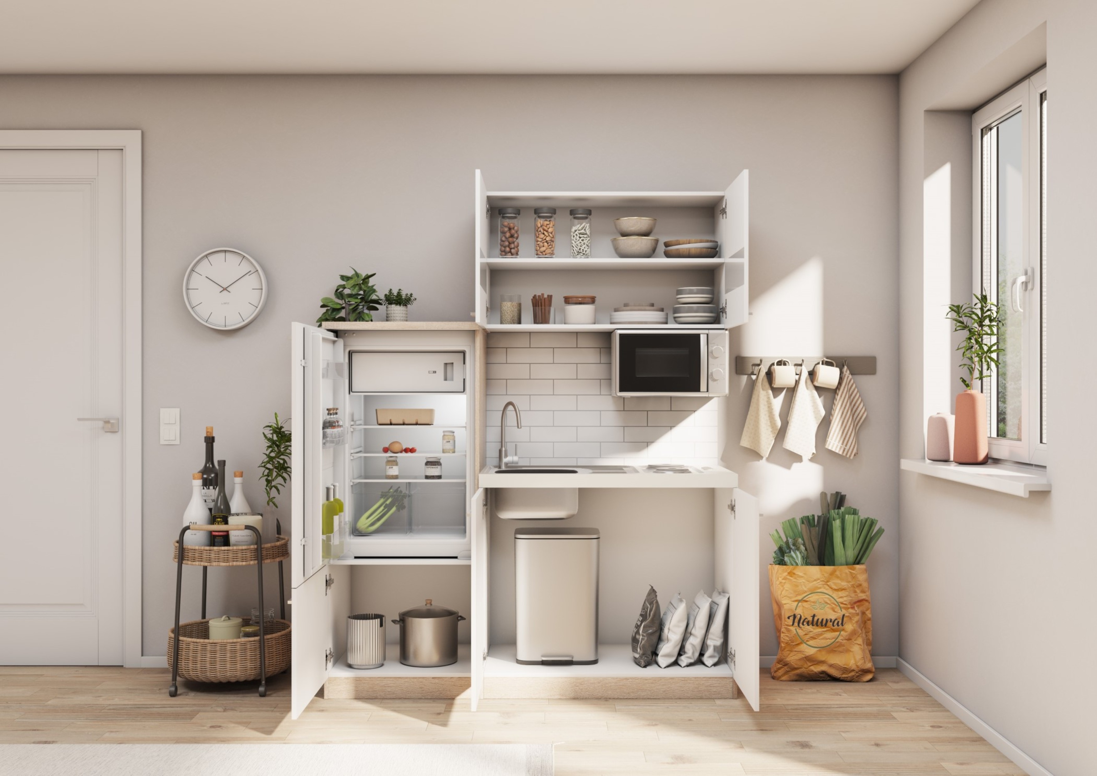 - Platzsparende Singleküche für kleine Räume