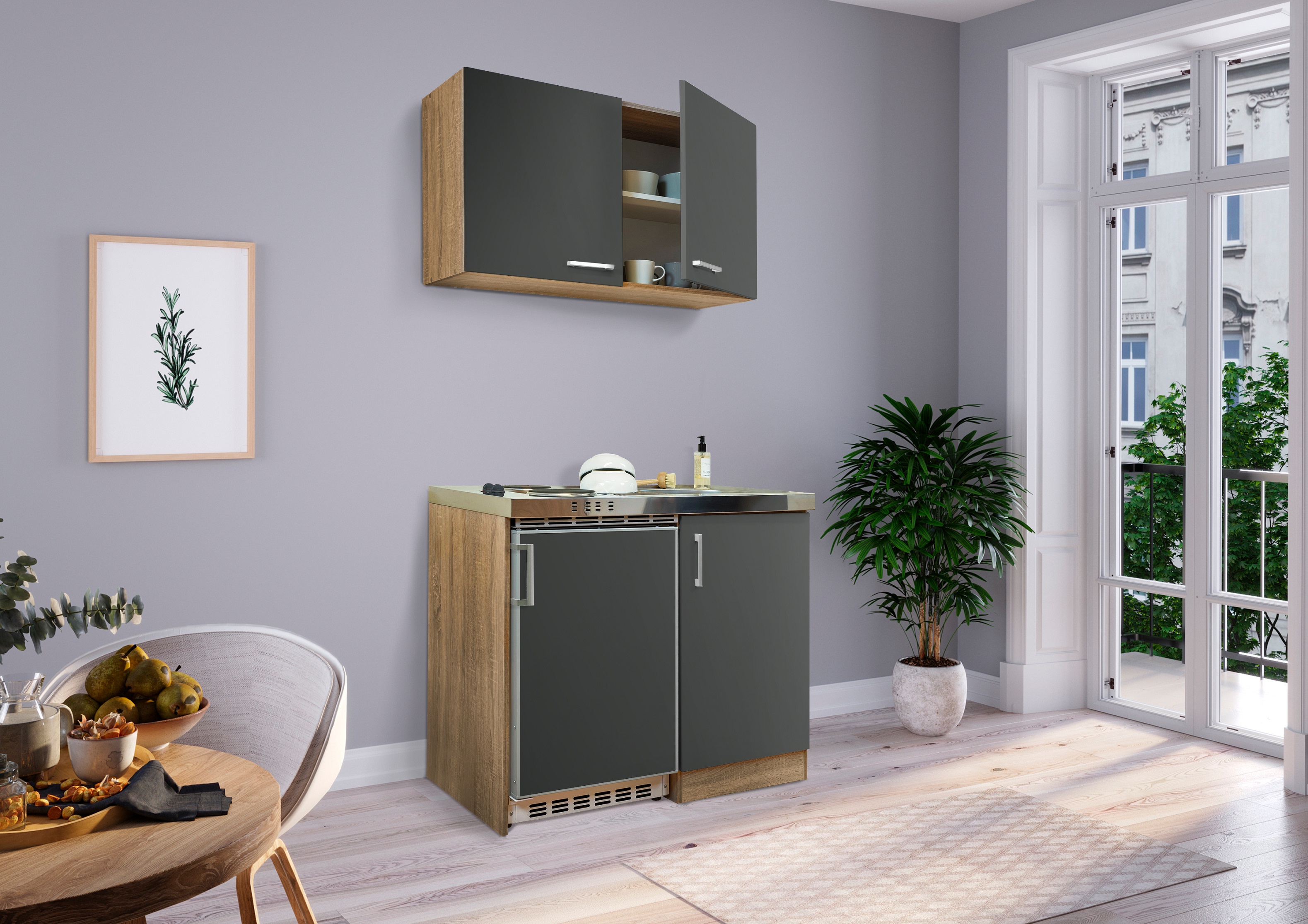 Produktinformationen "Küche Miniküche Singleküche Küchenzeile Pantry Eiche Grau Levin 100 cm Respekta"
