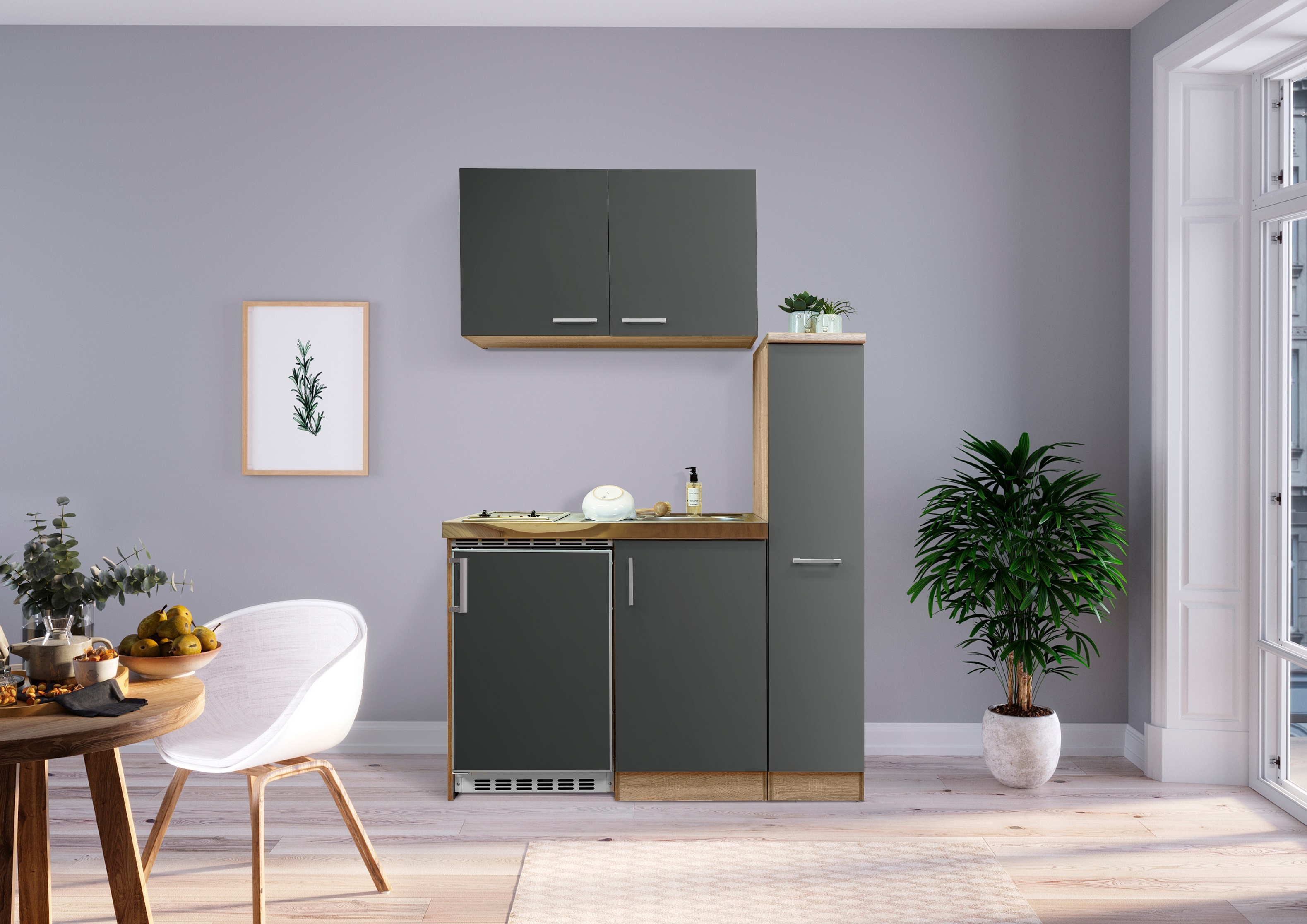 Eigenschaften "Küche Miniküche Singleküche Küchenzeile Pantry Eiche Grau Levin 130 cm Respekta"
