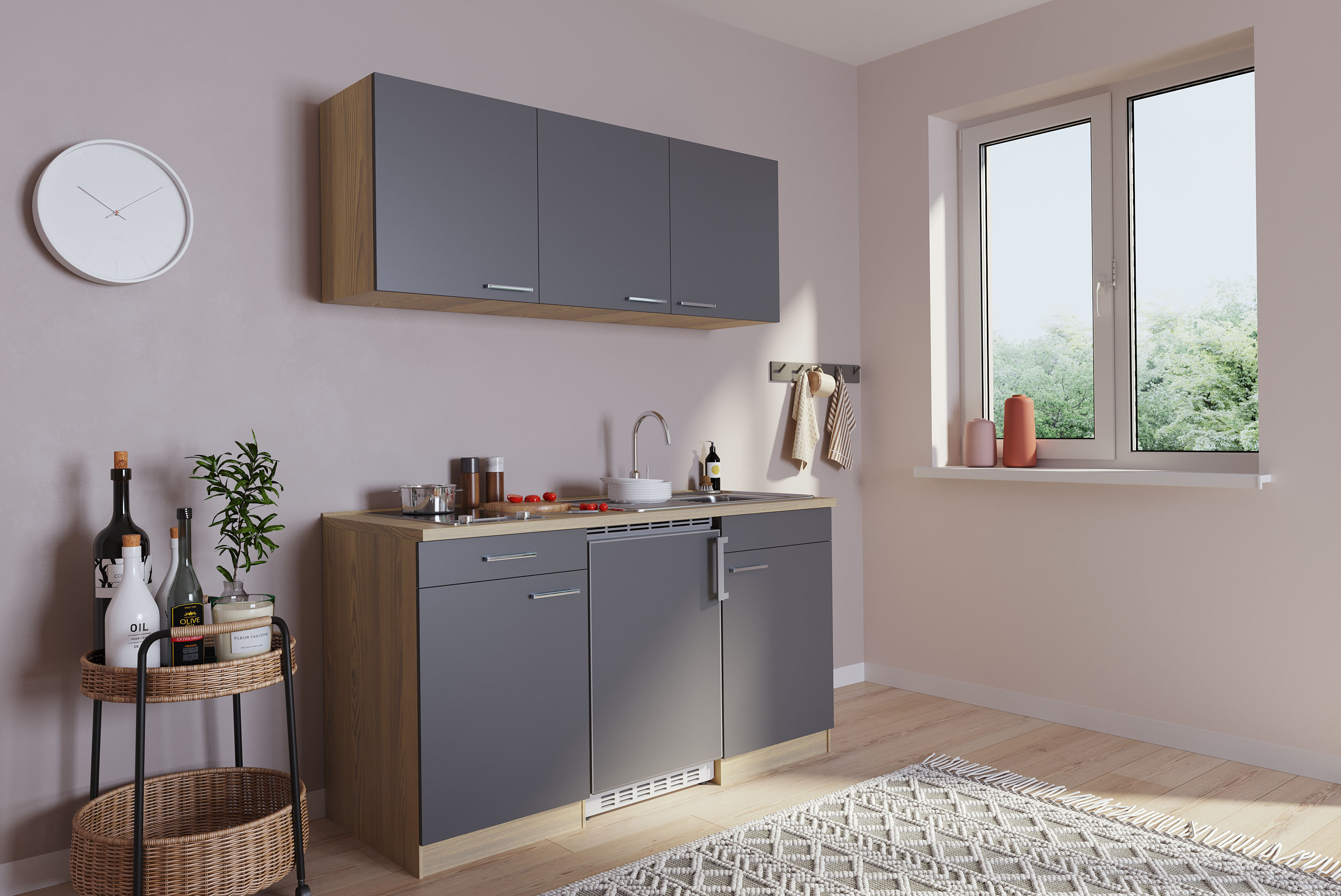 Produktinformationen "Küche Miniküche Singleküche Küchenzeile Pantry Eiche Grau Luis 150 cm Respekta"