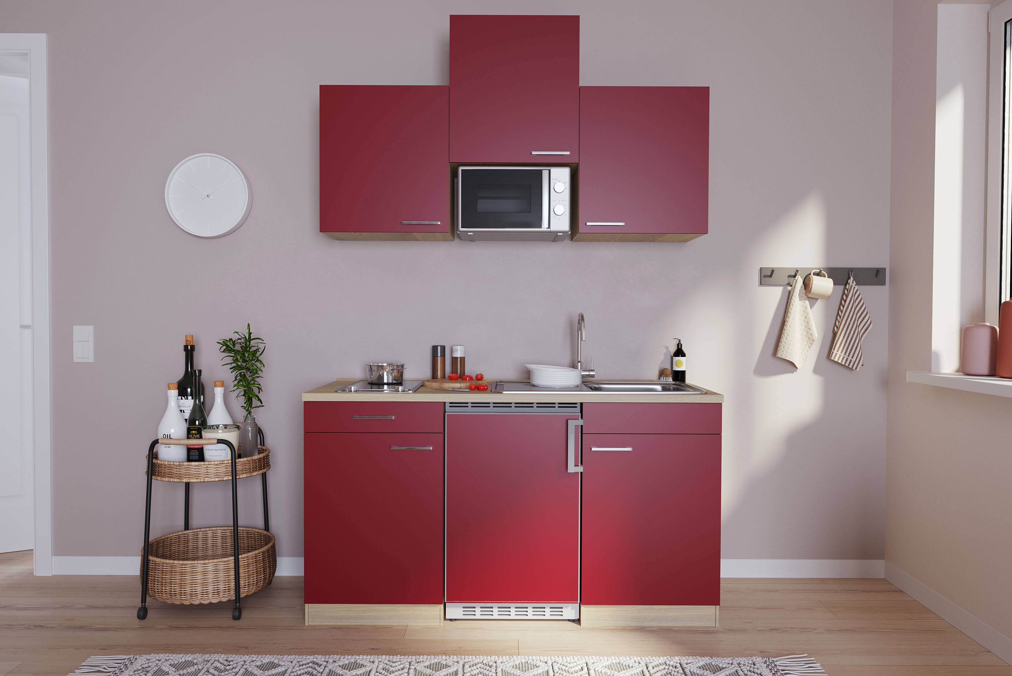 Eigenschaften "Küche Miniküche Singleküche Küchenzeile Pantry Eiche Rot Luis 150 cm Respekta"