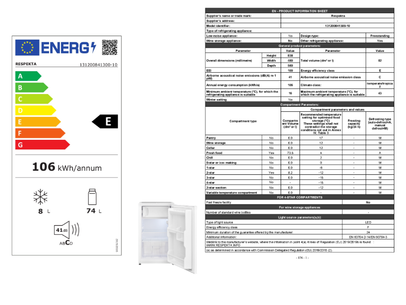 - Nutzinhalt 4* Gefrierfach: 8 L