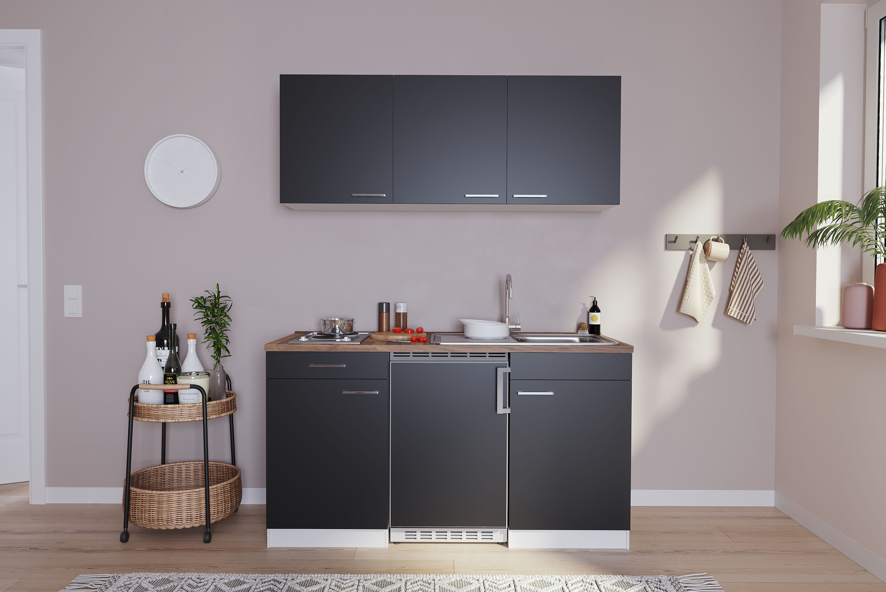 Produktinformationen "Küche Miniküche Singleküche Küchenzeile Pantry Weiß Schwarz Luis 150 cm Respekta"