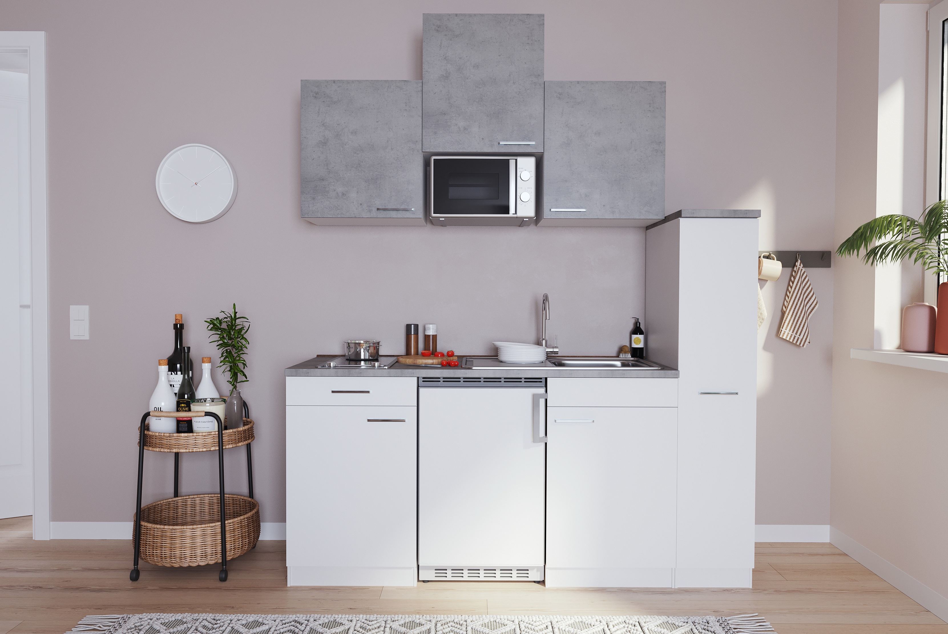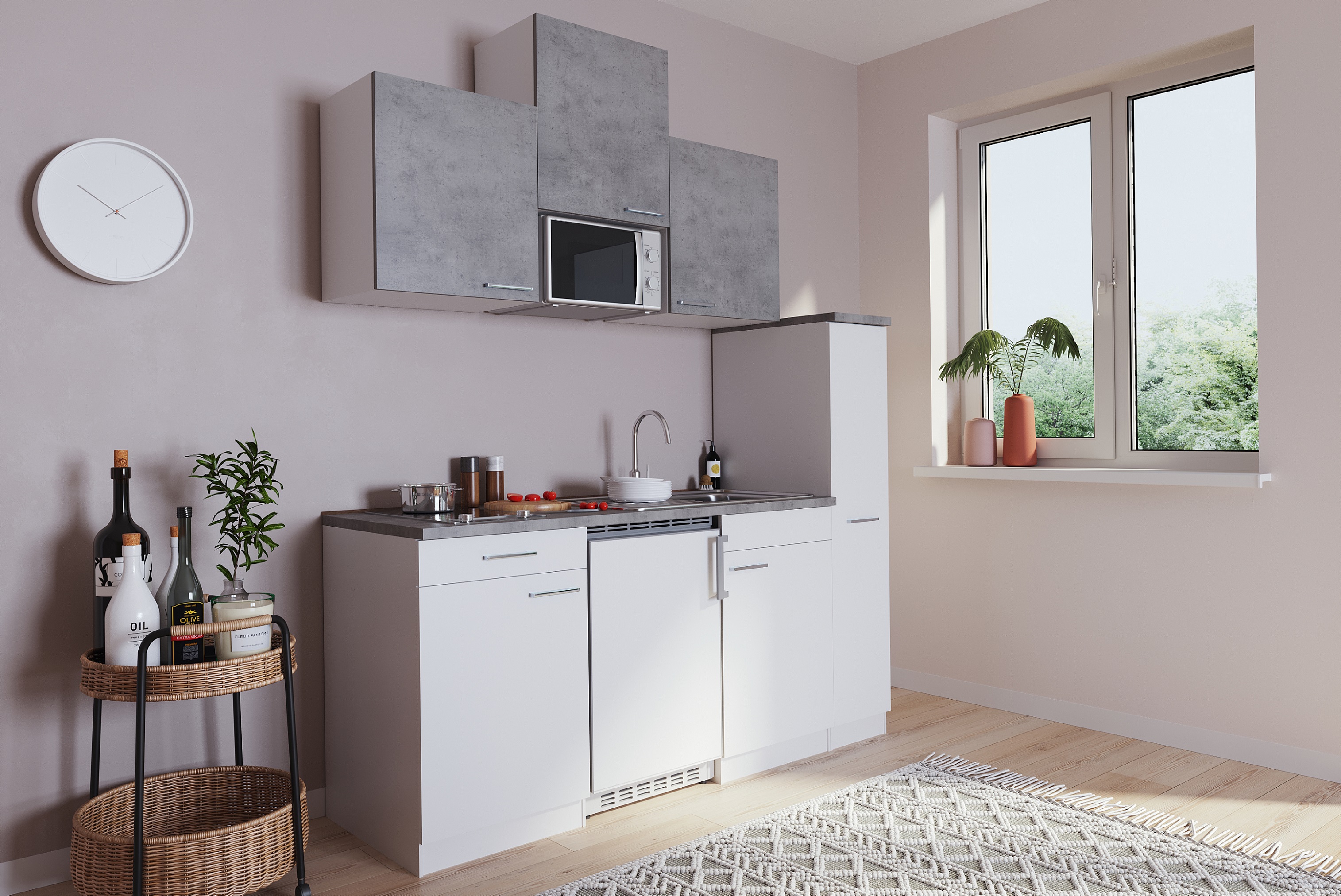 Produktinformationen "Küche Miniküche Singleküche Küchenzeile Weiß Beton Luis 180 cm Respekta"