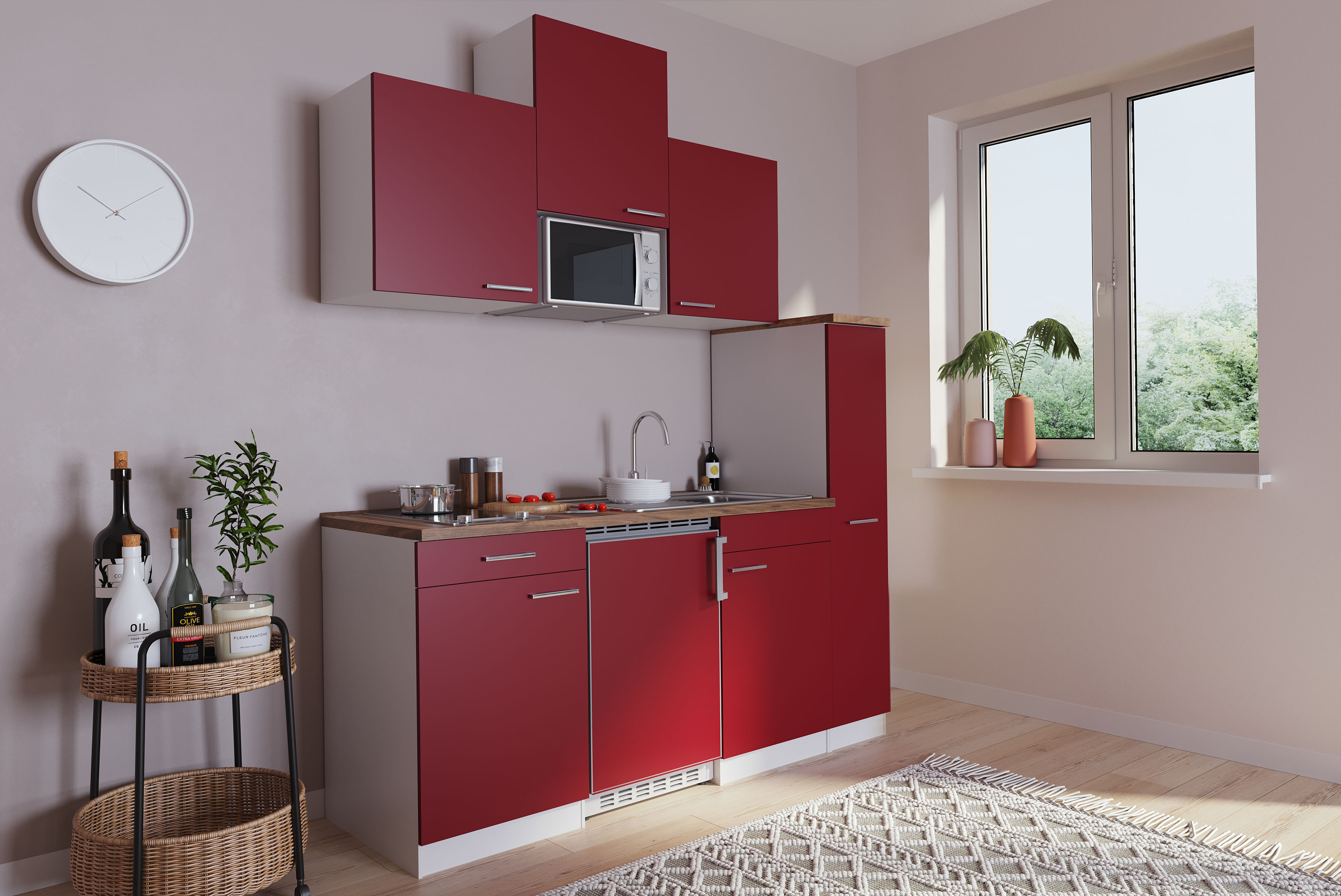 Eigenschaften "Küche Miniküche Singleküche Küchenzeile Weiß Rot Luis 180 cm Respekta"