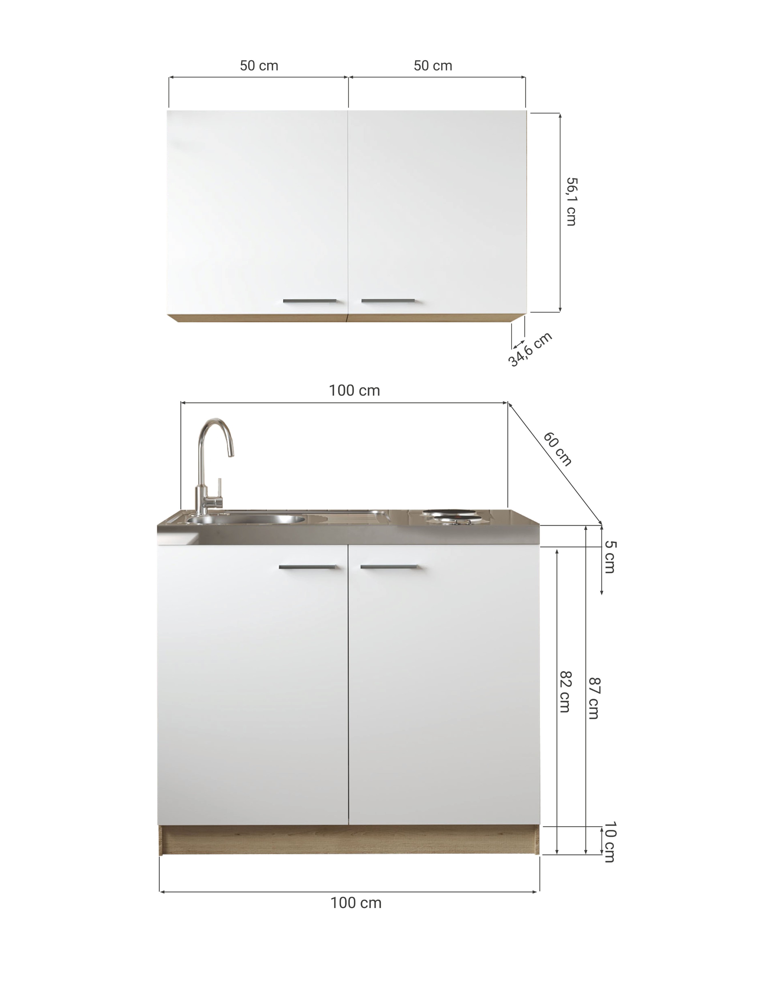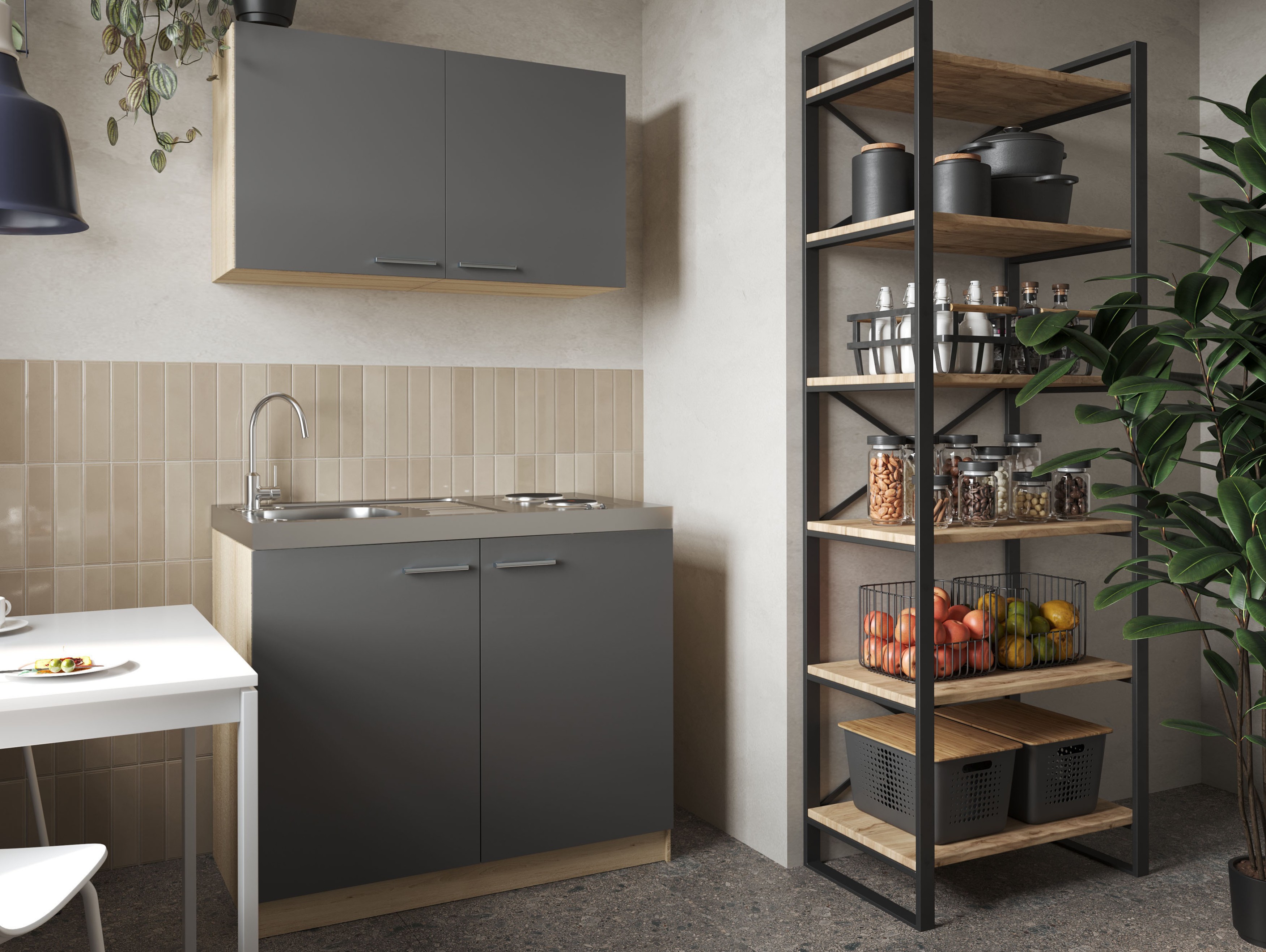 Eigenschaften "Küche Miniküche Singleküche Pantry Eiche Sägerau Grau Merle 100 cm Respekta"