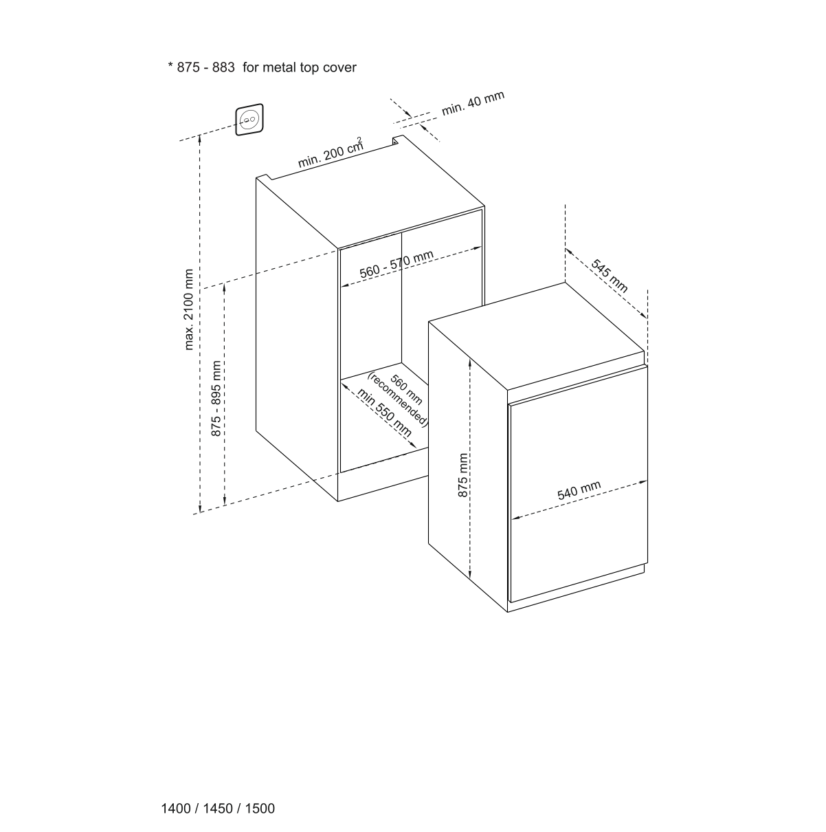 - Einbaumaße (H x B x T): 88 - 90 x 56 x 55 cm