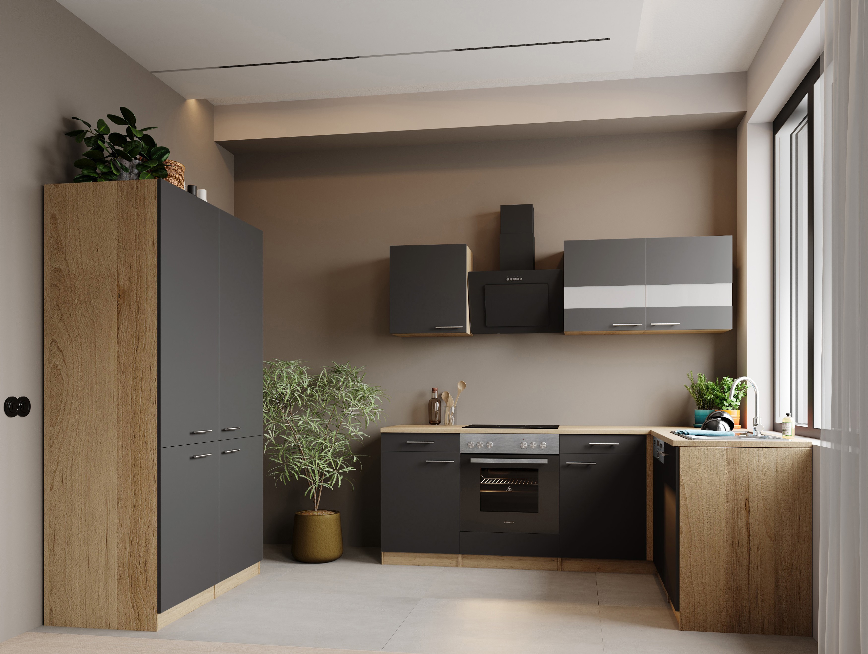 Produktinformationen "L Küche Einbau Winkelküche Eiche Sägerau Grau Merle 340 cm French Door Respekta"