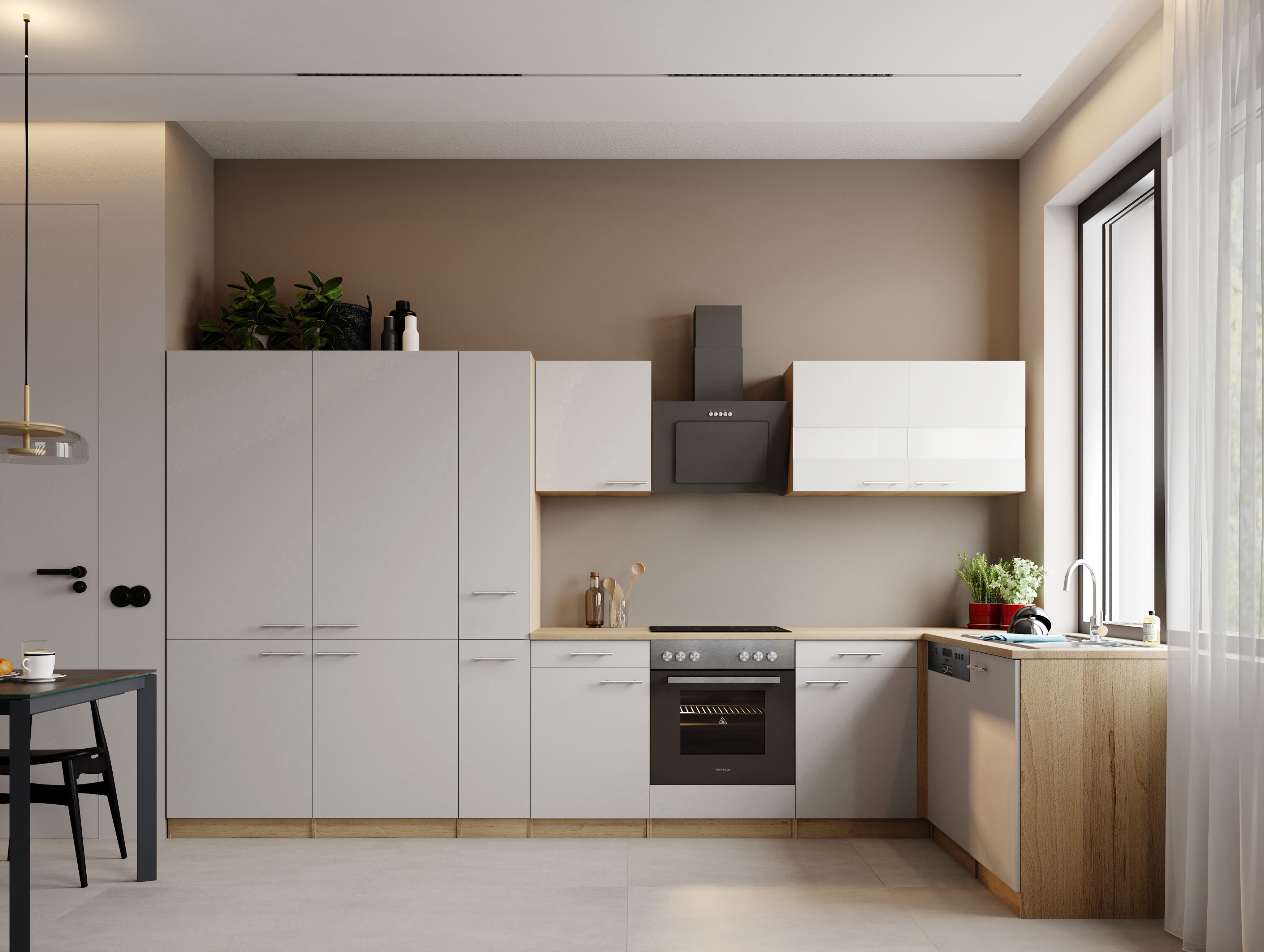 - Flexible Montage: Wahlweise als durchgehende Küchenzeile oder Doppelblock mit separaten Hochschränken