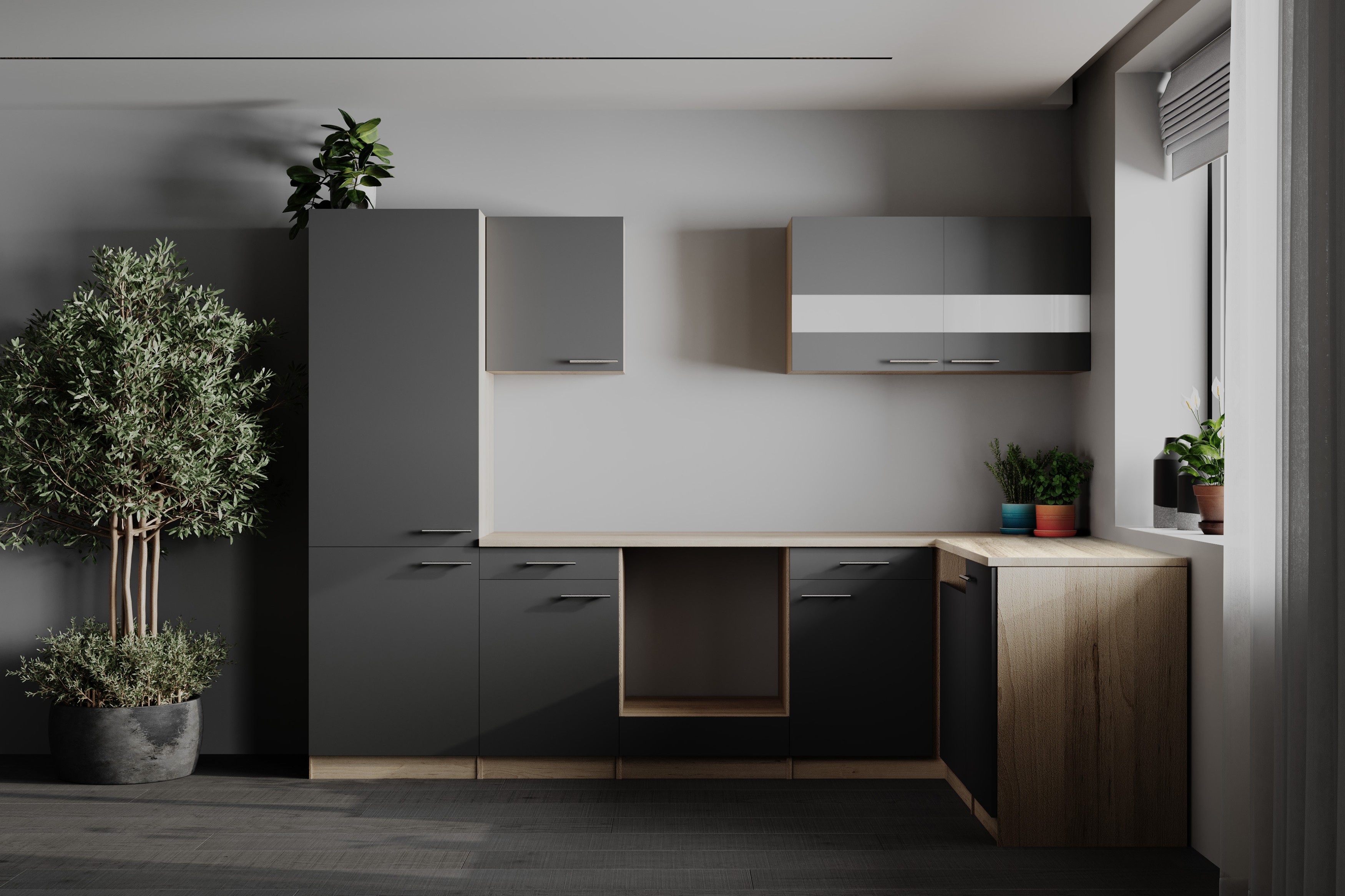 Produktinformationen "L Küche Einbau Winkelküche Leerblock Eiche Sägerau Grau Merle 280 cm Respekta"