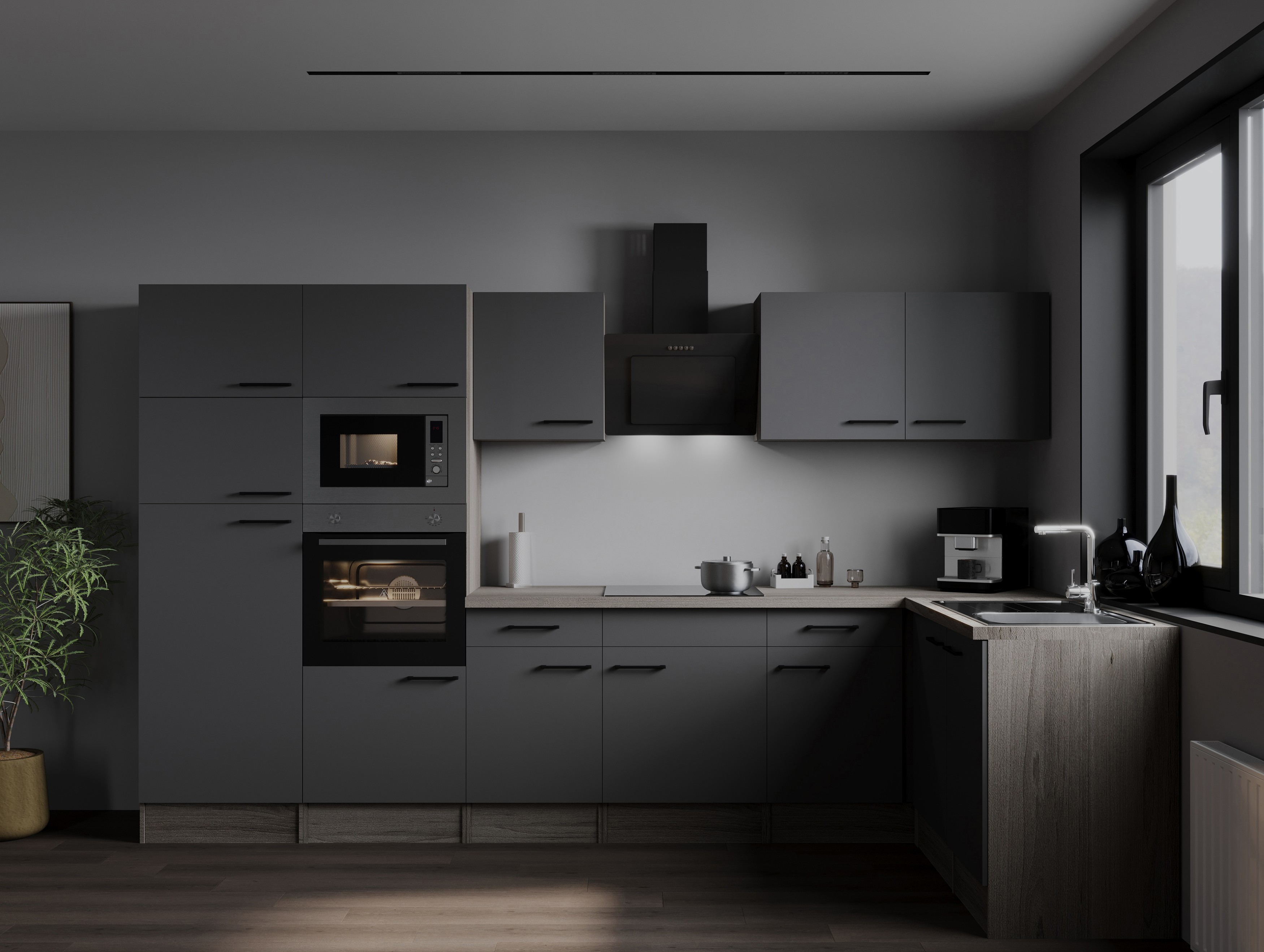 Winkelküche Oliver – 340 x 172 cm in Grau Matt mit Eiche York Nachbildung
