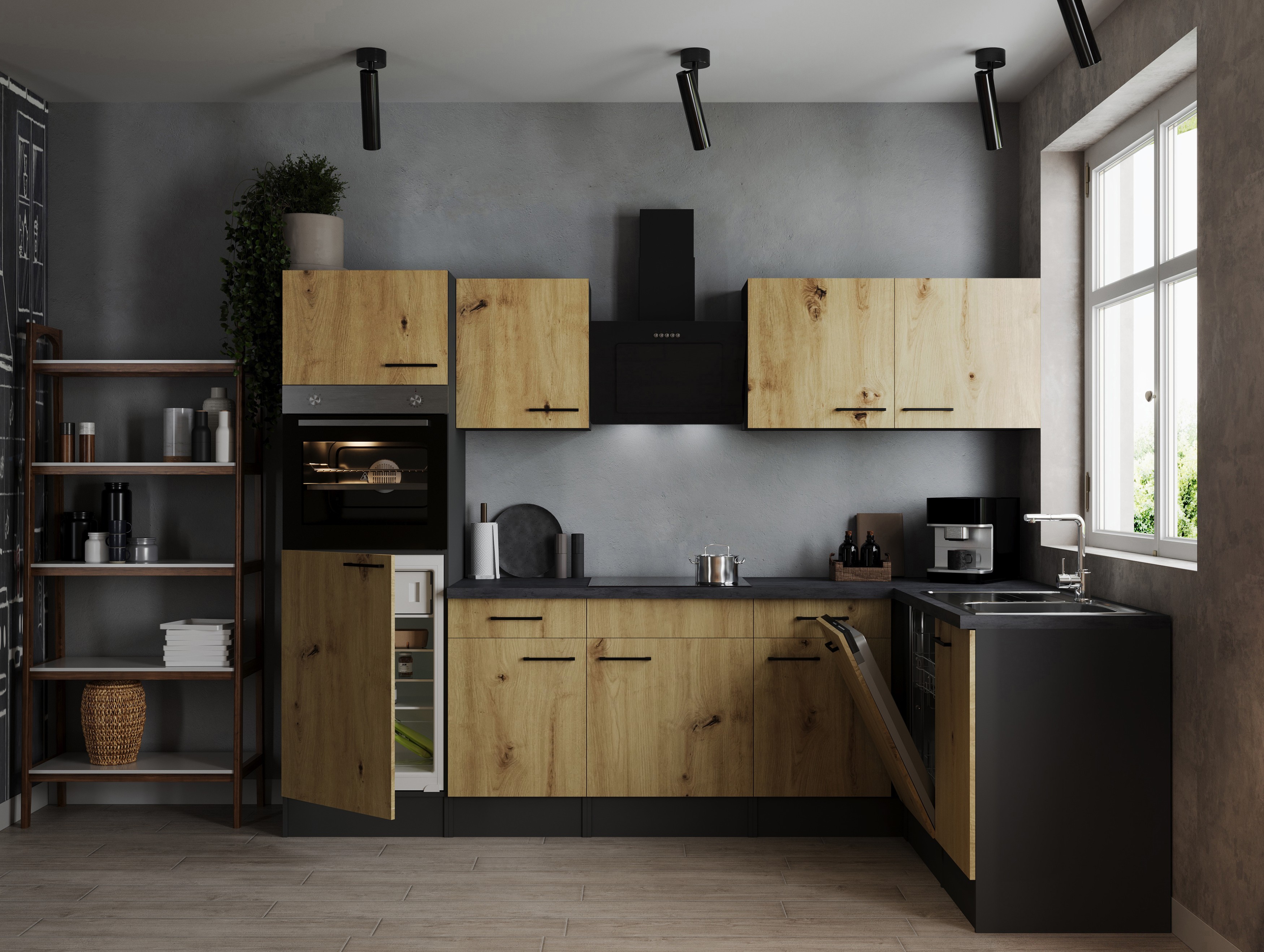 Winkelküche Oliver – 280 x 172 cm in Artisan Eiche Nachbildung und Granit Optik