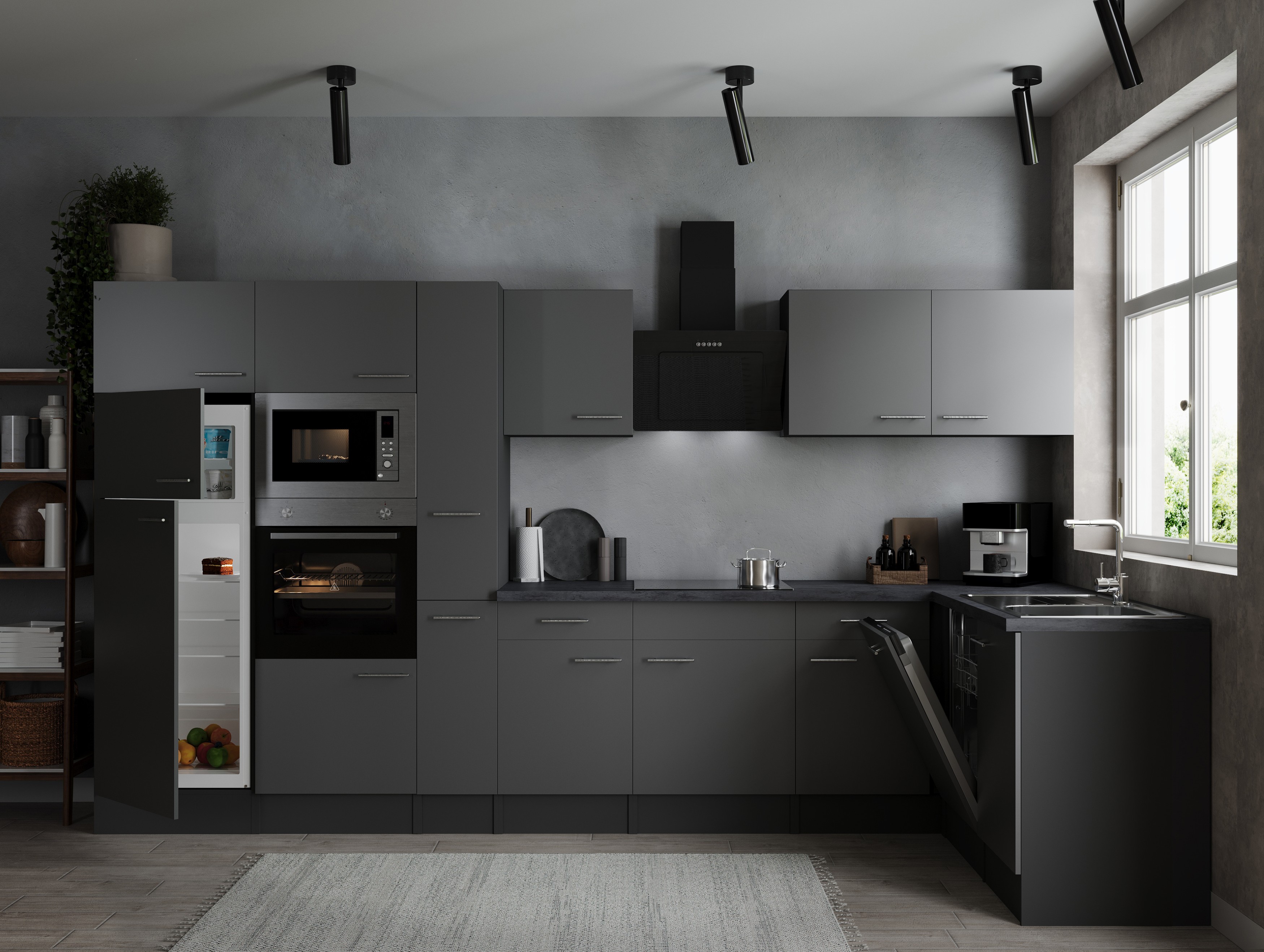 Produktinformationen "L Küche Küchenzeile Winkelküche Grau Matt Grau Oliver 370 x 172 cm Respekta"
