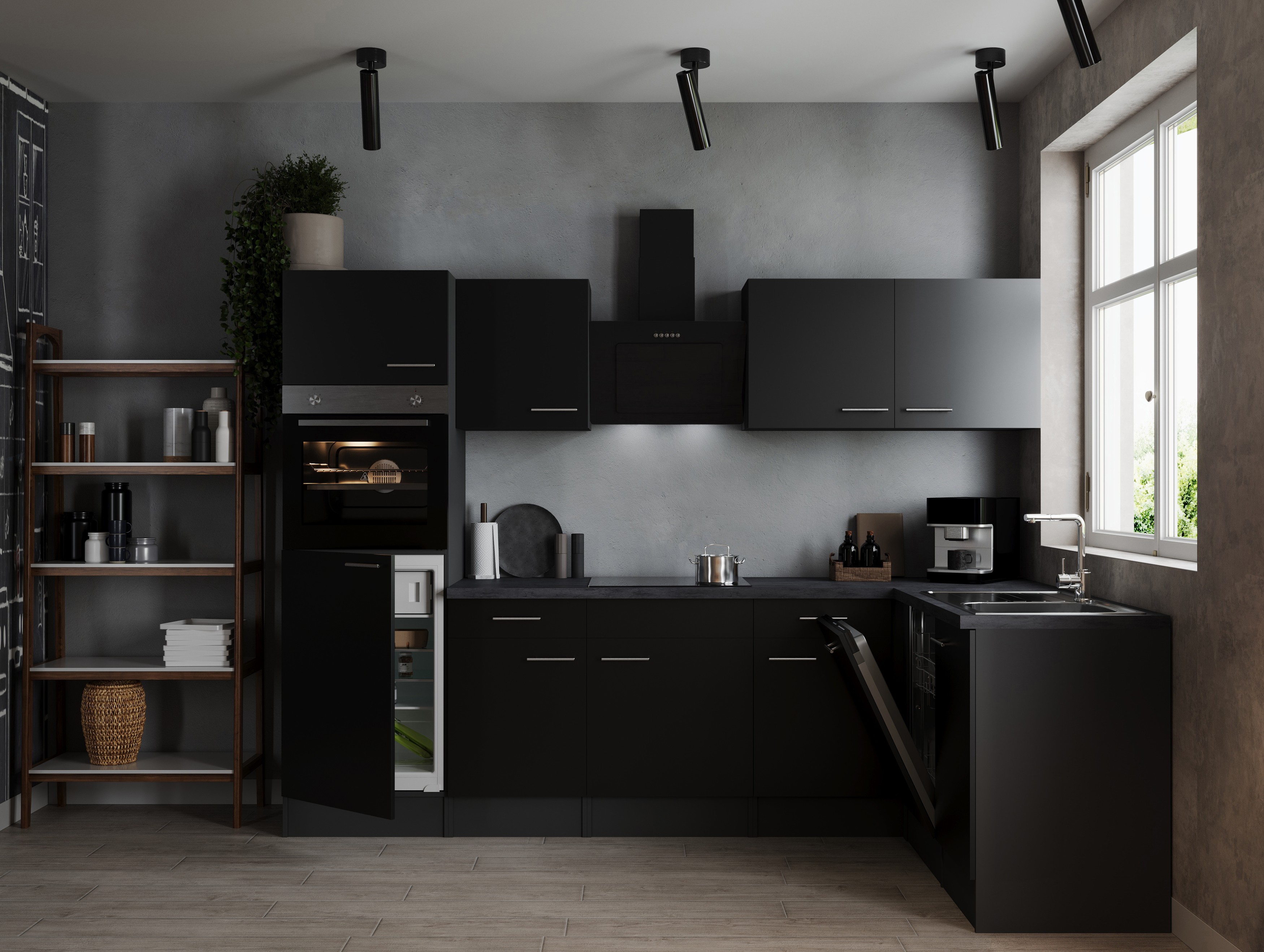 Produktinformationen "L Küche Küchenzeile Winkelküche Grau Matt Schwarz Oliver 280 x 172 cm Respekta"